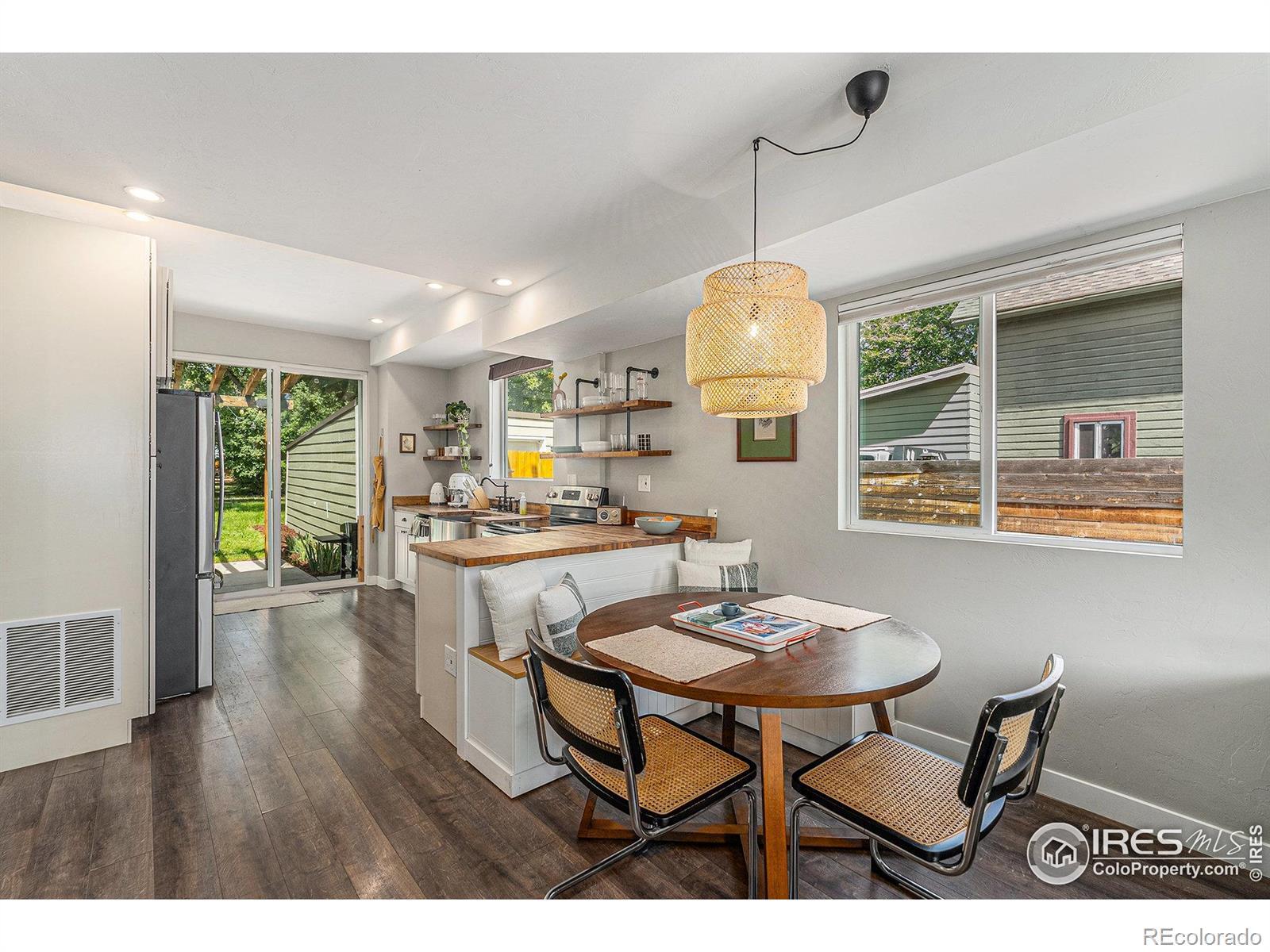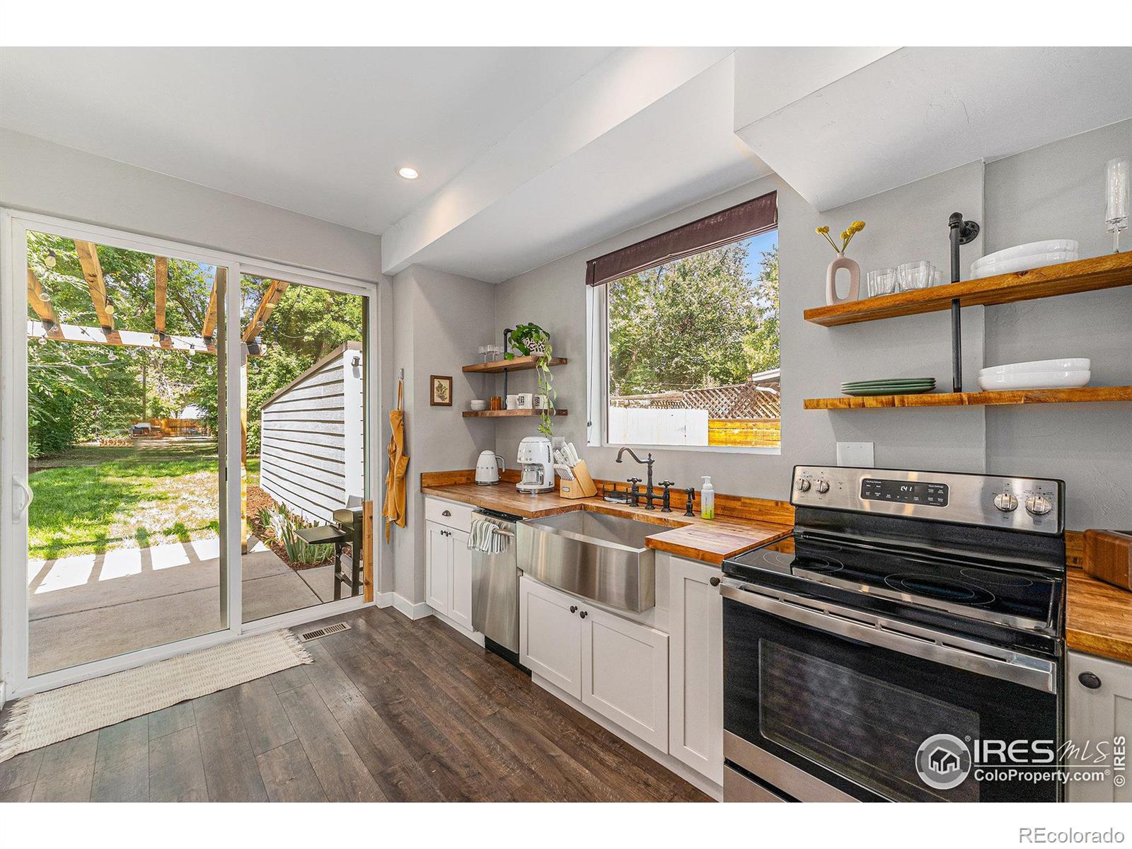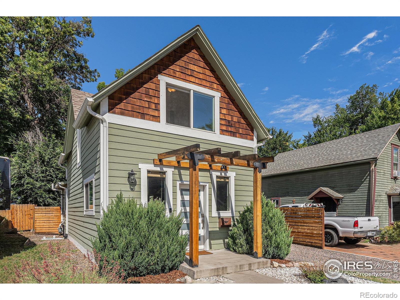Step back in time with this fully updated and remodeled 1898 Old Town Loveland charmer, offering a perfect blend of historic character and contemporary convenience. This delightful 2 bedroom, 1.5 bathroom home welcomes you with beautiful LVP flooring on the main level and a stunning, gourmet kitchen featuring butcher block counters, an elegant apron sink, and a full suite of stainless steel appliances. The thoughtful updates continue with the added convenience of main floor laundry. Enjoy the Colorado sunshine and mature landscaping on the sprawling, fully fenced lot, which boasts multi-level decks and a charming patio area with a pergola perfect for outdoor dining. The property offers exceptional outdoor utility, including a detached one-car garage, RV/Boat parking via convenient alley access, and the benefit of a south-facing orientation. Located just a few blocks from Loveland's vibrant core, you'll have easy access to parks, trails, shopping, and restaurants, making this the ideal location for a true Old Town lifestyle. This one is a must-see!