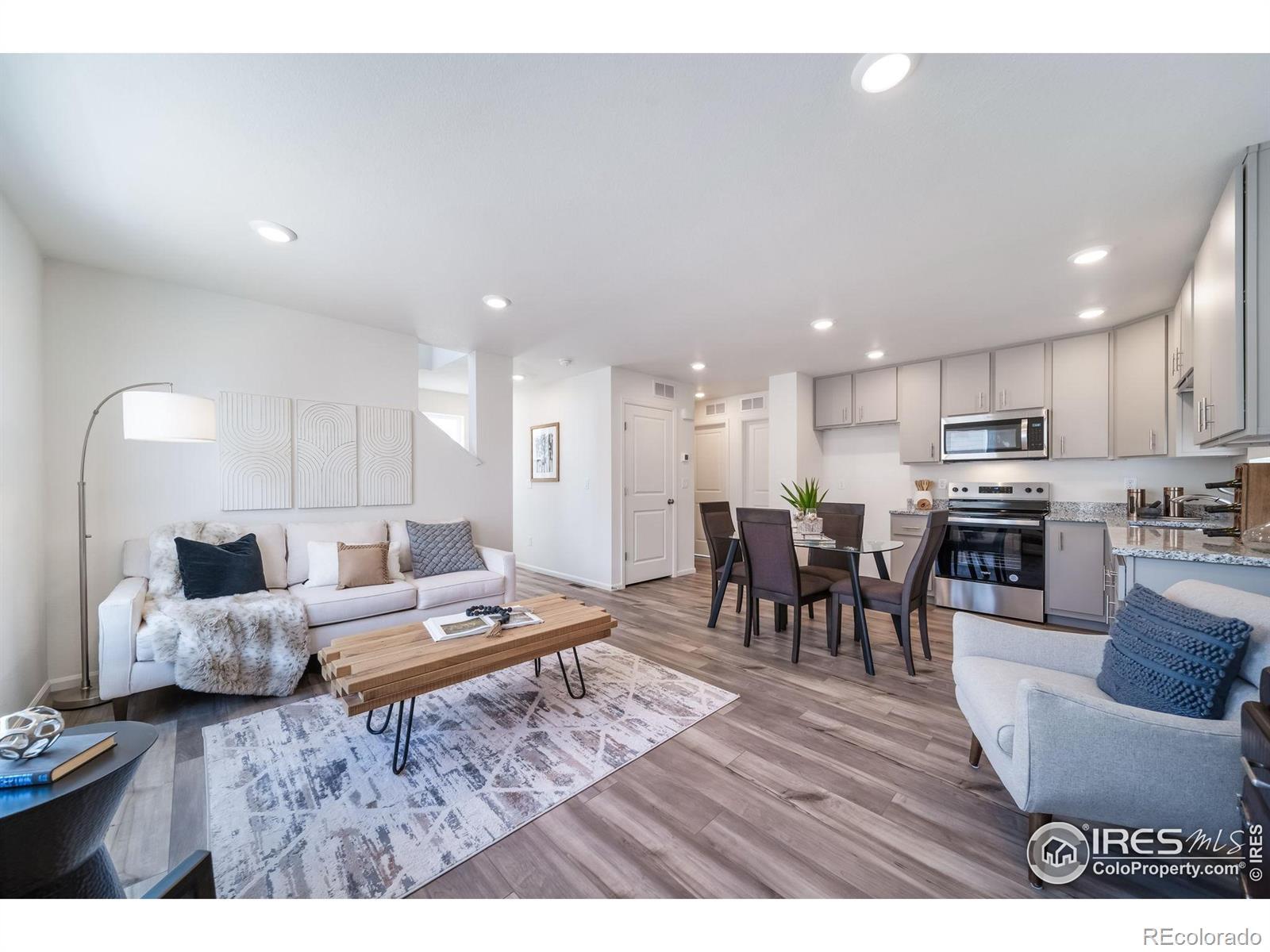 The Albright, an exceptional floorplan that combines style, functionality, and the comforts of modern living. With 3 bedrooms and 2.5 bathrooms, this home offers a spacious and versatile layout that caters to the needs of families and individuals alike.This welcoming space sets the tone for a home that embraces both elegance and comfort. The 2-car garage provides ample parking and storage space, ensuring convenience and organization. Say goodbye to the hassle of searching for parking spots and relish in the ease of having your vehicles securely housed within your own property. Step onto the balcony off the great room and immerse yourself in the beauty of the surroundings. Whether you wish to savor a cup of coffee while watching the sunrise or unwind with a book as the sun sets, this outdoor haven offers a peaceful retreat where you can reconnect with nature and enjoy moments of serenity. The third floor of this remarkable home features a secluded primary suite, providing a private sanctuary to unwind and recharge. Complete with a large walk-in closet, the primary suite offers ample space to organize and display your wardrobe, ensuring that getting ready each day becomes an effortless and enjoyable experience. Additionally, this floorplan boasts a versatile flex space, perfect for a home office or a creative studio. Embrace the freedom to personalize this area according to your specific needs, fostering productivity and inspiration within the comfort of your own home. Actual home may differ from artist's renderings or photography shown. Thompson River Ranch is a vibrant master-planned community with room to roam. Residents enjoy amenities including an outdoor pool, clubhouse, disc golf course, parks, trails, and year-round community events. Families benefit from the highly regarded Thompson School District, and shopping, dining, and major roadways are just minutes away.
