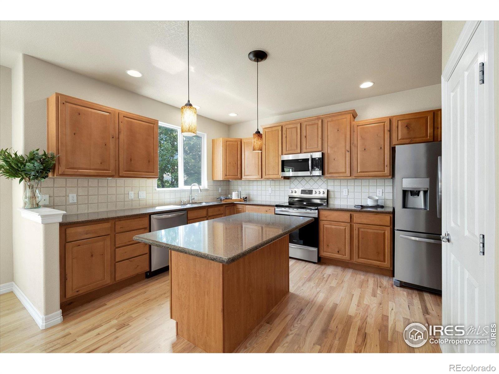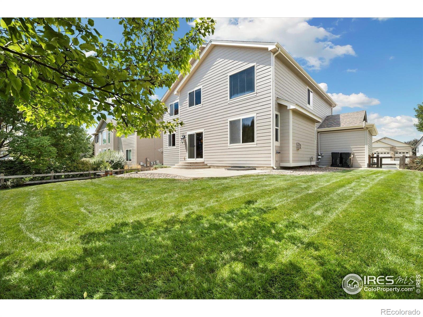 Charming and super clean! This Coyote Run home is move in ready with brand new carpet, newly refinished hardwood floors and new paint throughout. The main floor is open and welcoming creating a great space to entertain! The kitchen features 42 inch Alder cabinets, stainless appliances , slab granite counters and a generous pantry. It's open to the large, vaulted light filled living room and the formal dining room. Walk out onto the patio, with custom circular stamped concrete , firepit area and built in fountain. More great ways to enjoy the space and feel the charm of the neighborhood! Upstairs an oversized primary suite has ample space to enjoy a luxurious escape with walk in closet, dual vanities in the bath and mountain views to start your day! A flexible loft, and two additional bedrooms that share a full bath allow the occupant to create the spaces fit for their lifestyle. A spacious basement allows the room to store or finish to fit your needs . Coyote Run is a friendly beautiful neighborhood that is close to highly rated Mead schools. Don't miss out on this beautiful home!
