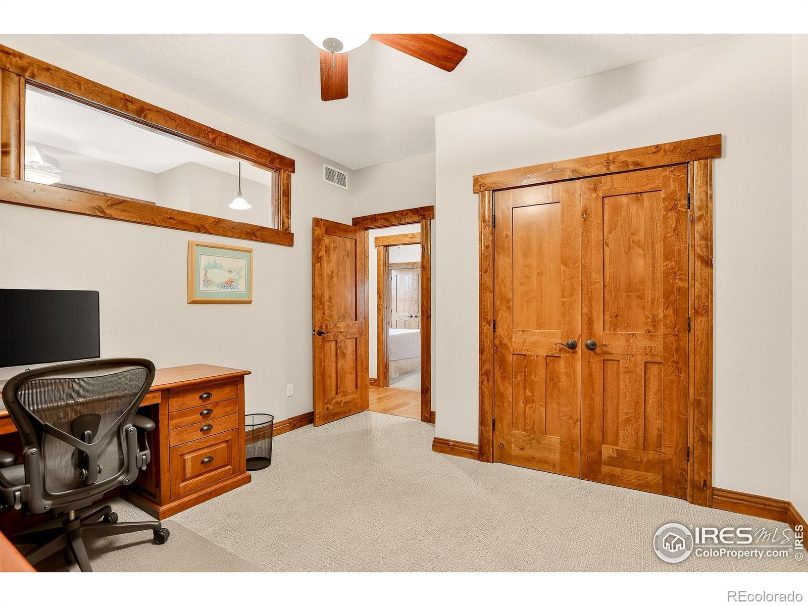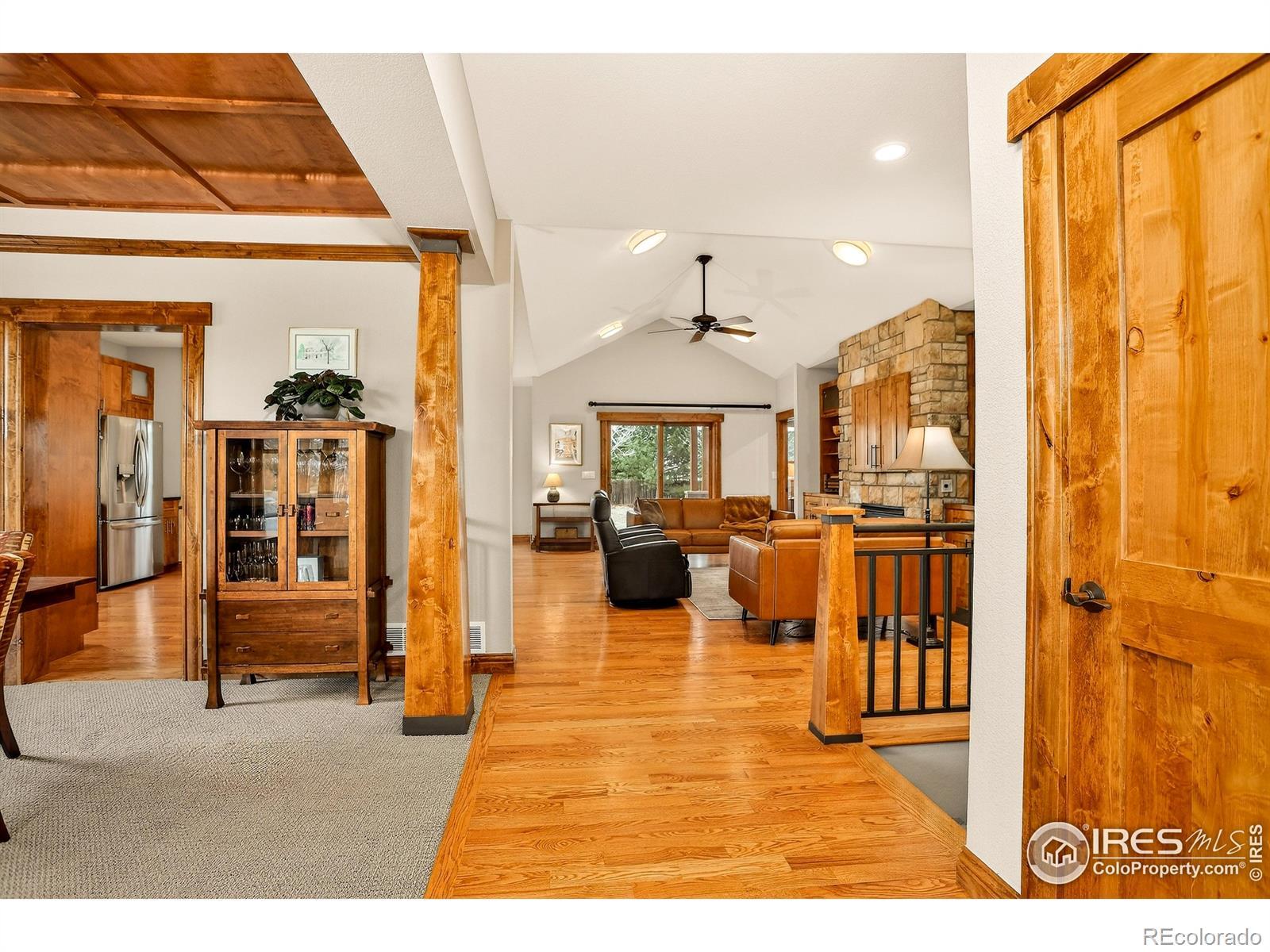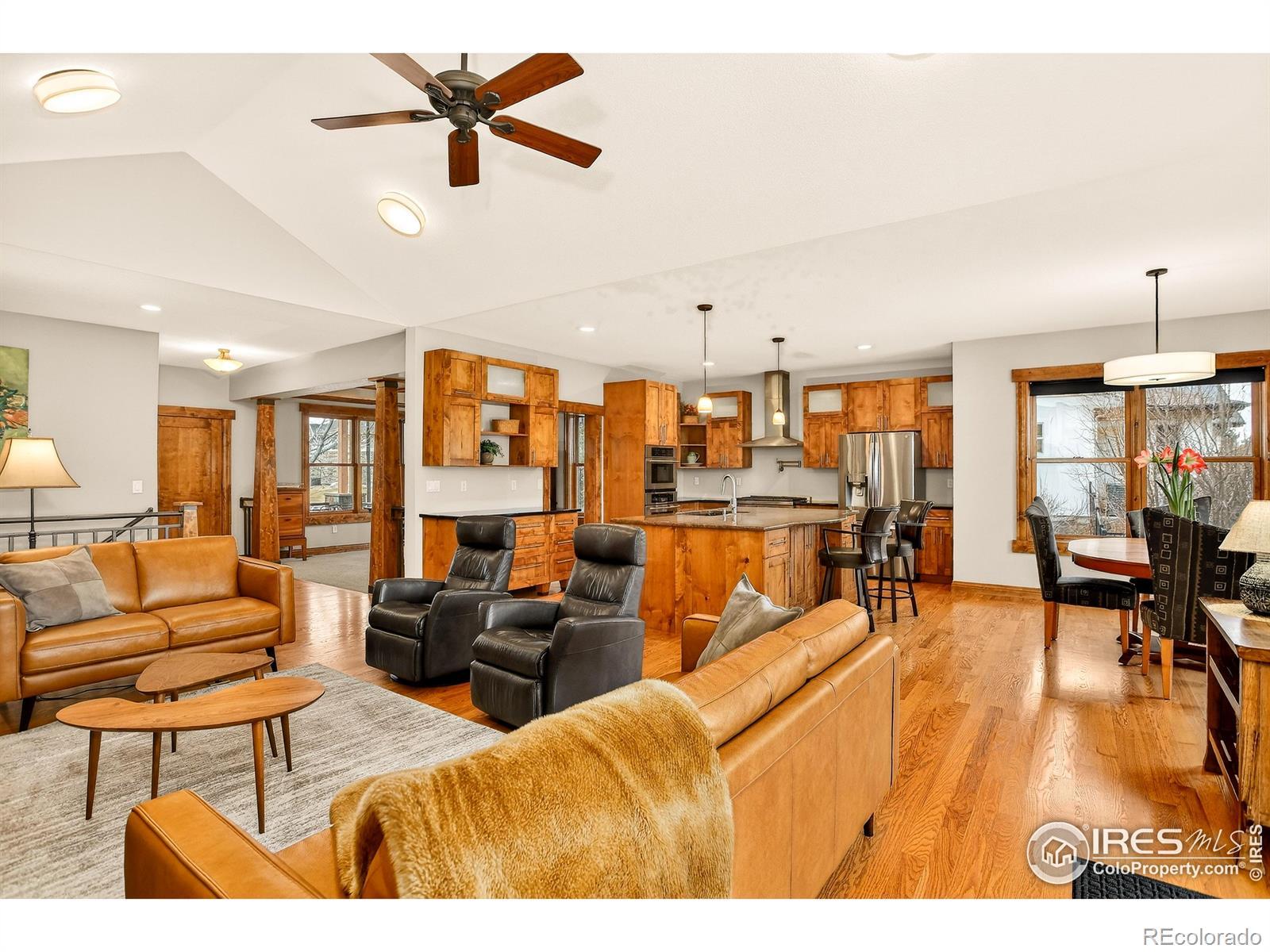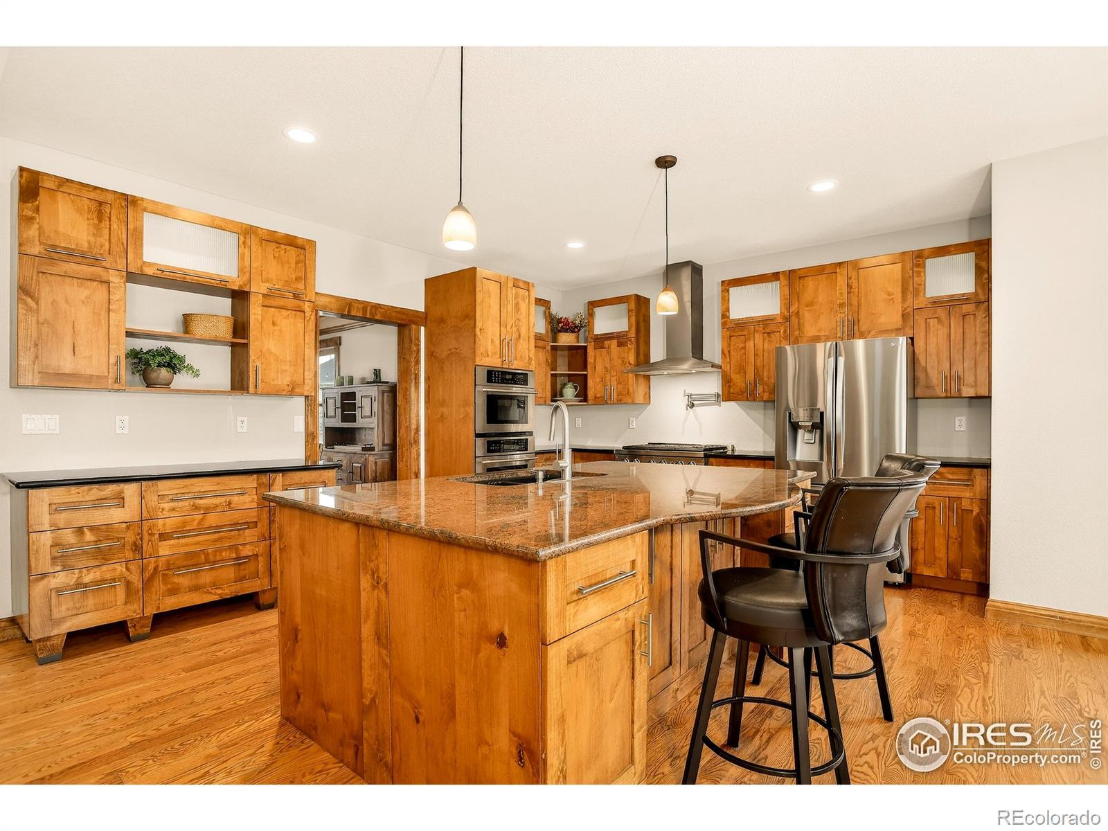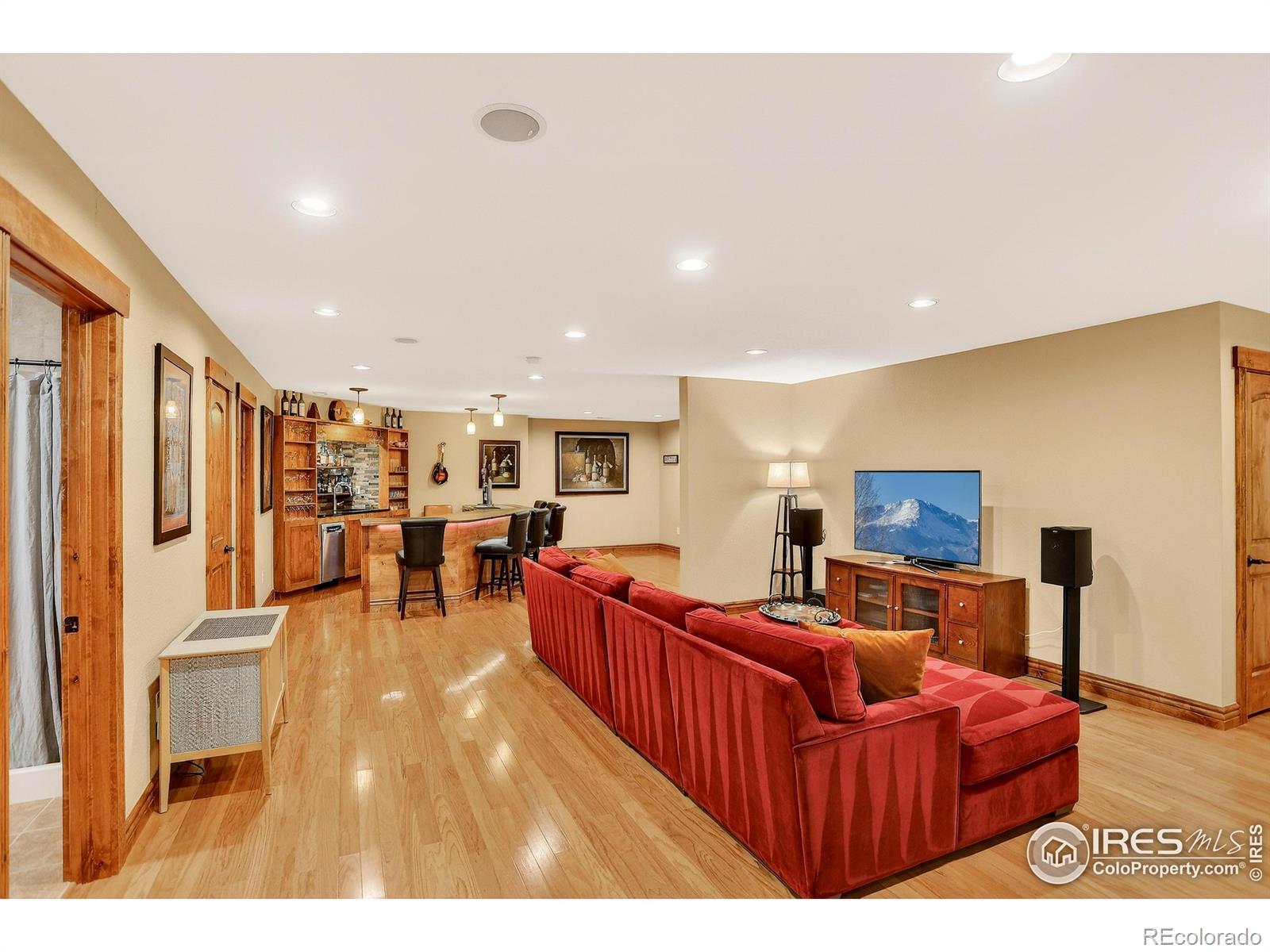 Experience timeless, Colorado elegance and craftsmanship in coveted Candlelight Ridge. This one owner, 5-bedroom, 4-bathroom home features Arts and Crafts style warmth in a quiet cul-de-sac environment.*Step inside to find knotty alder seamlessly gracing each room from the trim and beams to the doors and cabinetry, while 3/4-inch oak hardwood floors anchor the main level.*The gourmet kitchen is designed for beauty and performance, offering a six-burner gas cooktop and a double oven serving both everyday life and special gatherings with equal ease. The dining room is a showpiece of its own, with a custom wood ceiling and detailed crown molding. In the great room, vaulted ceilings rise overhead, drawing the eye to a dramatic, floor-to-ceiling stone fireplace, framed by custom knotty alder bookshelves and a thoughtfully designed TV nook.*The lower-level surprises with a professionally built full bar, climate-controlled wine cellar and a soundproof recording studio with six-inch foam-filled walls-perfect for music, media or focused work.*Practical upgrades include Anderson double-pane windows, custom built-ins in the closets, owned solar, 220V in the garage, a built-in radon mitigation system and fresh interior paint in 2023.*Above the garage, a bonus room with its own entrance, bathroom and Flatiron view, offers endless possibilities-guest retreat, home office, yoga studio or creative haven.*Outside, tongue-and-groove ceilings beautify both the front and back porches, and the .37-acre yard is a private sanctuary. Lushly landscaped with mature trees, flowering gardens, herbs, a vegetable garden-and even your own apple tree-multiple seating areas await to enjoy lingering mornings and golden-hour sunsets. The back patio is enhanced by a Trex deck porch and a gas line for outdoor barbecuing. Both front and back yards have full sprinkler systems.*This home was thoughtfully built, carefully maintained and clearly meant to last. Welcome home!