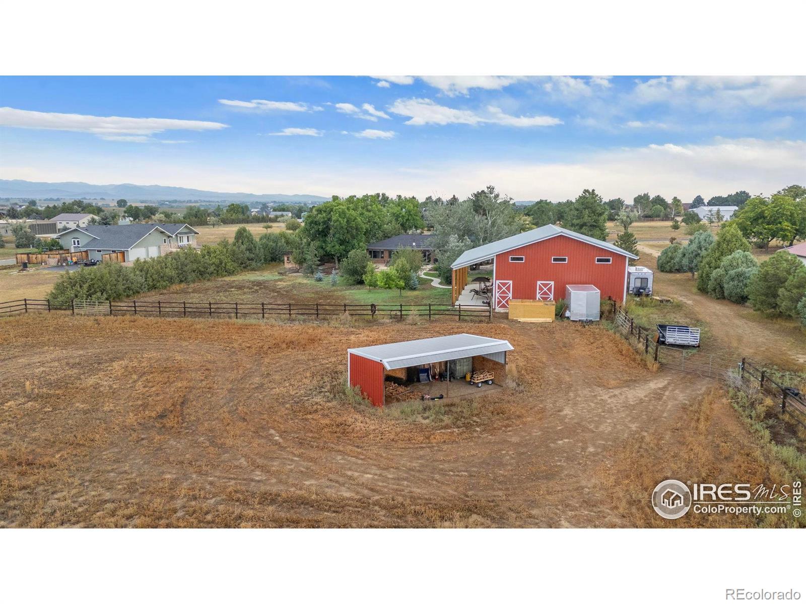 Bring your planes and your horses! Amazing opportunity to own over 2 acres with serene mountain views in Erie's premier private airpark community! This amazing property features a renovated home with main floor primary suite, an 1,800 sqft shop perfect for storing your RV, plus a fenced one acre pasture w/ 3 sided shed & dedicated water. The shop features enforced rebar concrete, 14 foot doors, &50 amp wiring perfect for storing any size RV/motor home. The rear of the shop includes split barn steel doors which could easily be converted to a barn. The shop sits on over 2,300 square foot concrete pad with overhang patio perfect for enjoying summer sunsets with unobstructed western views. Step inside the fully renovated home to find an open concept floorplan w/ fully updated kitchen & new wood burning stove right at the heart for perfect gathering space. Large great room adjoins the newly updated kitchen with granite counter tops, large center island with storage and stainless appliances. Other updates you are sure to appreciate include: newer siding, roof, patio, renovated bathrooms, new doors trim and light fixtures throughout! The main level primary suite has ample closet space, a renovated bathroom with heated tile floors and dedicated AC unit to ensure restful nights. The spacious upper loft area could be a 4th bedroom with closet and 3/4 bathroom. The mature landscape is very low maintenance which you will appreciate as you sit on the new large stamped patio and gaze out at the pasture. Adorable she-shed with gardening tools and raised garden beds perfect for gardening.The property has an option to build a hanger near the FBO (contact agent for more details). Amazing opportunity to own in unincorporated Weld County with 2.9% tax rate. Enjoy tranquil and pastoral living while still just minutes from I-25, schools and shops/restaurants. You wont find another gem like this one!