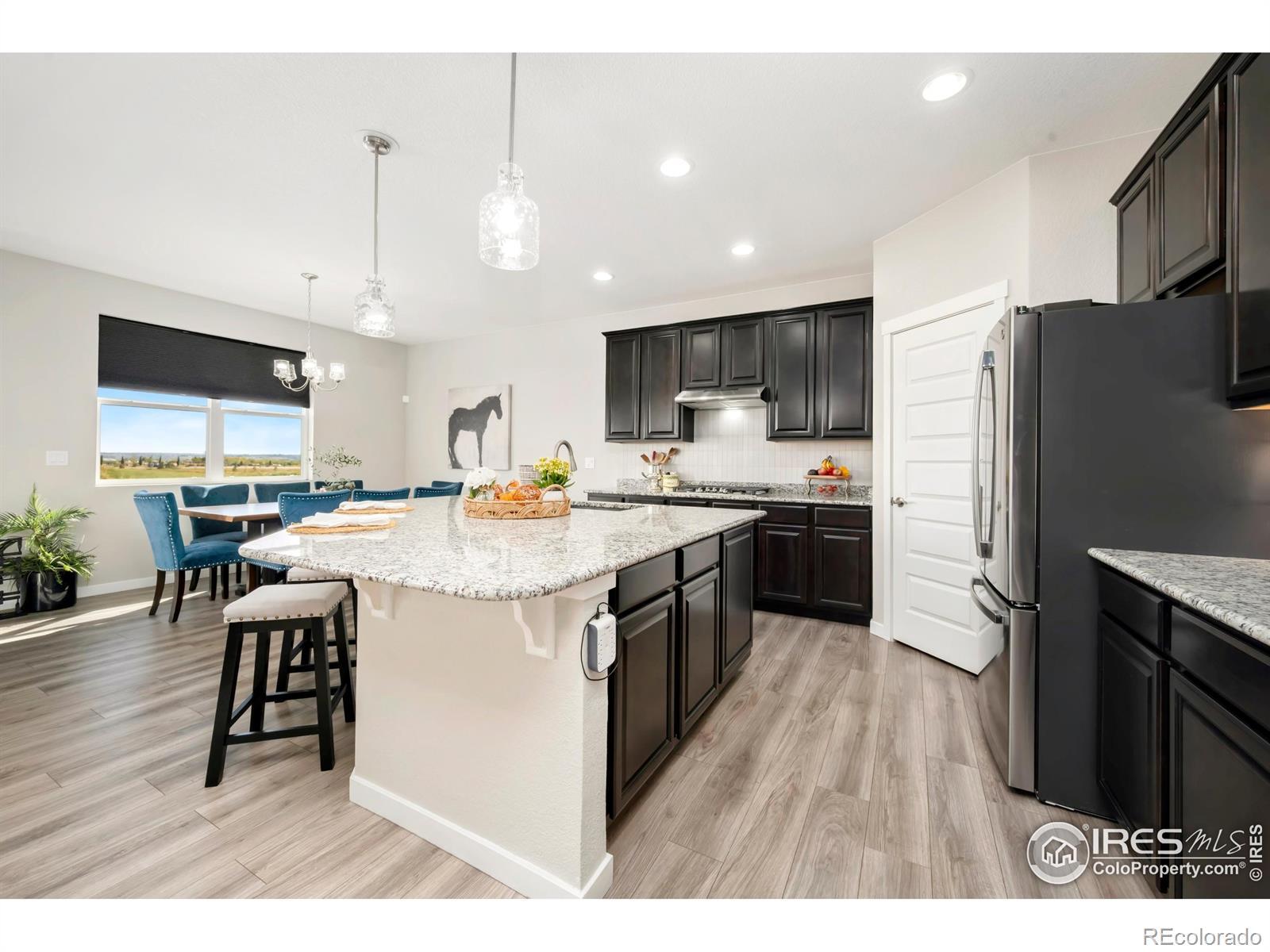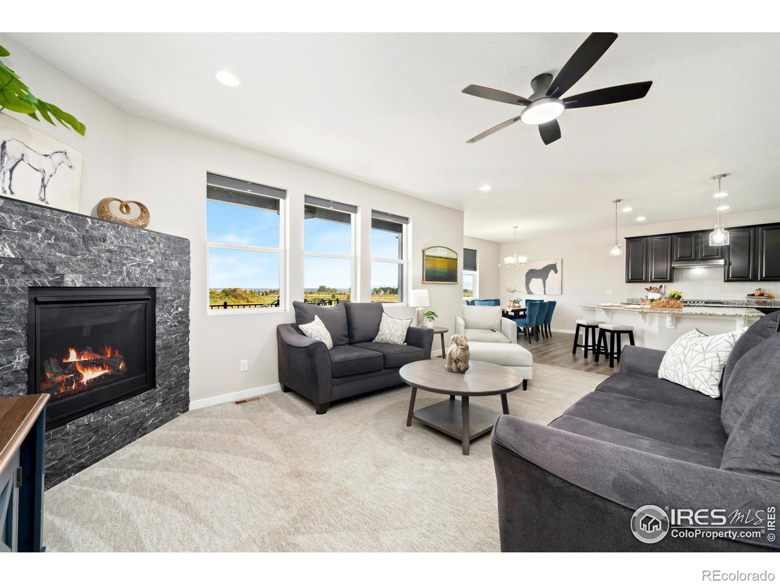 Discover this stunning 5-bedroom, 4-bath ranch-style masterpiece offering over 3,800 finished square feet of refined living space. Perfectly positioned to capture unobstructed mountain views and serene open space, this home invites you to start your day with coffee on the tranquil deck and end it with unforgettable Colorado sunsets. Inside, every detail speaks of quality and style. The chef's gourmet kitchen showcases stainless steel appliances, double ovens, a built-in gas cooktop, a spacious refrigerator, and gleaming granite countertops. An oversized island and upgraded lighting create the perfect space for entertaining. Luxury vinyl plank flooring adds modern elegance and durability throughout. The sun-filled living room features soaring windows and a striking custom stone fireplace, while a private home office makes remote work a pleasure. The primary suite offers a true retreat with a generous bedroom, spa-inspired 5-piece bath, and direct access to the main-floor laundry for ultimate convenience. Downstairs, the finished garden-level basement is an entertainer's dream with three additional bedrooms, two full baths, a massive rec room, and a full wet bar with refrigerator. From movie nights to game days, karaoke parties to dance floors, this is where memories are made! A large guest suite in the finished basement provides privacy for weekend visitors or multigenerational family living. The HEATED 3-car garage features an epoxy-coated floor for a polished finish. Located just minutes from I-25, Fort Collins, top dining, shopping, bike trails, and outdoor recreation, 1829 Holloway combines upscale comfort with unbeatable access. Experience the views, the space, and the lifestyle - schedule your private showing today!