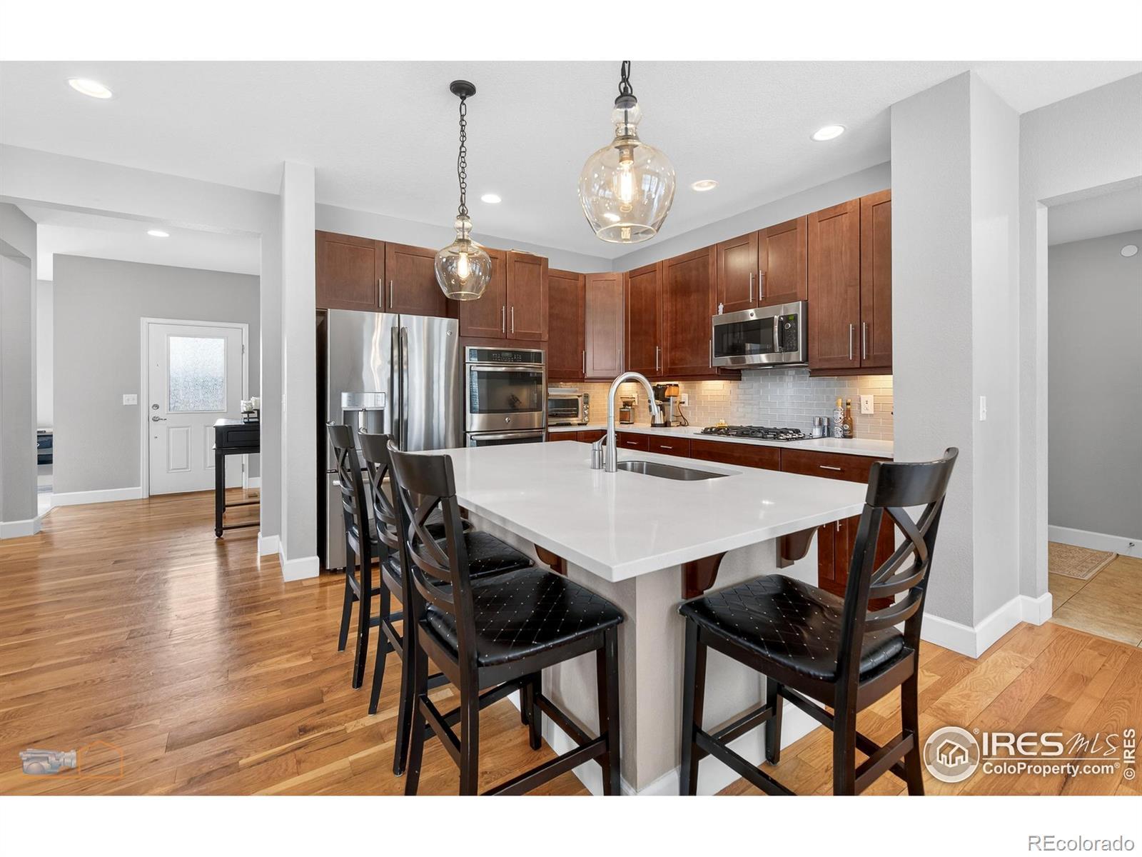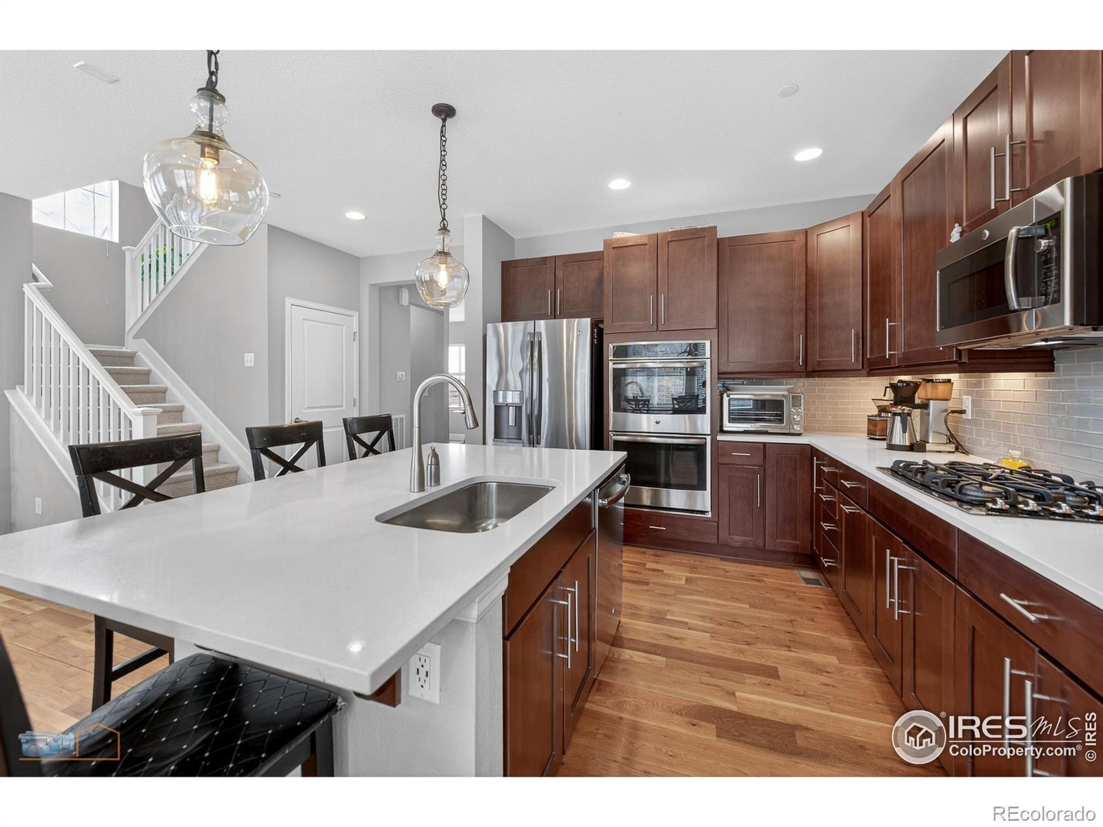 Welcome to this Well Maintained Home Loaded with Upgrades in the Desirable Legacy Ridge Neighborhood. This Home is Tucked Away In A Neighborhood that is Inviting At Every Turn. Enhanced Amenities Include a Clubhouse, Pool, Multiple Parks, Trails, Westminster Rec Center & Golf Course. 3 Bedrooms Plus An Office and 2.5 Baths. Sunny South Facing Great Room Includes A Large Living Room With A Gas Fireplace, An Open Kitchen With Island and Casual Dining Room. The Kitchen Features GE Profile Stainless Steel Appliances, Soft Close Cabinets and Dove Tail Drawers. The Main Floor Also Features An Office, Pantry, Powder Room, Mud Room, 9' Ceilings & White Oak Wood Floors. Easy Access To A Beautiful Professionally Designed Landscaped Yard With Covered Porch And Stone Patio. Spacious Primary Bedroom Suite Features A Large Bedroom With Coffered Ceiling and Luxury 5 Piece Bath With Soaking Tub, Separate Shower & Double Vanity. 2 Additional Bedrooms, Full Bath and Laundry Room Complete The Second Floor. Oversized 3 Car Tandem Garage with Electric Car Charger and Full Unfinished Basement with 9' Ceilings Is Ready to Finish. Additional Features Include A Whole House Fire Sprinkler System, Ion Solar PV System Installed in 2018, New Roof in 2022, Central Air Conditioning, Pottery Barn Pendants In Kitchen and Dining Room, Ceiling Fans in Living Room & 3 Bedrooms. Easy Access to Boulder, the Promenade Mall, DIA, Denver, Highway 36 and E470.