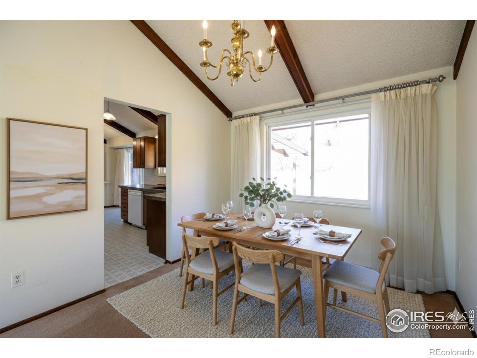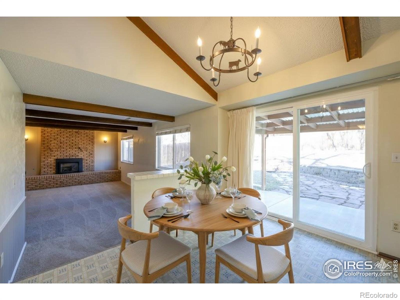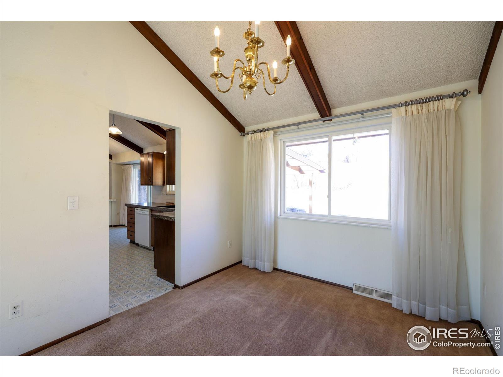 Welcome to this well-cared-for 4-bedroom home located on a quiet cul-de-sac in the heart of Longmont. The main living areas feature vaulted ceilings with exposed beams, creating a bright and open feel throughout the home.Recent updates include a new furnace installed in December 2024, a new front entry door, and new carpet in the family room. Large windows and the home's elevated position offer spectacular mountain views, while mature trees provide privacy and character to the property. The private, fully fenced backyard includes a spacious covered patio, ideal for outdoor dining, entertaining, or relaxing year-round. The attached garage offers extra shop space and storage, adding flexibility for hobbies, projects, or additional organization. Elementary and middle schools are within walking distance, and the home is conveniently located near parks, trails, and everyday amenities, all while maintaining a peaceful neighborhood setting. This property combines thoughtful updates, outdoor livability, and a desirable location, making it a strong opportunity in one of Longmont's established communities.