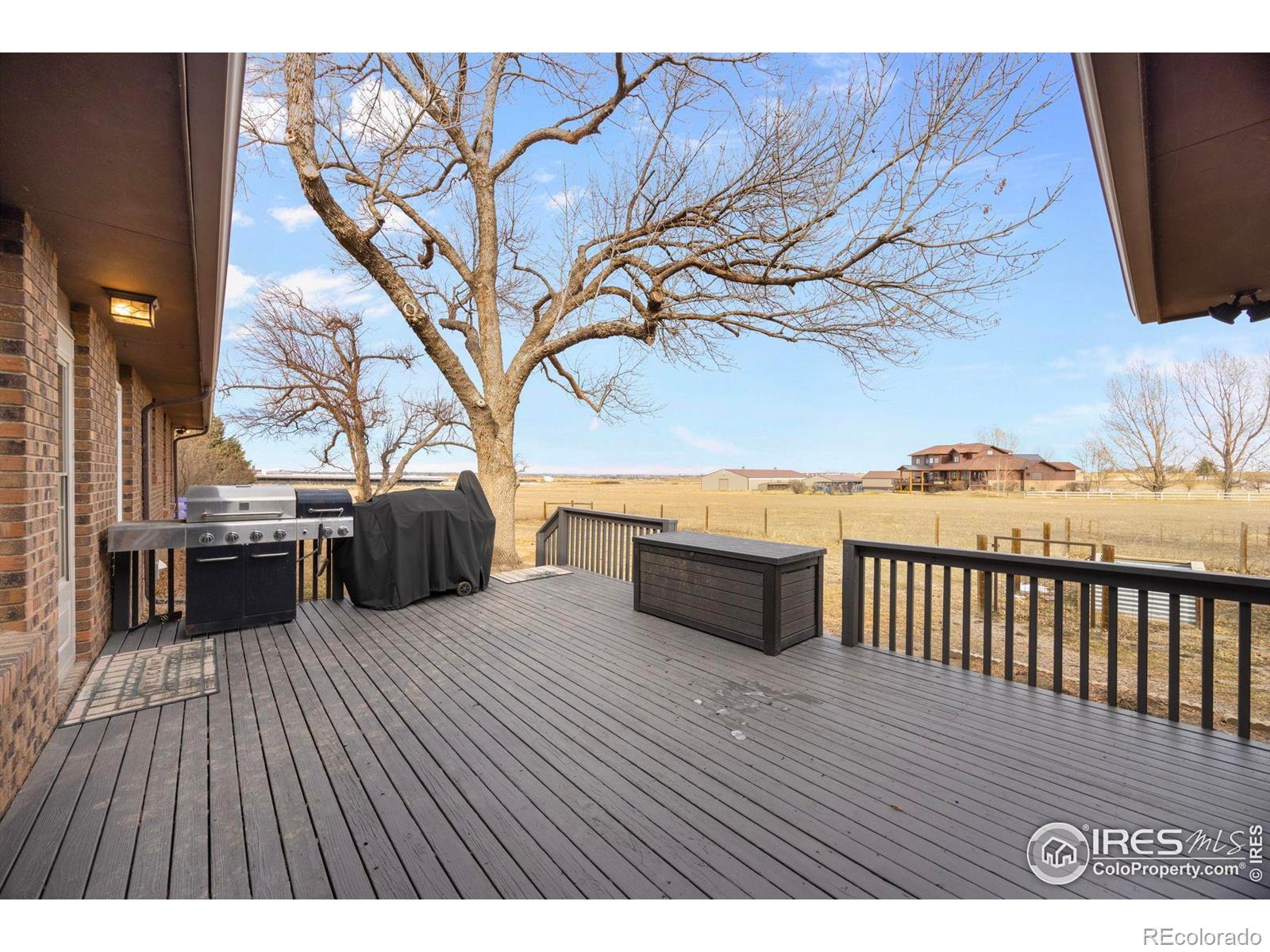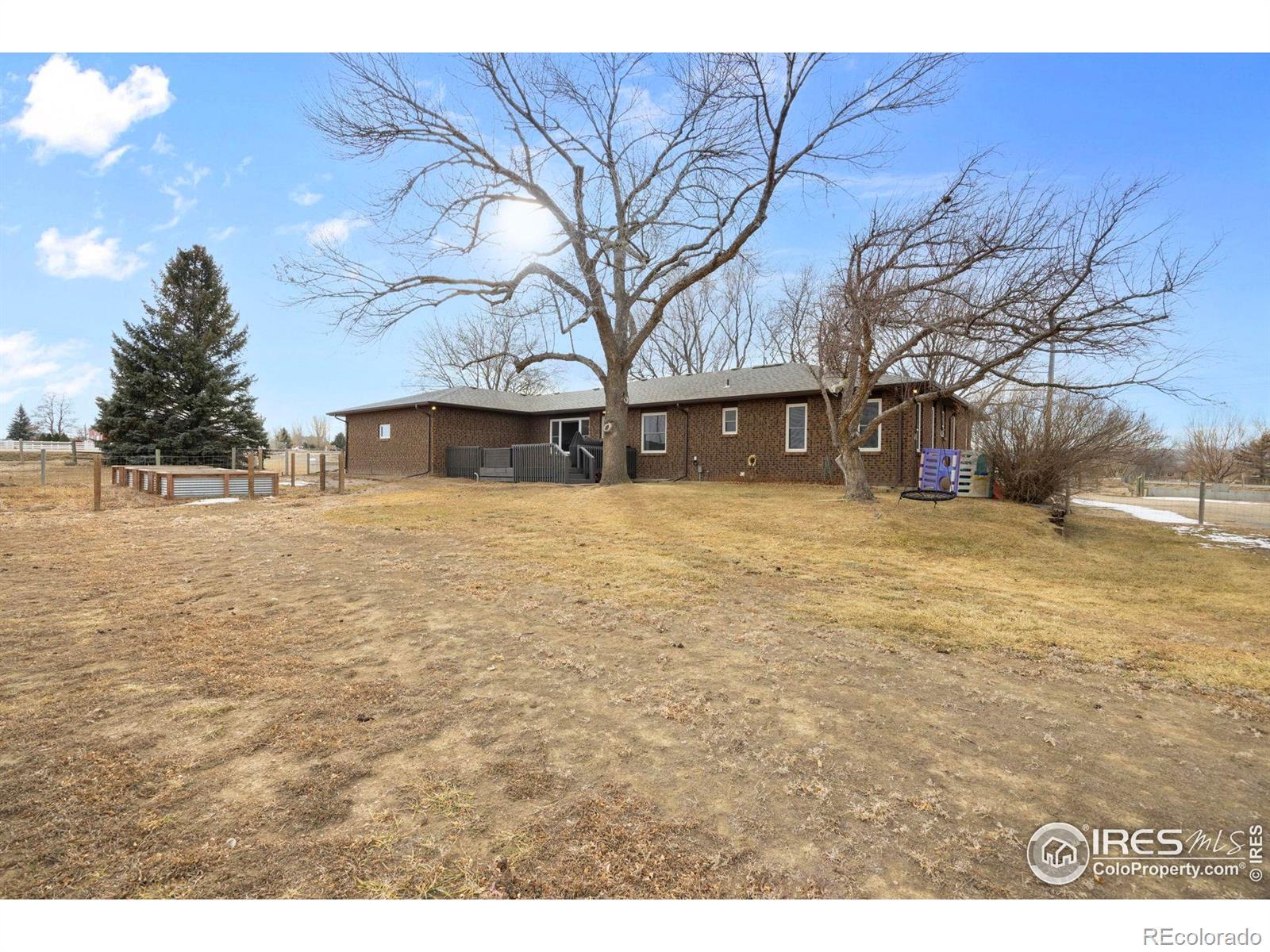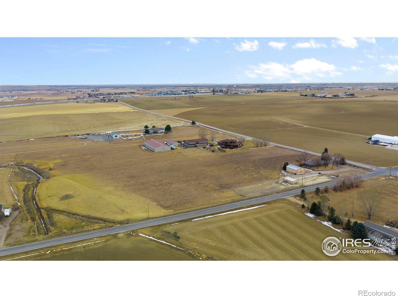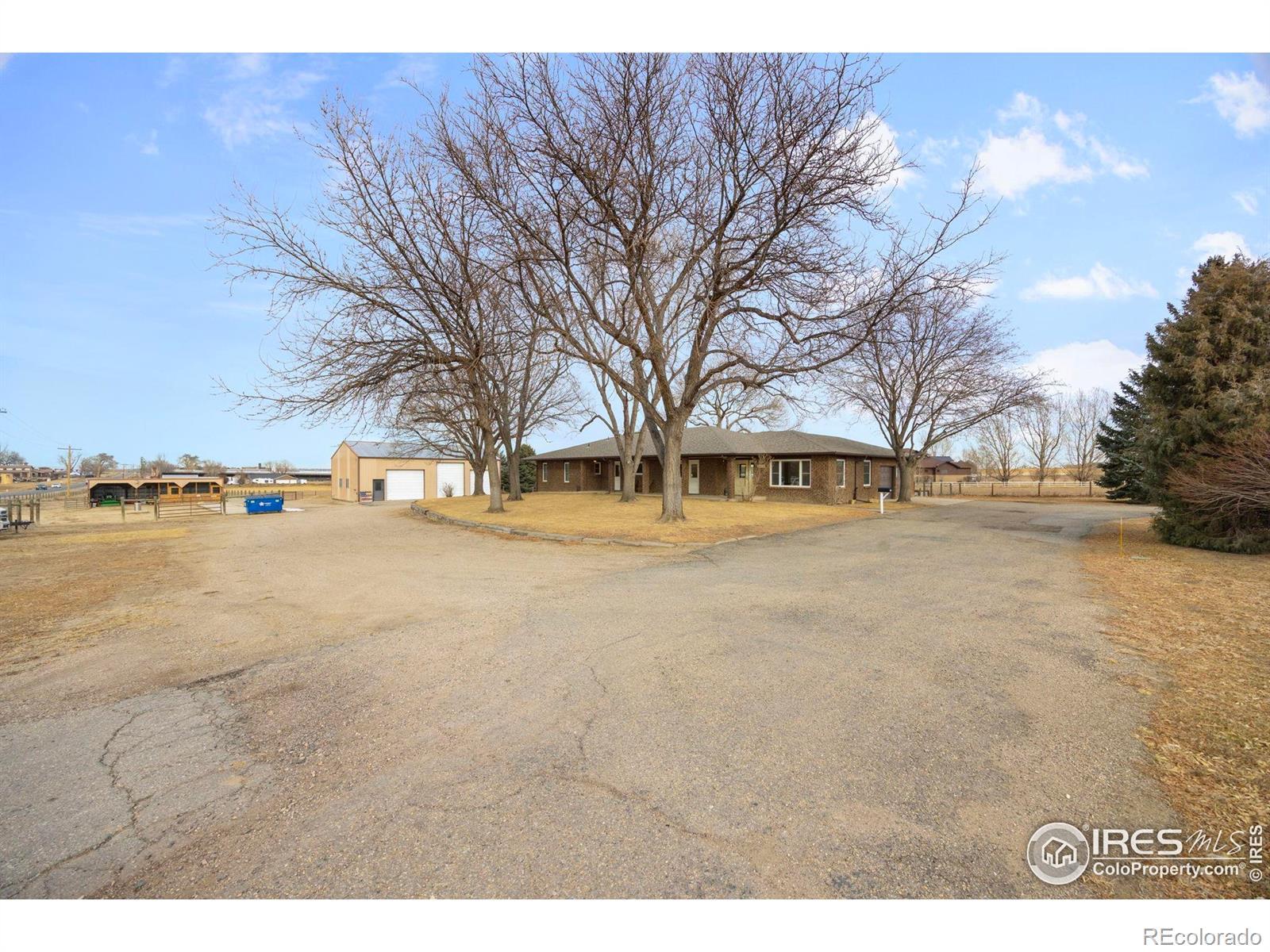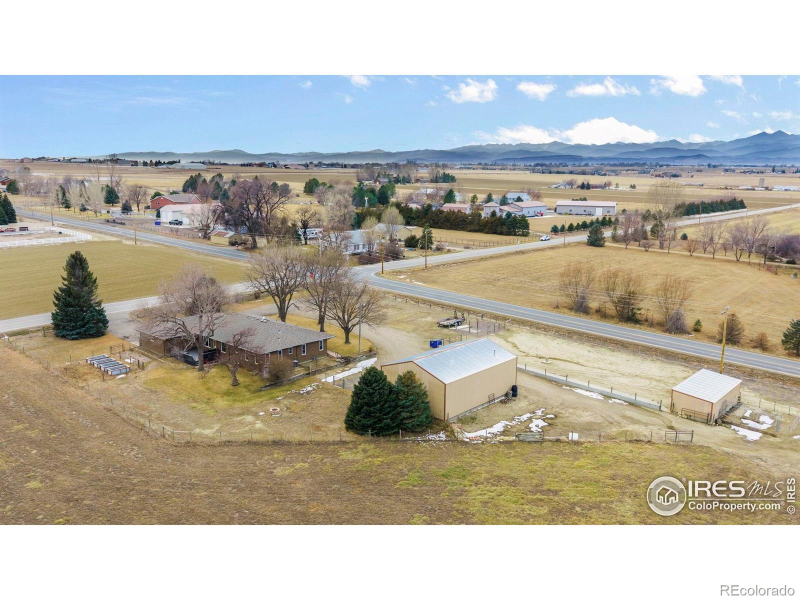 Water! Consolidated Christian-Connors Lateral Ditch Company 1 Share. 11-acre property true Colorado living with space, privacy, and no HOA or metro district. This 3,200+ sq ft brick ranch offers 3 bedrooms, 3 baths, a 2-car garage, finished basement, and ideal main-floor living with updated carpet, paint, baths, lighting, a newer furnace, and a 5-year-old roof. Natural light fills the home, and the kitchen features a gas range, generous cabinetry, and seamless flow into open living and dining areas. The yard includes a sprinkler system, fenced backyard, mature landscaping, raised garden beds, and a large deck for outdoor living. The land is horse-ready with fenced runs, pasture, loafing shed, automatic waterer, wash station, 1 share of water, and a hay field producing approx. 600 bales/year. A 30x60 shop with heat on one side, plus additional storage buildings, offers excellent flexibility for animals, equipment, or creative projects. Paved access and close to I-25, yet surrounded by farmland for peaceful, rural charm. Home warranty included. This is a rare chance to create your dream home, hobby farm, or retreat, with the freedom to make it your own.