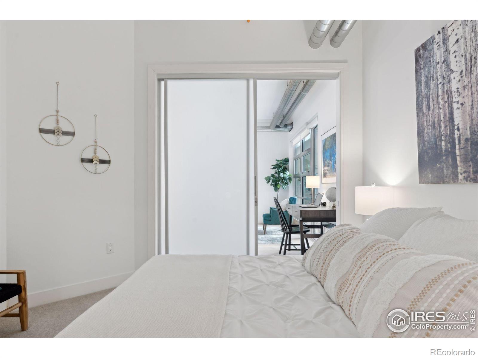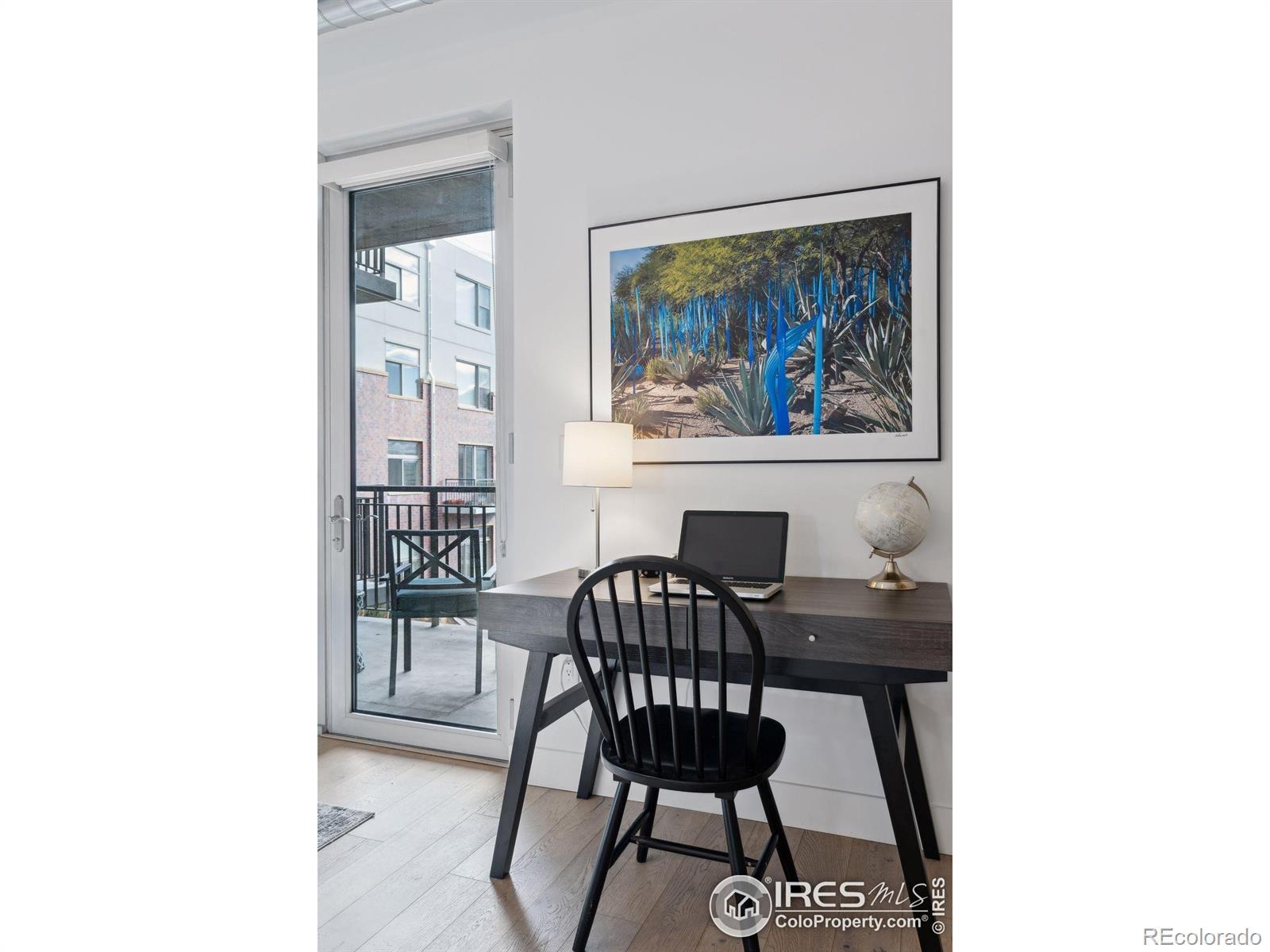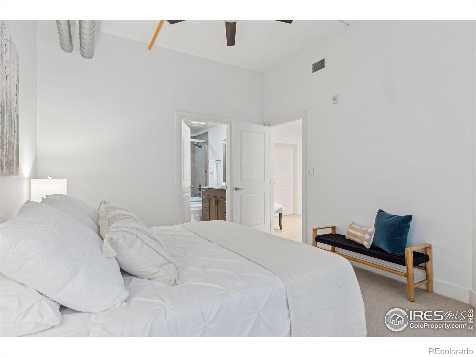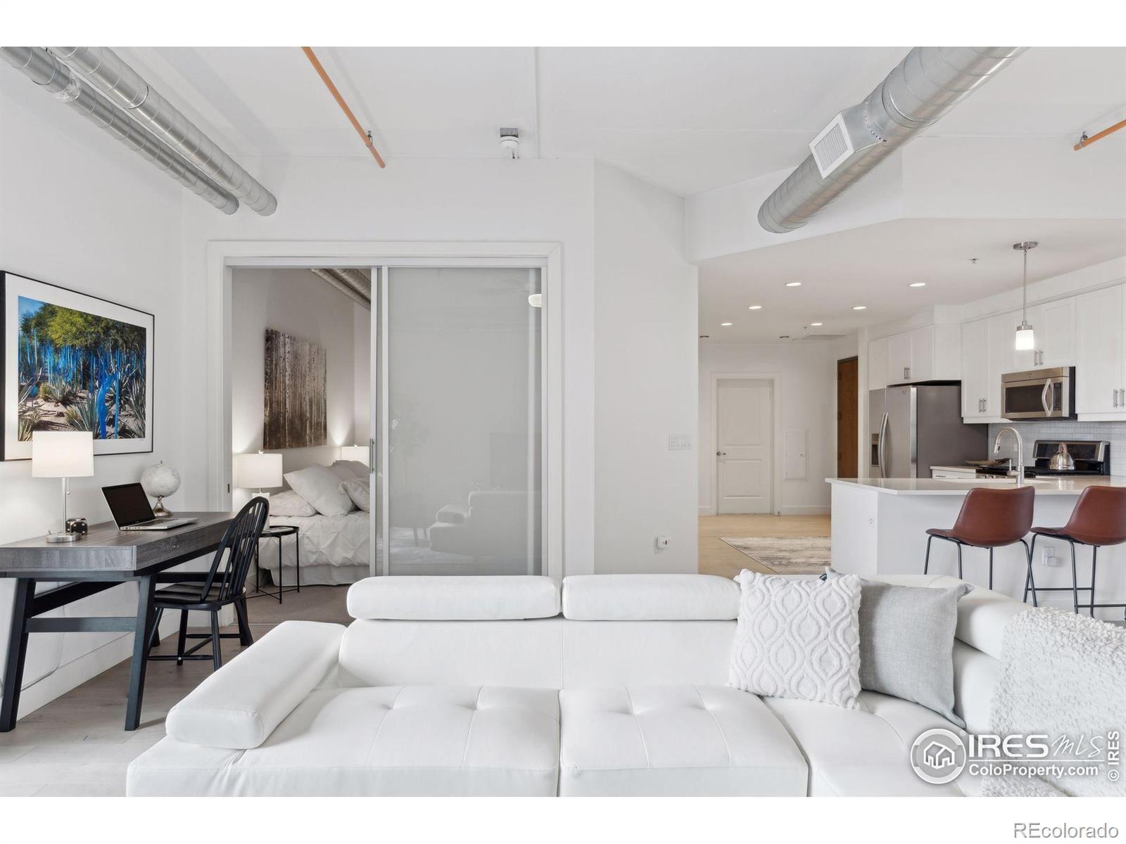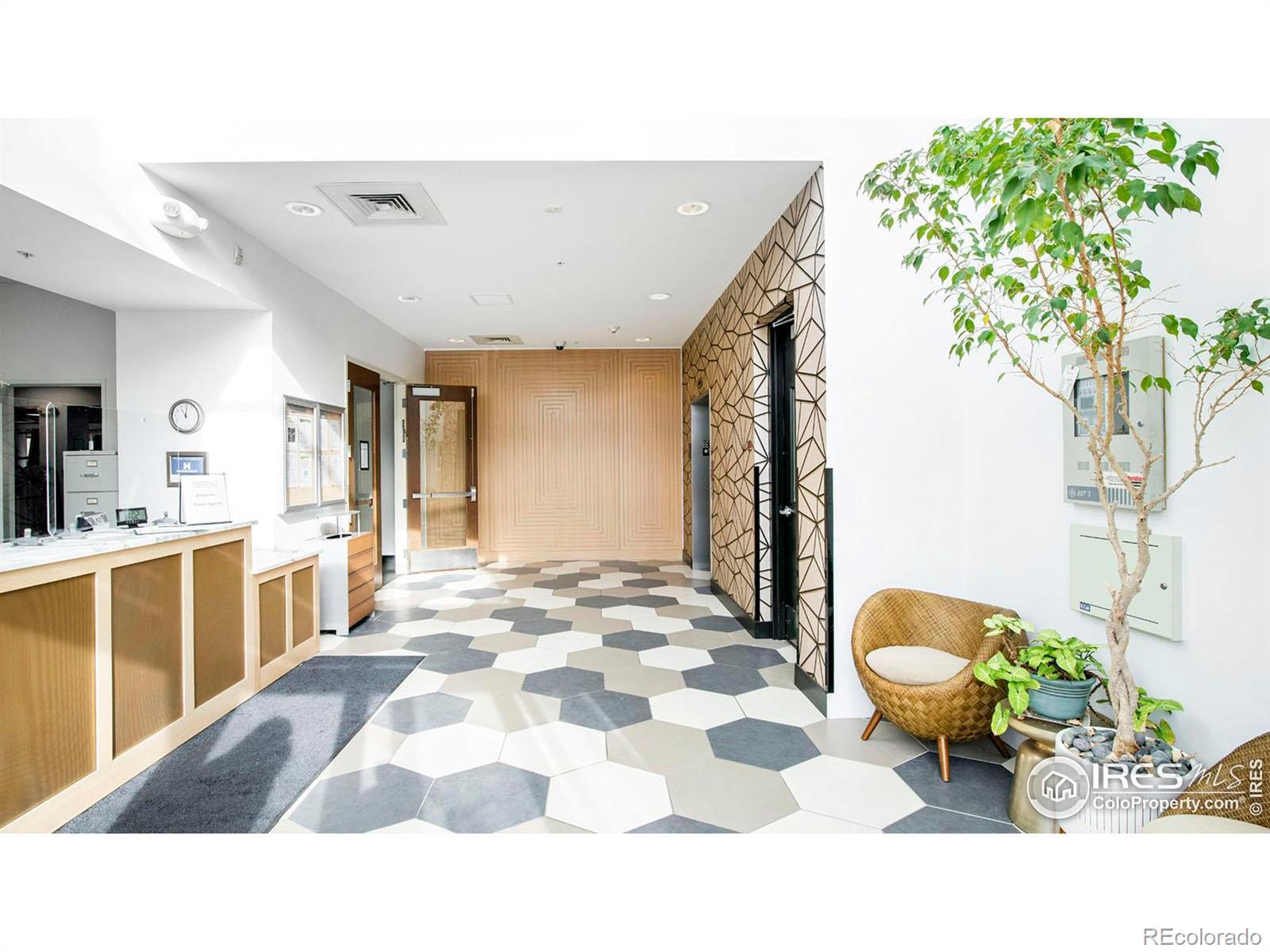 Replete with modern finishes, this spacious 1 bedroom residence offers a convenient, lock-and-leave lifestyle in a vibrant Boulder location. A generous and open, loft-style layout unfolds with fresh paint, 100% wool Berber carpeting and white oak wood flooring. The home chef is treated to a sleek kitchen featuring designer Ann Sacks tile, an eat in peninsula with quartz counters and stainless steel appliances including a gas range. Open a glass door in the natural light-filled living space to reveal access to a private, south-facing outdoor balcony. Retreat to a sizable bedroom highlighted by a large walk-in closet and an en-suite bath. A laundry/utility room features a washer and dryer set and ample storage. Built with concrete and steel construction, this secure elevator building includes underground garage parking and offers exclusive access to the on-site Peloton amenities featuring a 24-hour commercial-quality gym, a year-round heated rooftop pool and hot tubs, dedicated community management, private dog park and walkable award-winning restaurants. A central Boulder location provides proximity to local eateries, coffee shops, microbreweries, premier yoga and fitness studios, Google, Apple, Trader Joe's, Whole Foods, biking paths, and the outdoor Twenty-Ninth Street retail district.