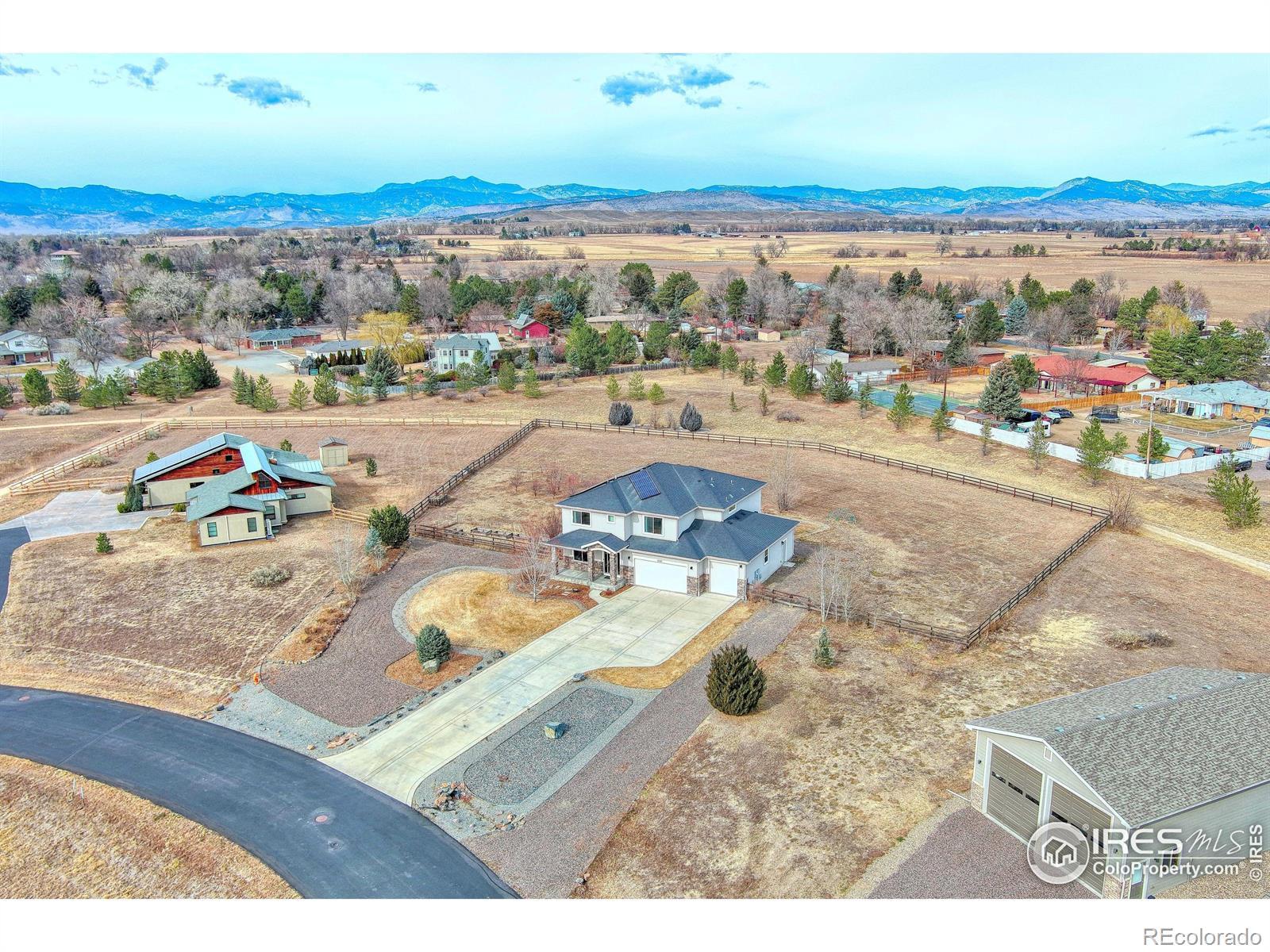 Open House Sat. 2/14 from 10 am - 2 pm. Gorgeous contemporary semi-custom home on 1.35 acres! Have a newer home, privacy and plenty of space in Boulder County! Enjoy great mountain views of Longs Peak from the upstairs! Open and sunny floor plan with 18' ceilings in living room makes for a super entertaining space. Kitchen is a cooks paradise with a Thermadore refrigerator and range hood, new 6 burner gas stove and kitchen island for seating. Large primary bedroom has 5 piece luxury bathroom. Beautifully finished basement already has a living room, kitchen, bar, bedroom, full bathroom and could be a mother in law suit. Terrific gardens with fruit trees and raised beds are ready for your spring plantings. This has outdoor living at it's finest with a large patio, firepit, fenced yard and plenty of privacy. Incredible 5 car drive through garage with 9' door. House faces 7 acres of open space that will never be built upon. This house in the highly desirable Monte Cielo neighborhood is a rare find. Neighborhood has 22 custom & semi-custom homes with 24 acres of open space & 1 mile walking path on the perimeter. Outbuildings and ADU's are allowed. Don't miss this opportunity!