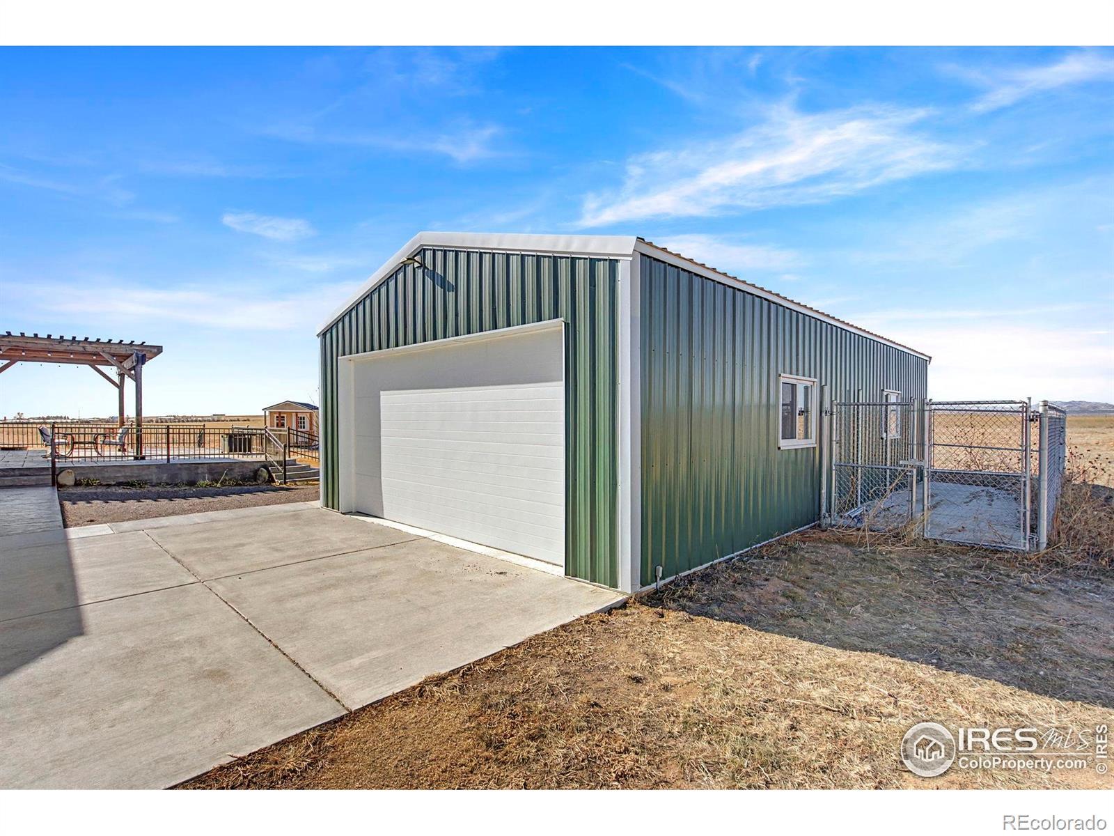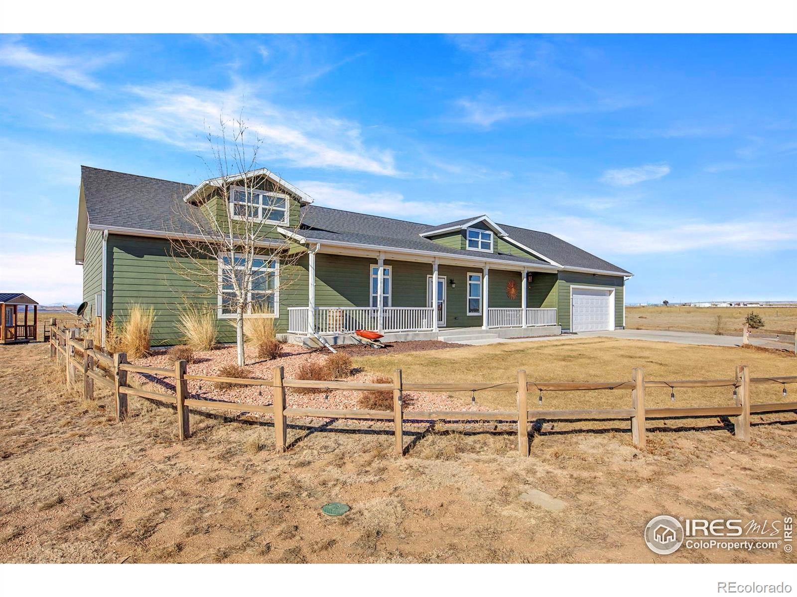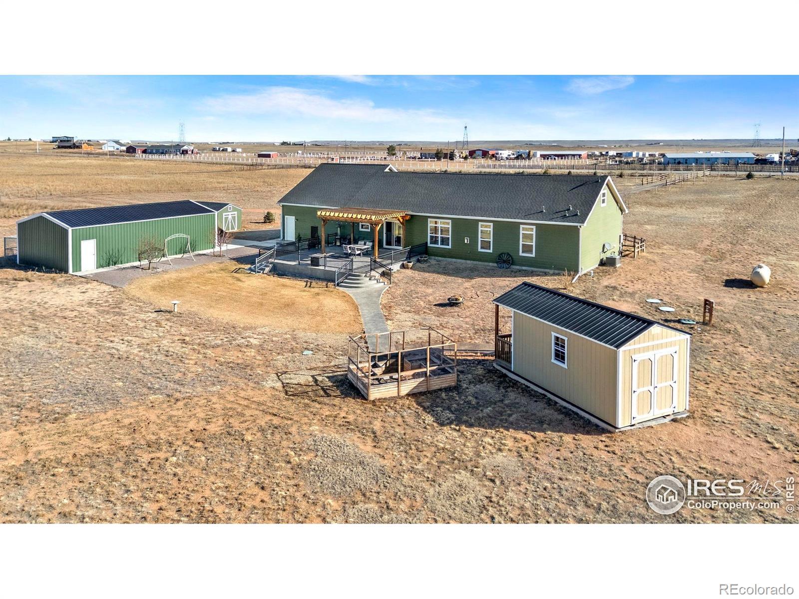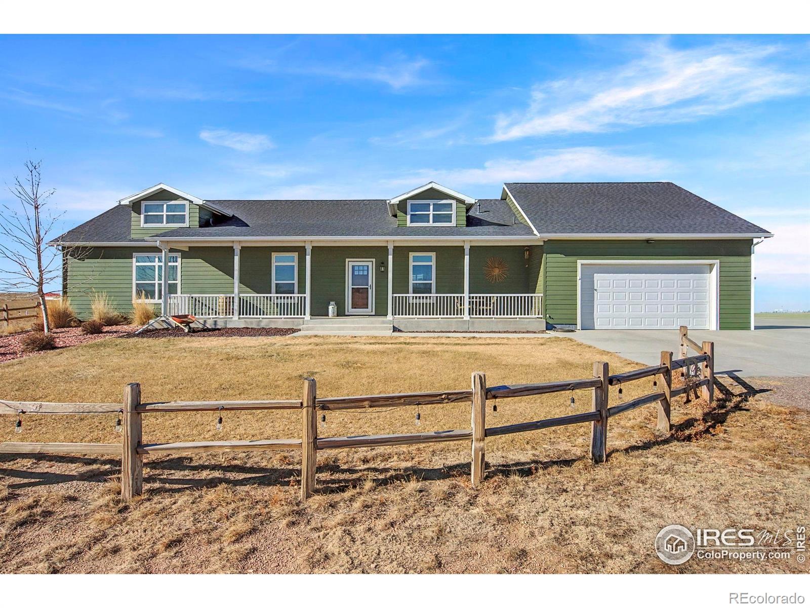 The country acreage you have been waiting for! Located on 40 acres with breathtaking Front Range mountain views, this well-maintained property features a beautifully cared-for 3-bedroom, 2-bath home with an attached 4-car tandem garage, detached 40' x 21' shop, multiple storage buildings, greenhouse, chicken coop and much more. Interior features include a spacious open layout with large windows providing abundant natural light, a gas fireplace, can lighting and upgraded fixtures throughout. The kitchen offers stainless steel appliances, cityscape whitewash cabinetry, ample cabinet space, under-cabinet lighting, a large pantry, custom tile backsplash, drop-in farmhouse sink and a large island with seating. A separate formal dining room features updated lighting. The primary suite includes a large walk-in closet, double sinks, tile shower and tile backsplash. Two additional generously sized bedrooms offer large closets and share a full second bathroom on the main level. The oversized laundry room provides extensive cabinet storage and a dryer bar, with washer and dryer included. The home is in immaculate condition and includes a massive attic storage area with stairway access. The attached insulated 4-car tandem garage is equipped w/220V electricity. Outdoor amenities include a stamped concrete back patio with pergola overlooking the acreage & capturing unparalleled mountain views, along with a large covered front porch perfect for enjoying quiet mornings. An attached greenhouse provides space for gardening or additional storage. Property also includes an 18' x 10' storage shed with covered porch, a 16' x 16' storage shed and a 40' x 21' detached shop with concrete floor-ideal for workshop space, equipment storage or recreational use. Beautifully landscaped grounds feature fruit trees, blue spruce, cottonwood, aspen trees and more, w/drip system and irrigation in place. Rare opportunity to own a versatile 40-acre property w/exceptional views.