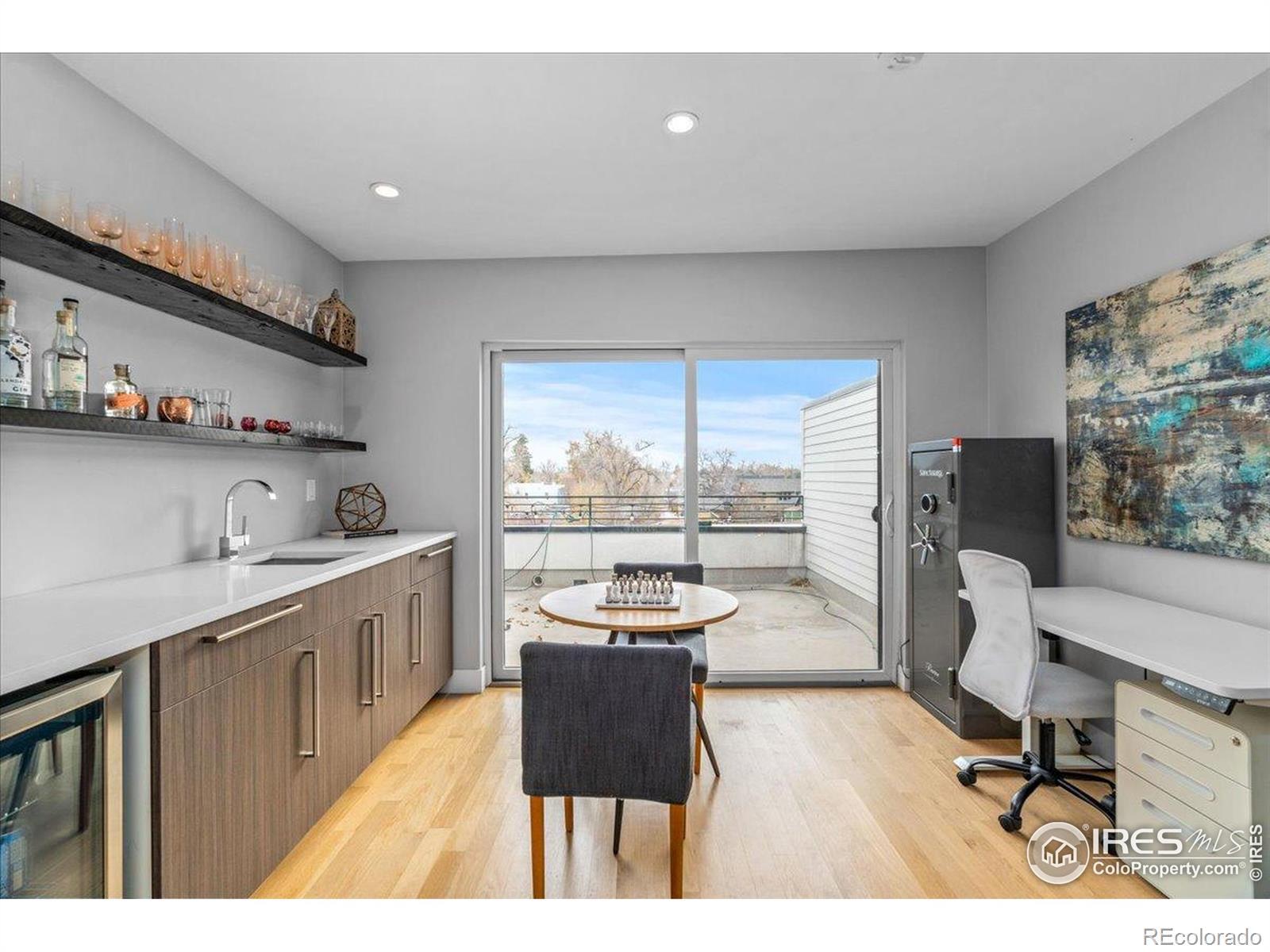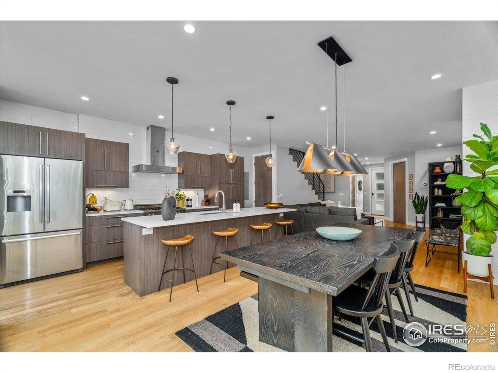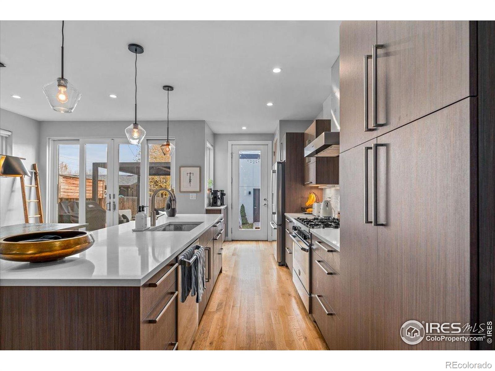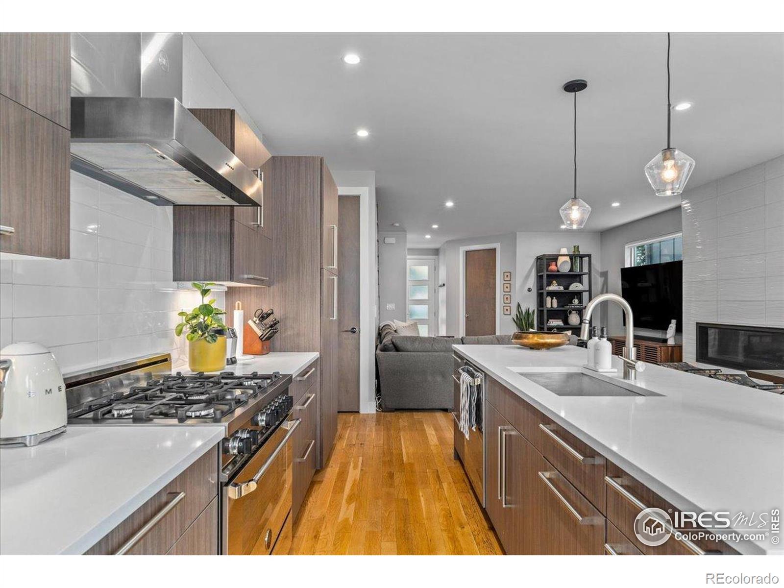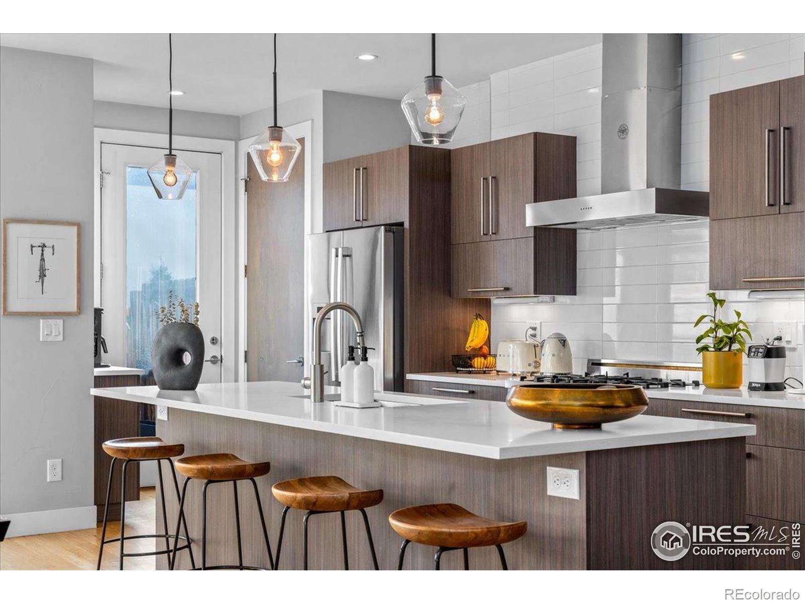 Set in one of Denver's most sought-after neighborhoods, this beautifully maintained modern home offers a thoughtful balance of design, comfort, and walkable city living-just moments from Sloan's Lake, Highland Square, and LoHi's favorite restaurants, cafes, and shops. The extra-wide open floorplan is filled with natural light and designed to feel both inviting and functional. Newly finished warm hardwood floors run throughout the main level, where the living room is anchored by a sleek fireplace and framed by oversized windows. The kitchen is equally impressive, featuring expansive quartz countertops, custom cabinetry, and a high-end appliance suite highlighted by a Bertazzoni Italian 6-burner Pro Range and Bosch appliances-perfect for everyday meals or hosting friends. Upstairs, the bedroom level feels calm and private, with tall ceilings, generous windows, and beautifully finished bathrooms with modern materials and ample storage. A flexible upper level adds even more value, offering space for a home office, workout area, media room, or creative studio. From here, step out onto the rooftop patio and take in wide neighborhood views and the kind of Colorado sunsets that make evenings at home feel special. The backyard provides space to relax, entertain, or enjoy a quiet morning outdoors. Turnkey and well cared for throughout, this home combines elevated finishes, great natural light, and an unbeatable location for easy, refined urban living. With flexible living spaces, exceptional outdoor areas, and a layout that truly lives well, this home is ideal for buyers who want room to grow without sacrificing location or design. Enjoy quick access to downtown, nearby trails, and some of Denver's best dining-all while coming home to a space that feels private, and comfortable.