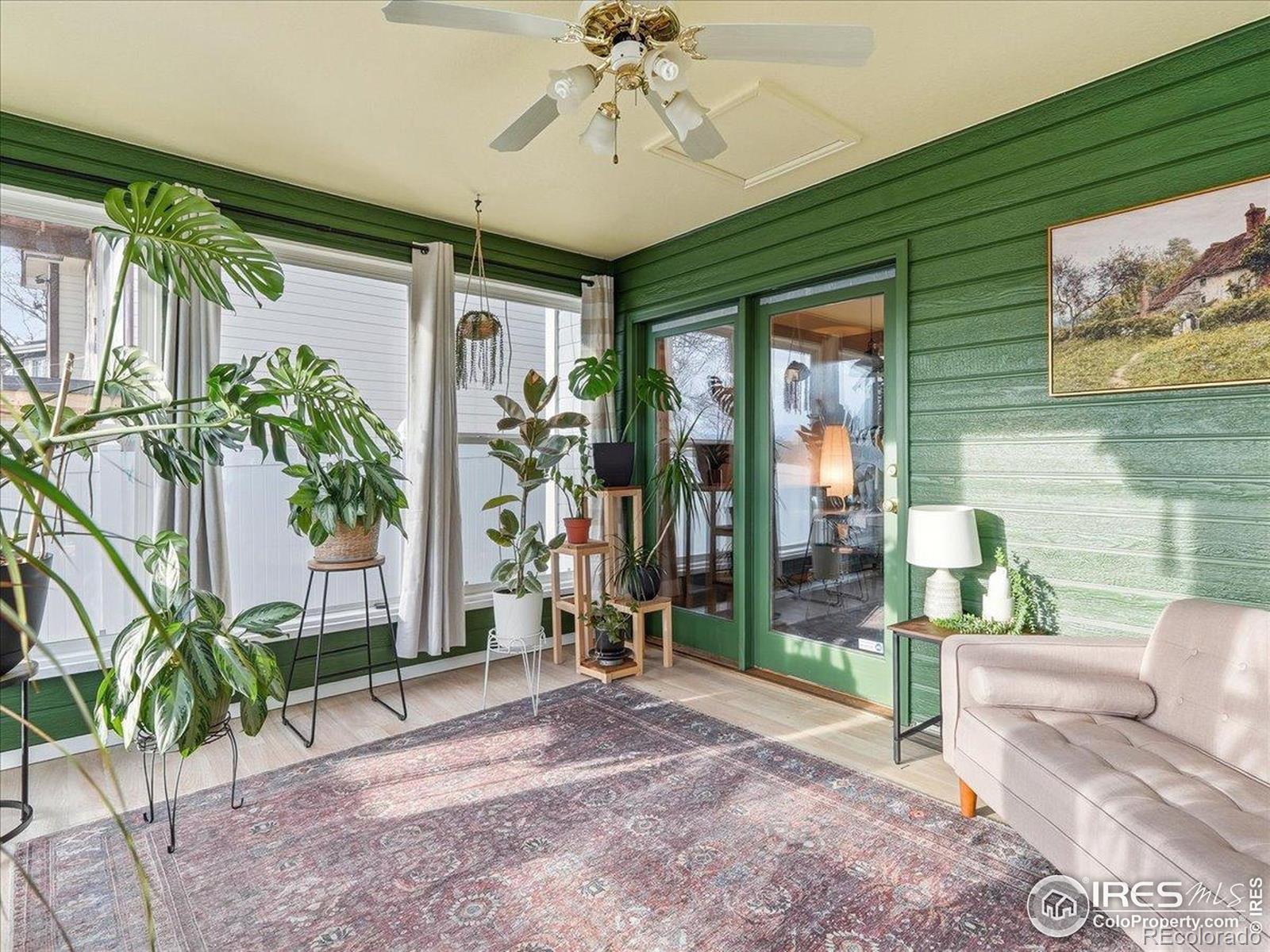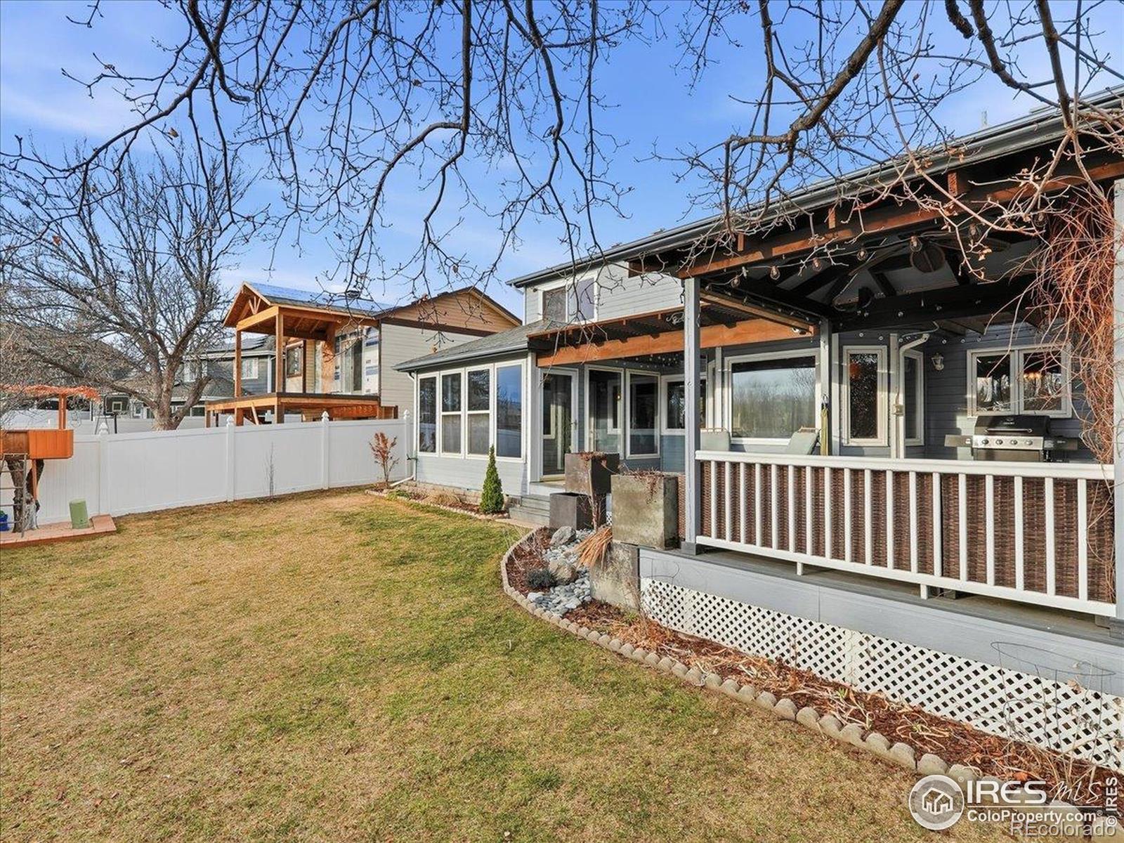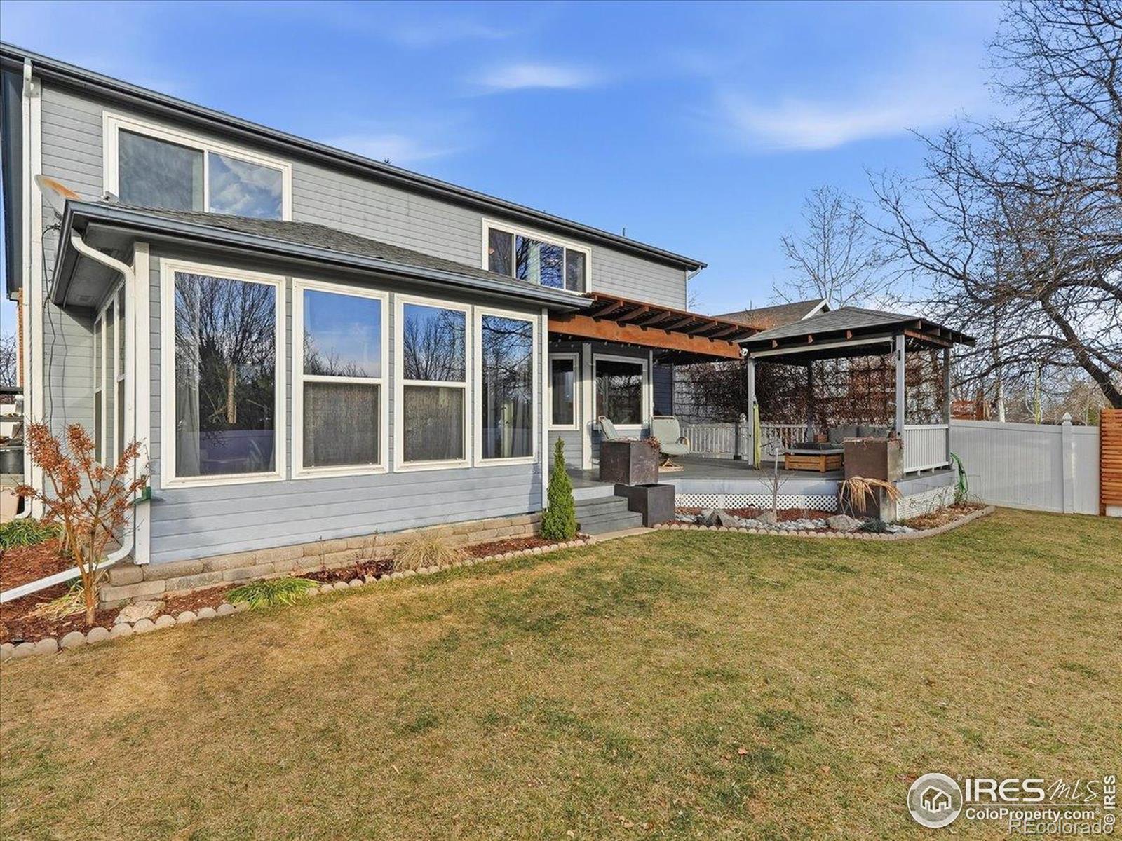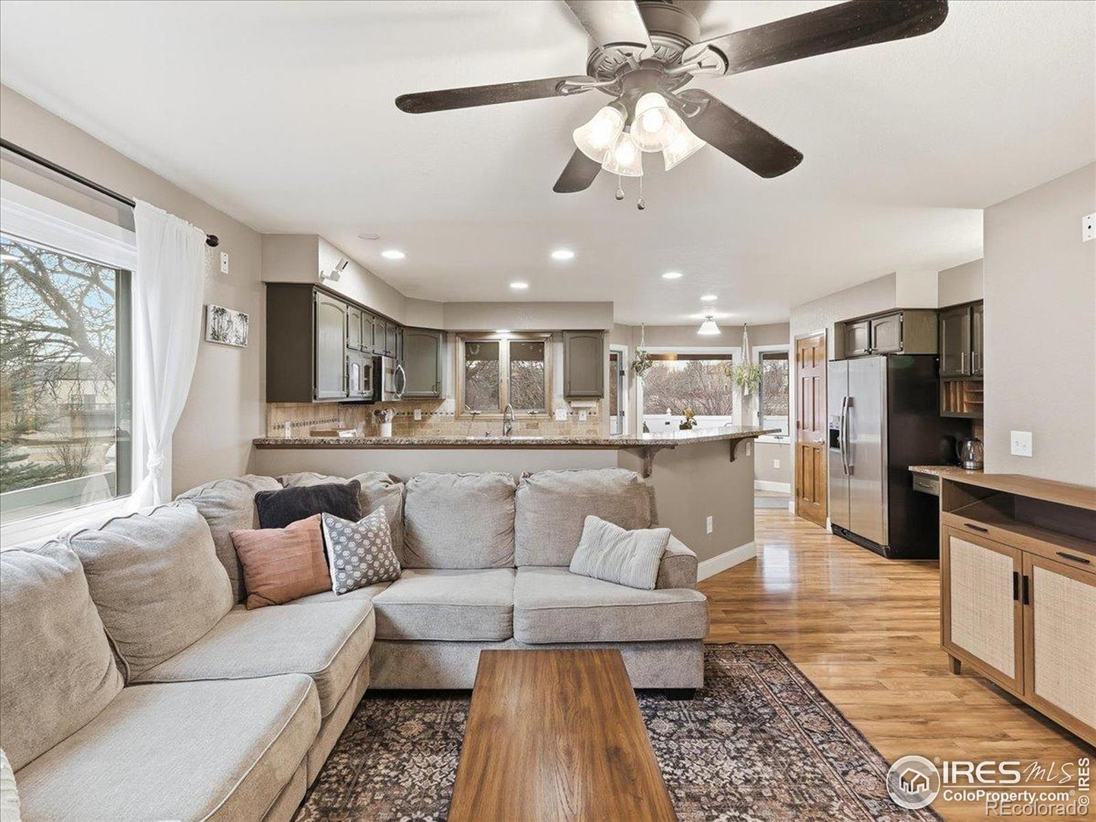 Immaculate 3 bedroom +loft/office in Loveland offers lot of natural light, and thoughtful design throughout. The main level features a large great room, sunroom, living room, kitchen and dining room with vaulted ceilings, and oversized windows.The kitchen is both functional and inviting, with stainless steel appliances and quality granite countertops. Two separate living areas create flexibility for gatherings, quiet evenings, or hosting friends and family.Upstairs, the loft provides additional space that works well as a home office, reading nook, or playroom. The primary suite complete with a spacious five-piece bath.A three-season sunroom extends your living space and makes it easy to enjoy Colorado's changing seasons. The backyard is private and low-maintenance, with vinyl fencing, mature landscaping, and a generous deck. The home backs to open space, offering added privacy and room to breathe.Air conditioning and carpet were replaced in 2021