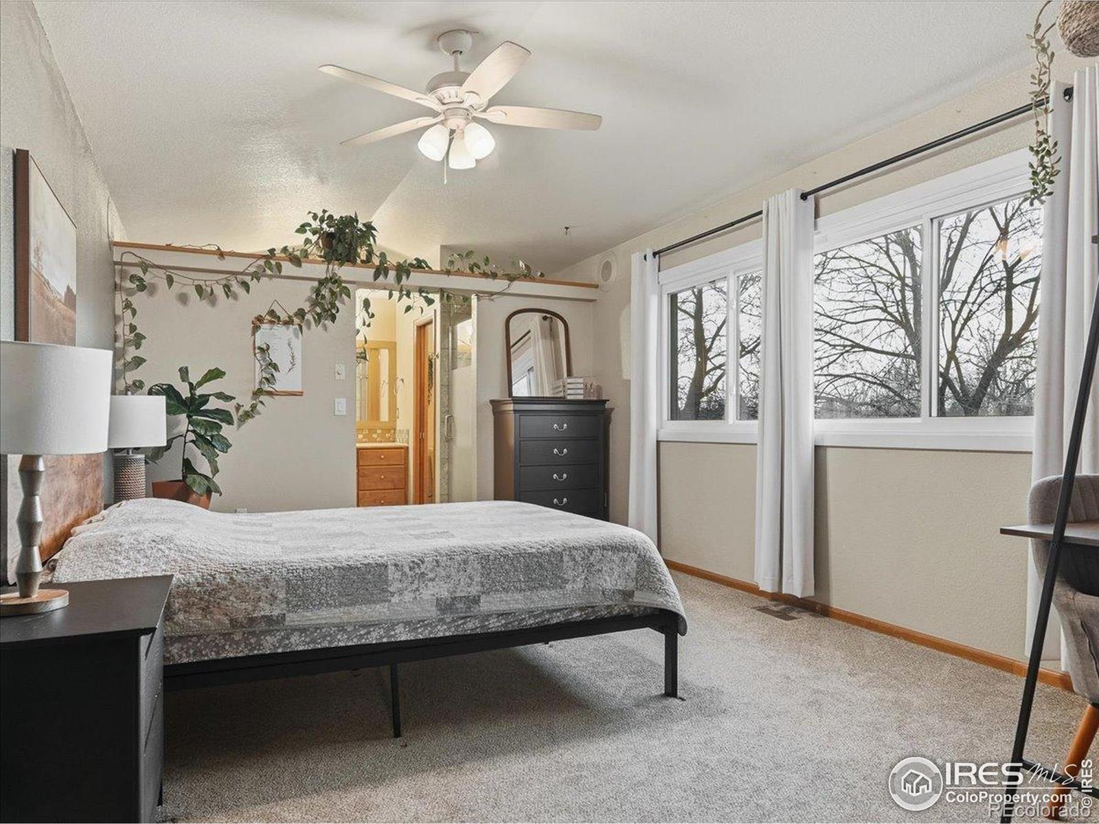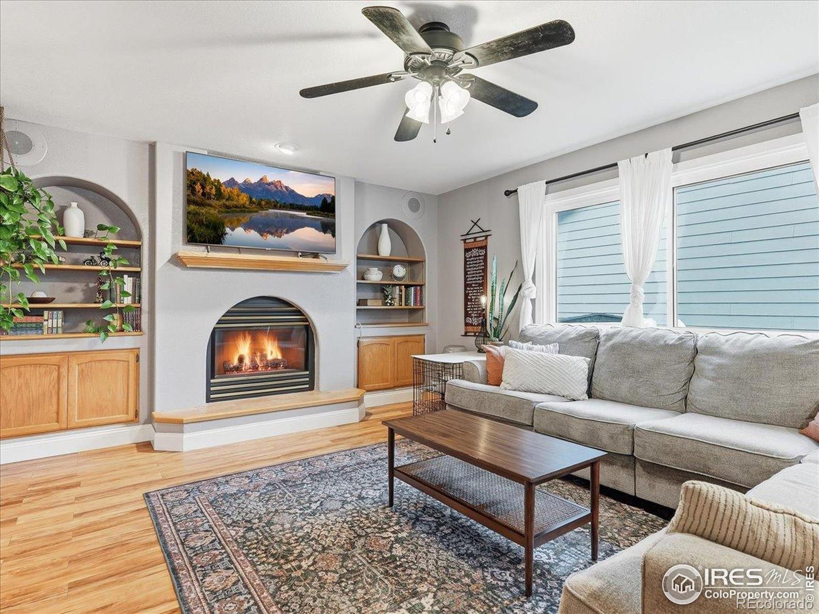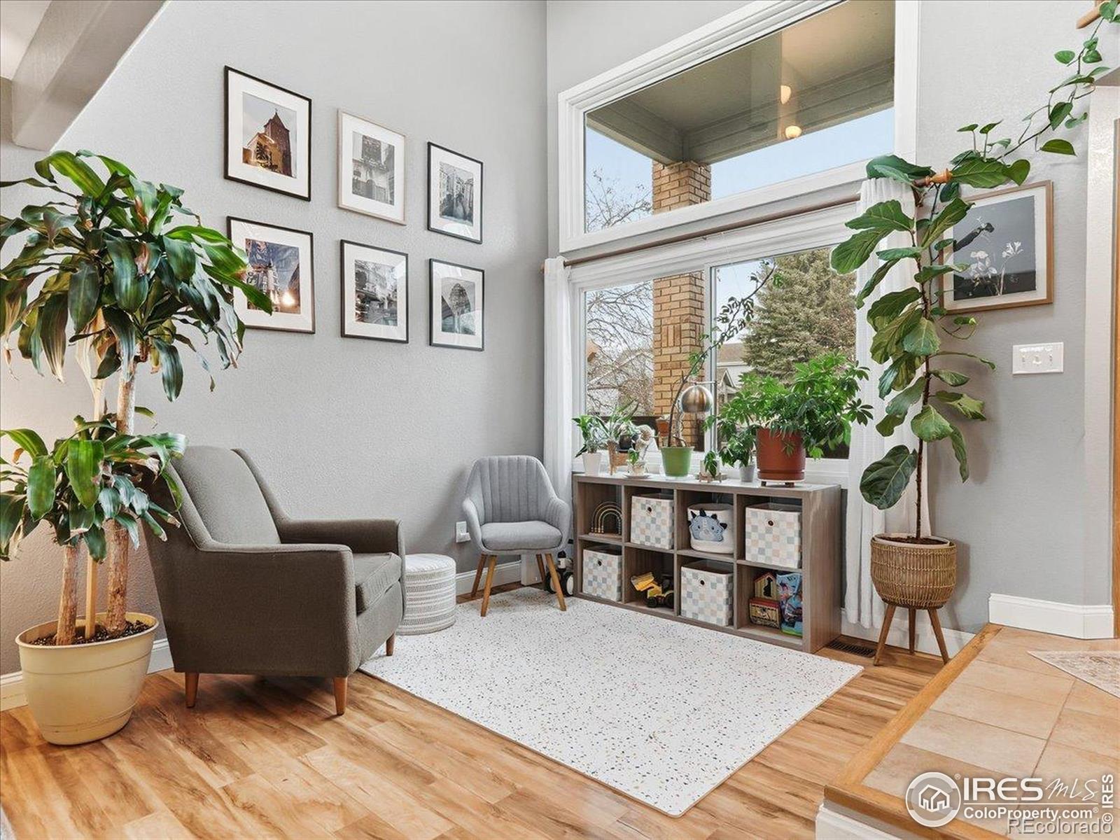 Immaculate 3 bedroom +loft/office in Loveland offers lot of natural light, and thoughtful design throughout. The main level features a large great room, sunroom, living room, kitchen and dining room with vaulted ceilings, and oversized windows.The kitchen is both functional and inviting, with stainless steel appliances and quality granite countertops. Two separate living areas create flexibility for gatherings, quiet evenings, or hosting friends and family.Upstairs, the loft provides additional space that works well as a home office, reading nook, or playroom. The primary suite complete with a spacious five-piece bath.A three-season sunroom extends your living space and makes it easy to enjoy Colorado's changing seasons. The backyard is private and low-maintenance, with vinyl fencing, mature landscaping, and a generous deck. The home backs to open space, offering added privacy and room to breathe.Air conditioning and carpet were replaced in 2021