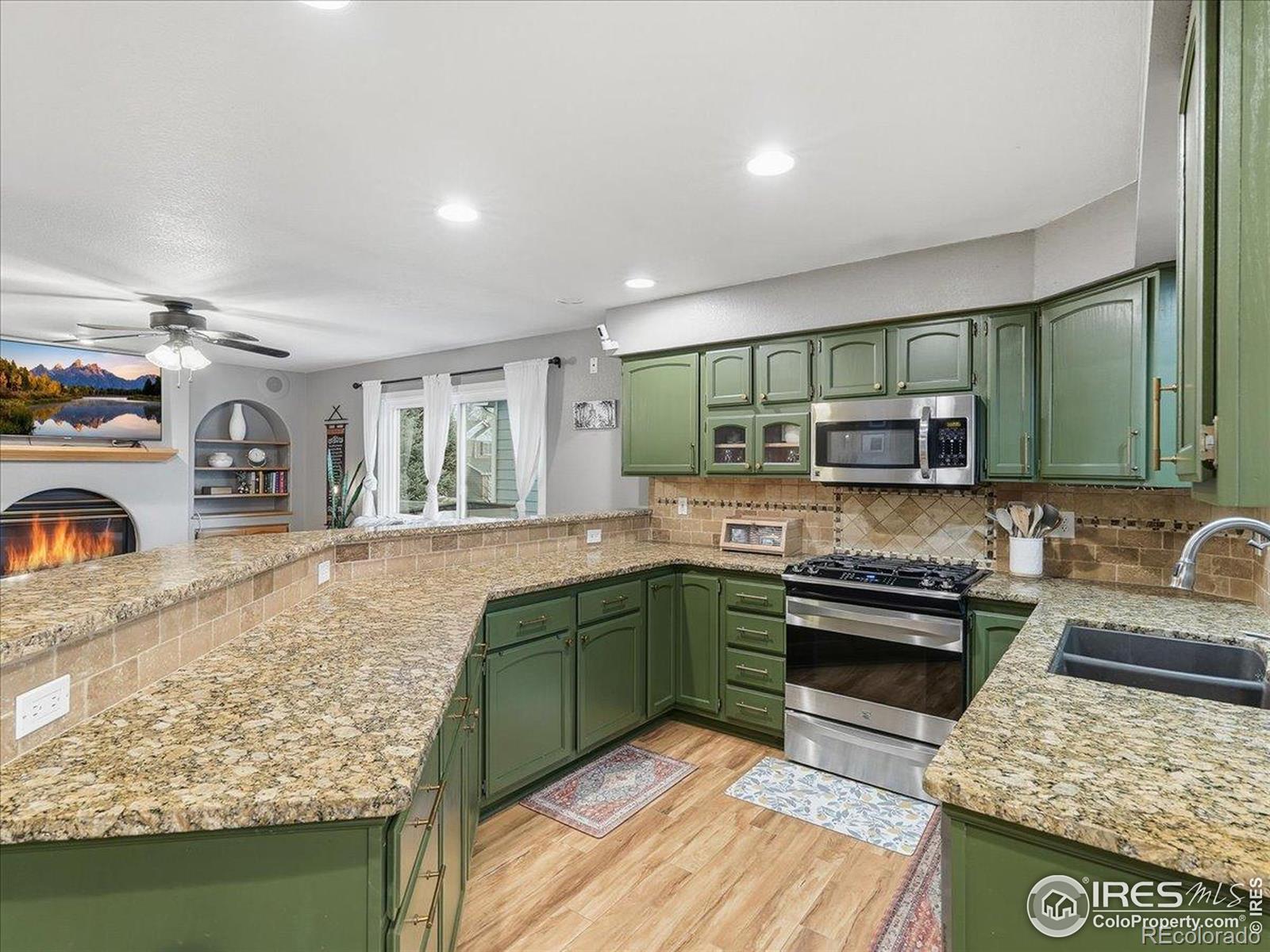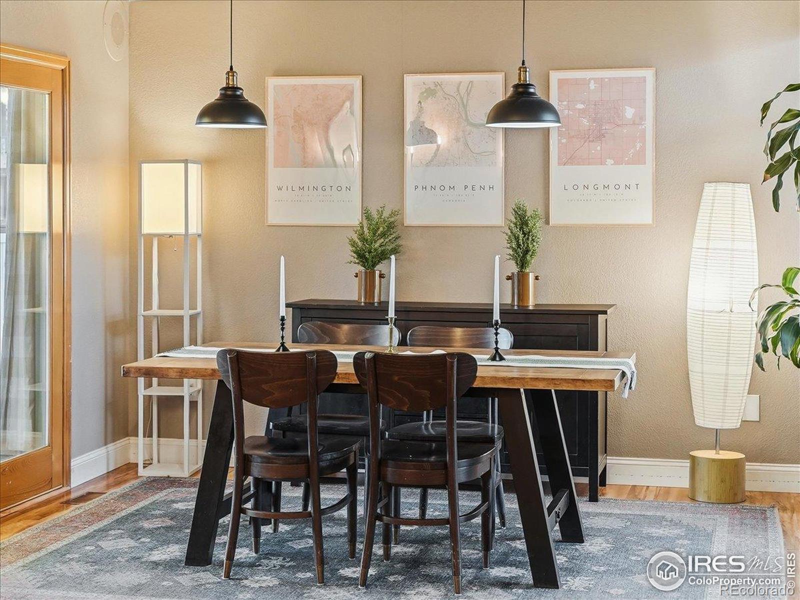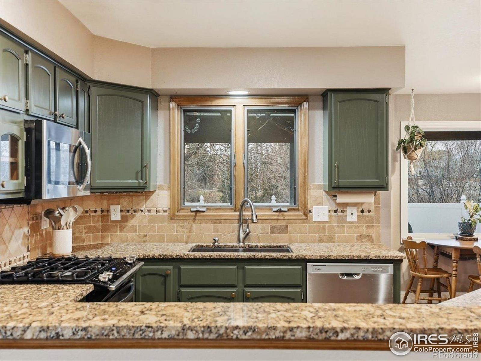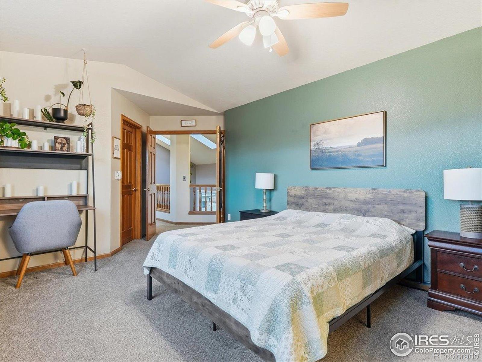 Immaculate 3 bedroom +loft/office in Loveland offers lot of natural light, and thoughtful design throughout. The main level features a large great room, sunroom, living room, kitchen and dining room with vaulted ceilings, and oversized windows.The kitchen is both functional and inviting, with stainless steel appliances and quality granite countertops. Two separate living areas create flexibility for gatherings, quiet evenings, or hosting friends and family.Upstairs, the loft provides additional space that works well as a home office, reading nook, or playroom. The primary suite complete with a spacious five-piece bath.A three-season sunroom extends your living space and makes it easy to enjoy Colorado's changing seasons. The backyard is private and low-maintenance, with vinyl fencing, mature landscaping, and a generous deck. The home backs to open space, offering added privacy and room to breathe.Air conditioning and carpet were replaced in 2021