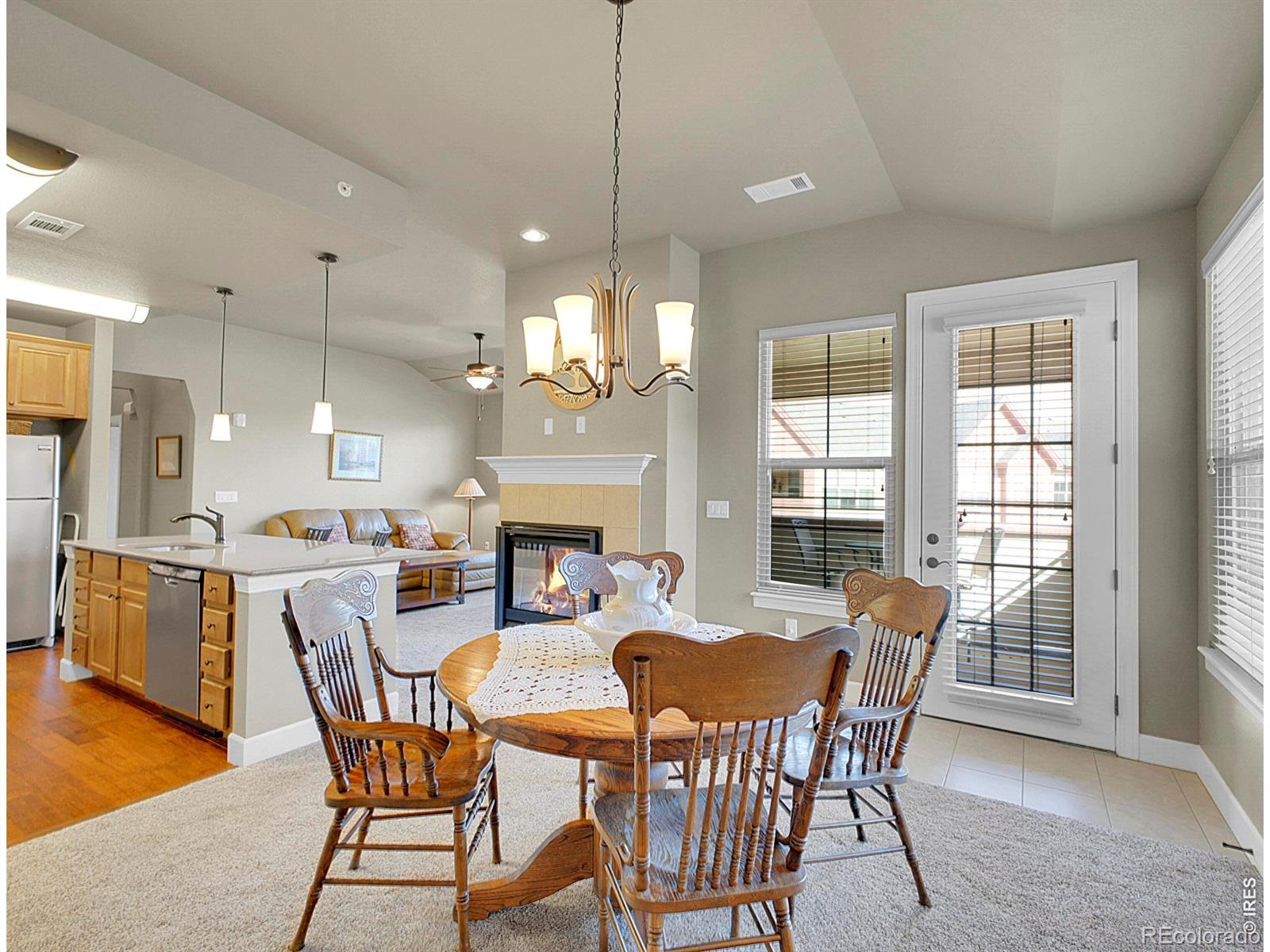 Longmont Corner Residence. Welcome to effortless living in this quiet, secure 60+ community-where comfort, convenience, and connection come together. Ascend the elevator to your corner 2nd-floor retreat, featuring rare covered terrace ideal for relaxing afternoons or morning coffee. Inside, high ceilings and plentiful windows fill the home with natural light. A two-sided gas fireplace gracefully separates the living and dining spaces, creating cozy ambiance throughout. The kitchen offers excellent functionality with an island, bar seating, an electric range, a pantry, and abundant cabinetry. The spacious secondary bedroom enjoys bright, natural light, while the primary suite includes a calming ceiling fan, dual closets (including a walk-in), and a full ensuite bath. With low-maintenance living, a 1-car garage, and unbeatable access to nearby pickleball courts and a beautiful neighborhood park, this is the ultimate lock-and-leave lifestyle-without compromising comfort or community.