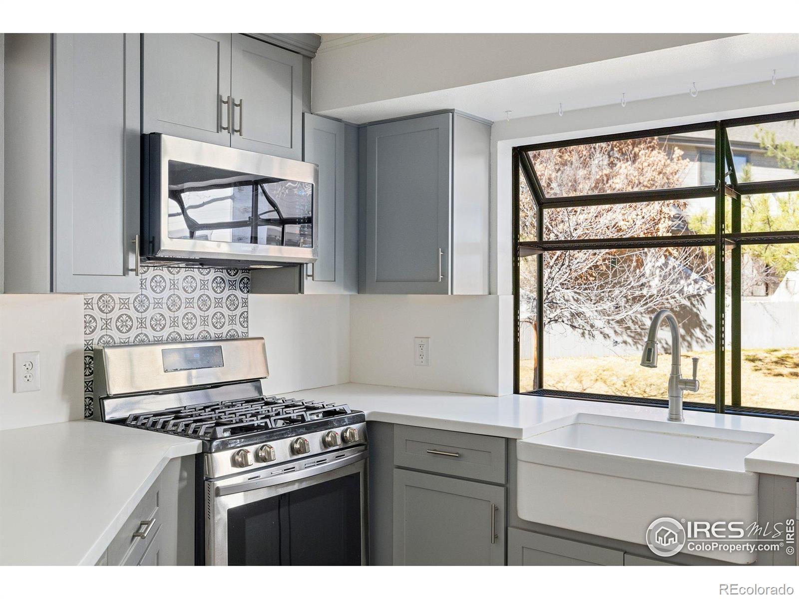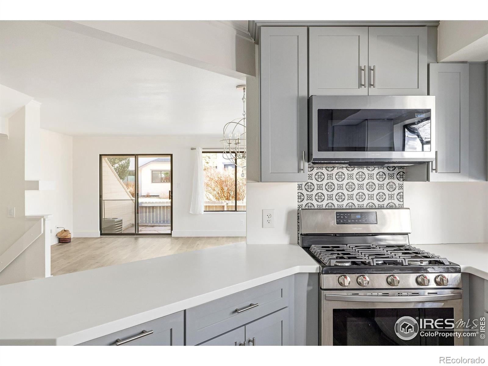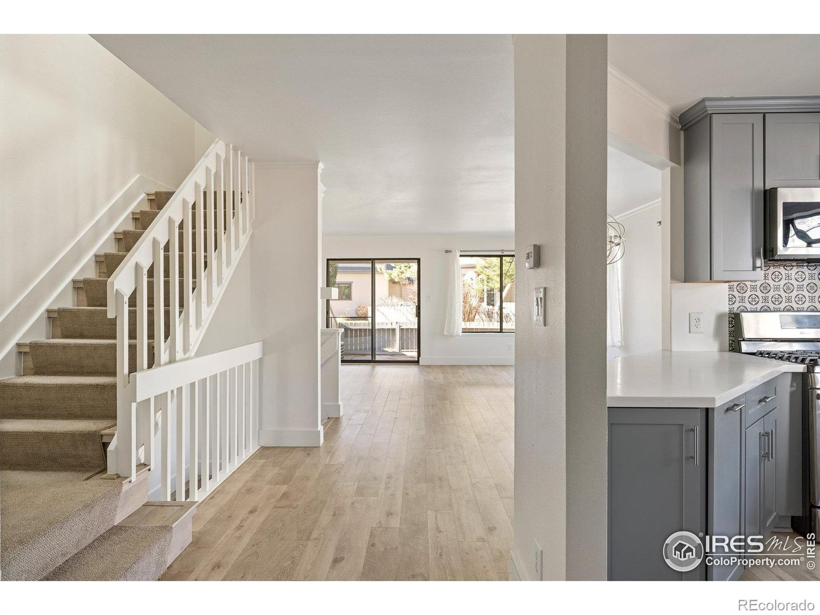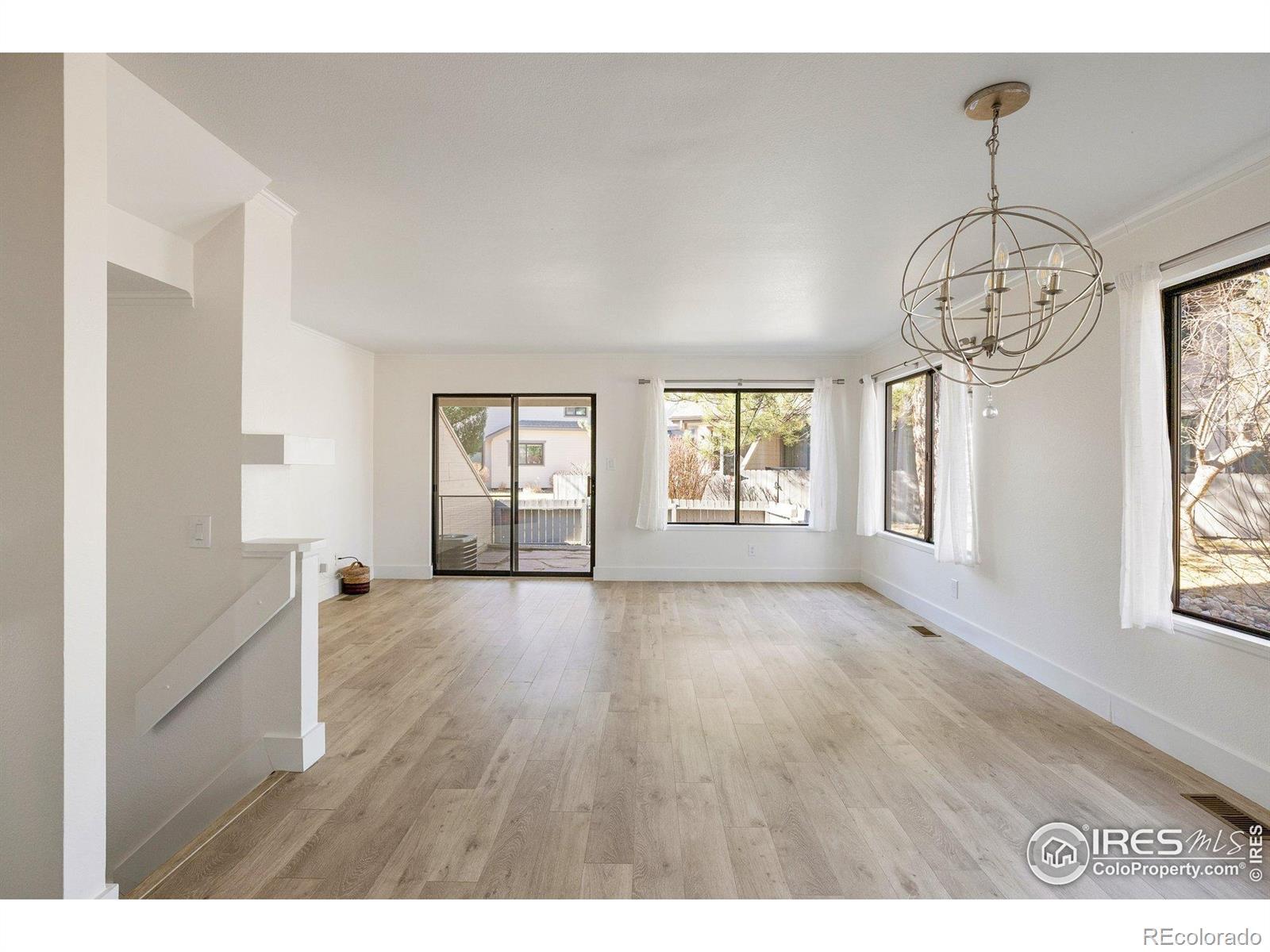 Welcome home! FHA and VA approved. $100K in modern, fresh, and classic renovations. Coveted Huntington Point corner unit is also the largest in square footage at 2073 sq feet. Amazing location-this spacious, low-maintenance townhome features a flowing, open floor plan which is bright, comfortable, and welcoming. Just steps from Gunbarrel Commons Park and trail to Twin Lakes, it is nestled in a quiet, peaceful neighborhood with beautiful landscaping and mature trees. Modern cabinetry, updated lighting, and stylish fixtures complement the stainless steel appliances, deep farmhouse sink, gas stove, convenient electric fireplace, with modern baseboards and crown molding throughout. Attractive wide-plank laminate flooring, runner carpet on the stairs, plush carpet in the bedrooms, and a large finished basement.This unique home offers a walk-in closet and plenty of storage space. Large windows and skylights provide an abundance of natural light. Enjoy the flagstone patio-your own beautiful, private outdoor space.
