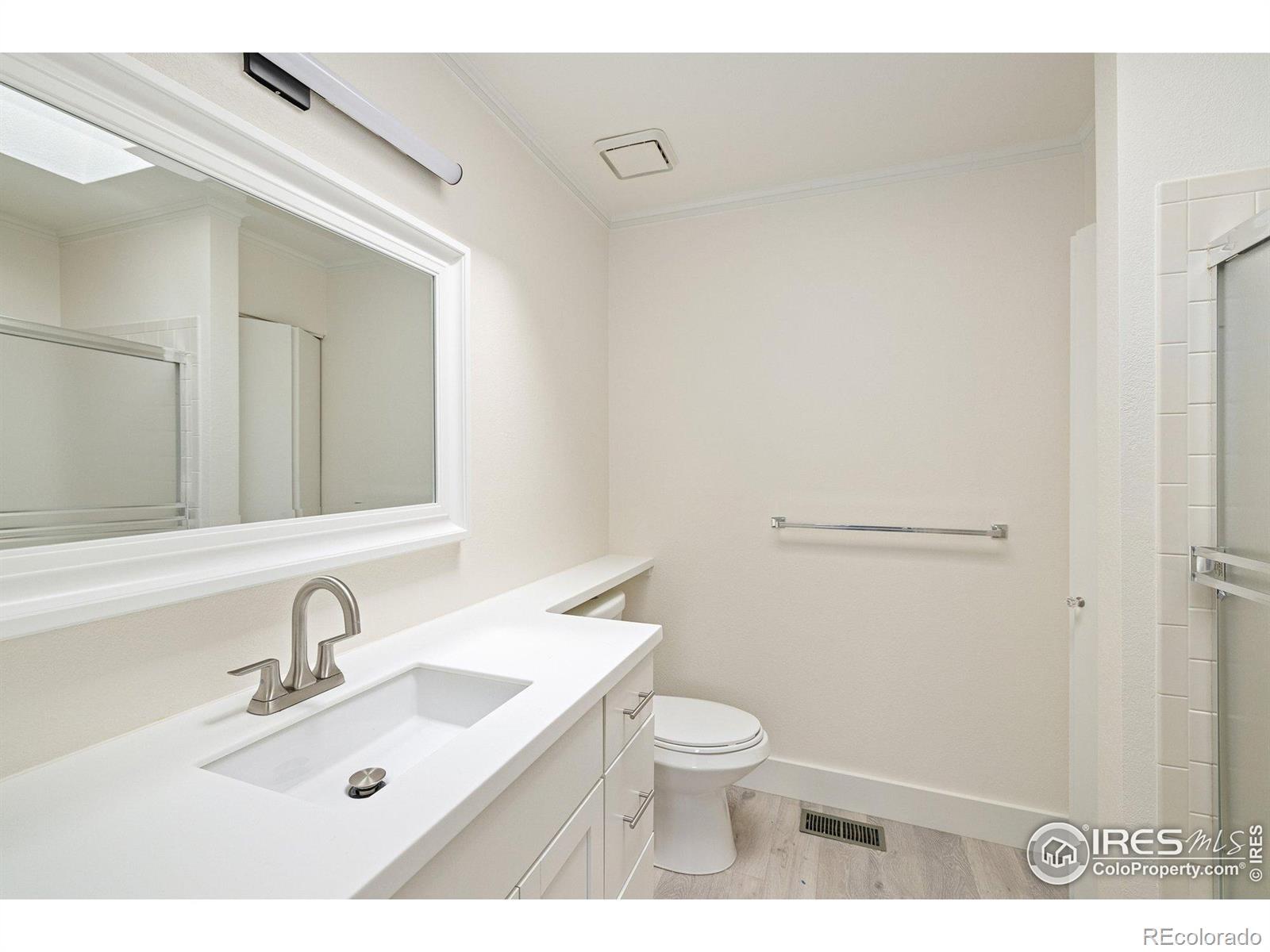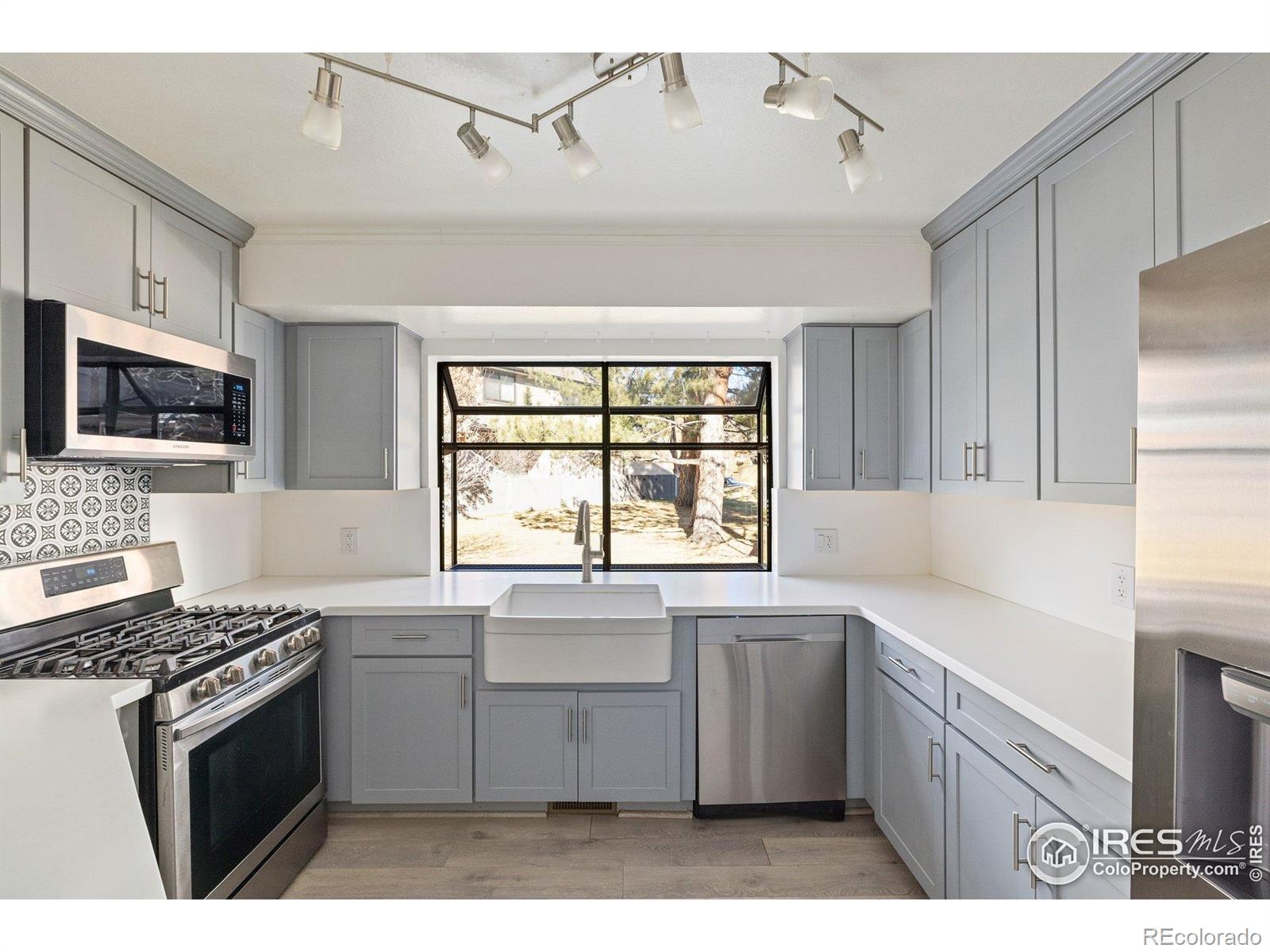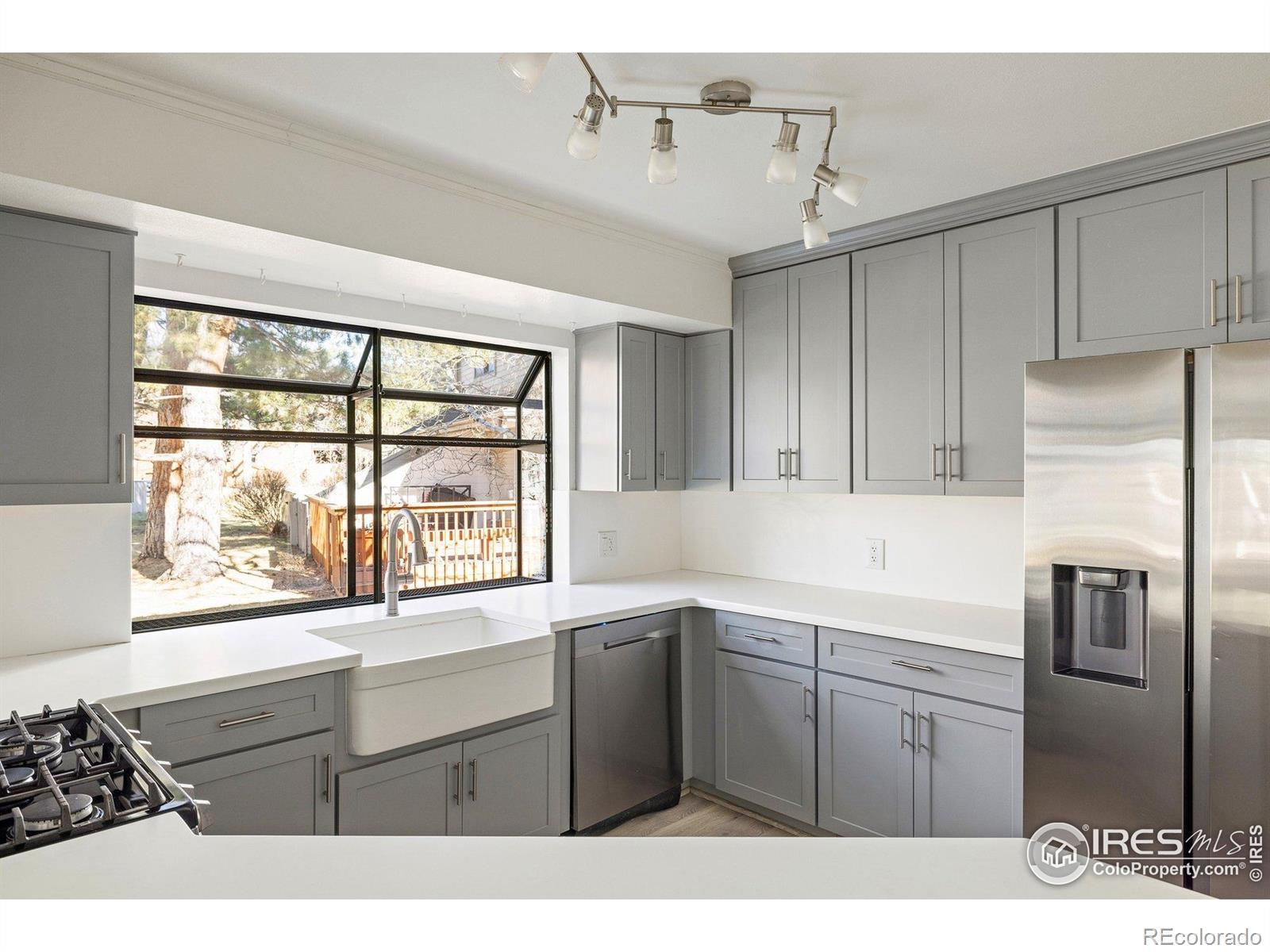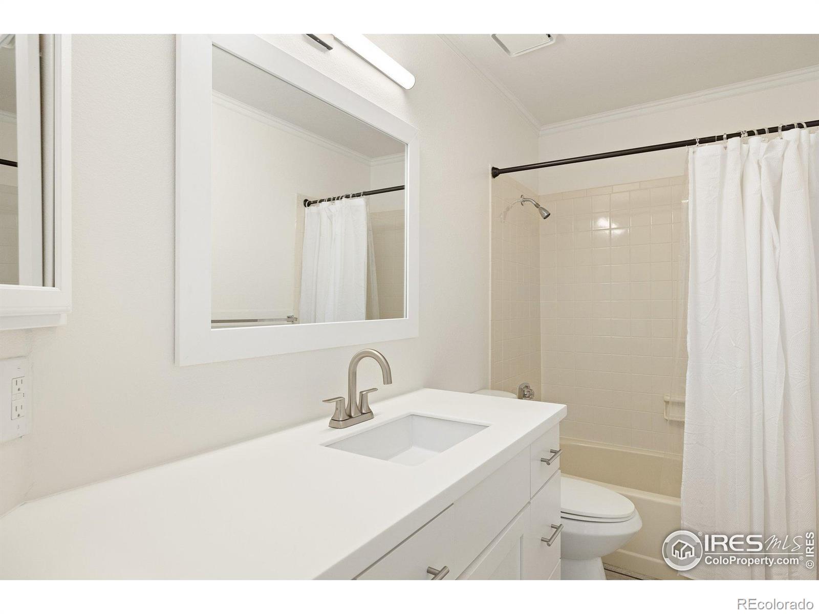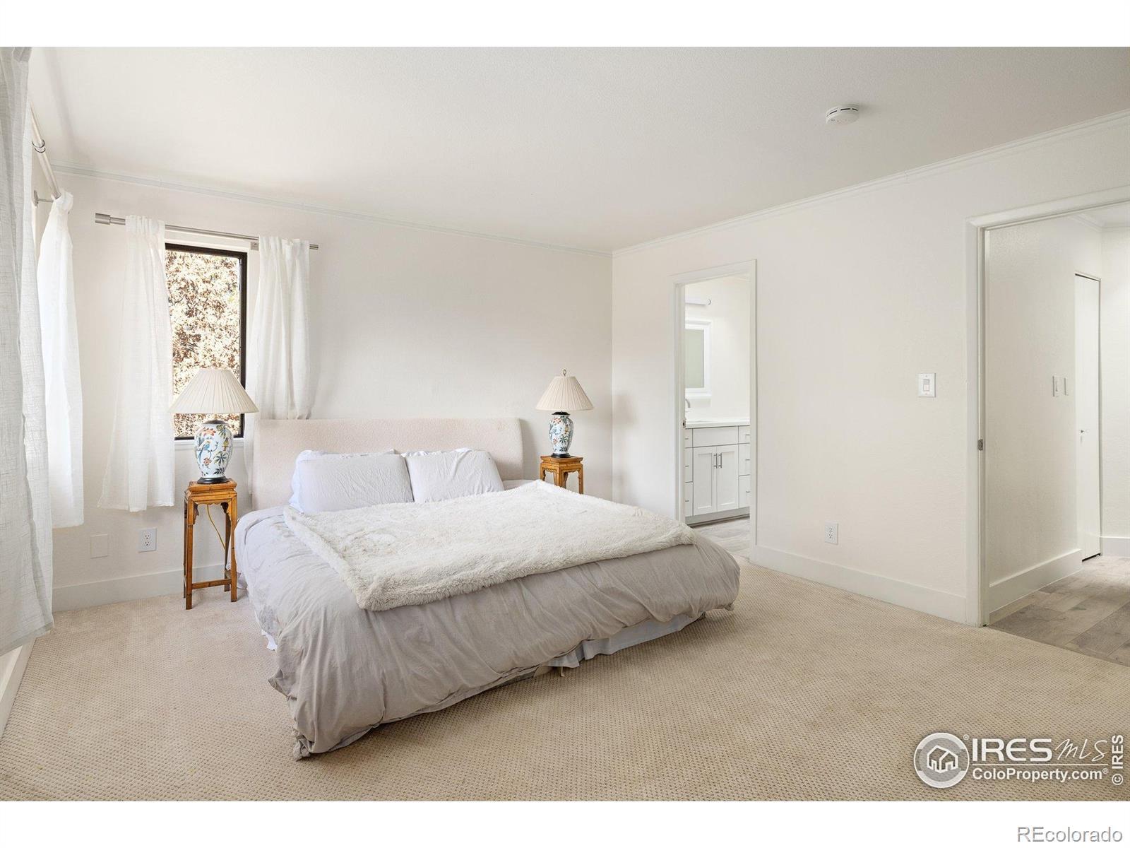 Welcome home! FHA and VA approved. $100K in modern, fresh, and classic renovations. Coveted Huntington Point corner unit is also the largest in square footage at 2073 sq feet. Amazing location-this spacious, low-maintenance townhome features a flowing, open floor plan which is bright, comfortable, and welcoming. Just steps from Gunbarrel Commons Park and trail to Twin Lakes, it is nestled in a quiet, peaceful neighborhood with beautiful landscaping and mature trees. Modern cabinetry, updated lighting, and stylish fixtures complement the stainless steel appliances, deep farmhouse sink, gas stove, convenient electric fireplace, with modern baseboards and crown molding throughout. Attractive wide-plank laminate flooring, runner carpet on the stairs, plush carpet in the bedrooms, and a large finished basement.This unique home offers a walk-in closet and plenty of storage space. Large windows and skylights provide an abundance of natural light. Enjoy the flagstone patio-your own beautiful, private outdoor space.