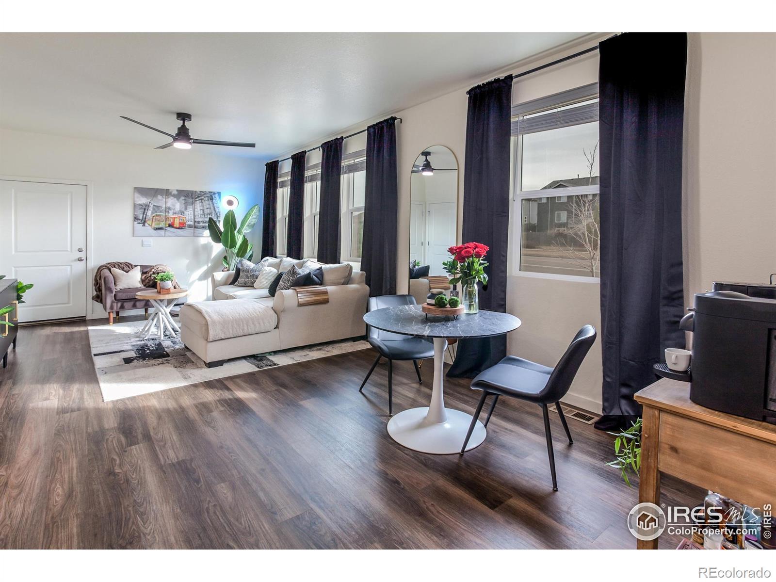 Welcome to 7001 Todd Ct! This immaculately maintained end unit is rare in that it enjoys stunning views of the Rocky Mountains off of the front. As you walk past the covered front porch into the unit you will notice the LVP flooring from end to end of the main level. The modern kitchen includes a functional eat-in island, stainless appliances including a gas range, granite counter tops, and an organized pantry. The dining and living room spaces blend together seamlessly giving the main level an open and inviting feel. Upstairs you will find a convenient loft space, two guest bedrooms with a 3/4 guest bathroom and the primary bedroom ensuite with 3 windows for tons of natural light, a full primary bathroom with a thoughtful design and a walk-in closet. The laundry room is located outside of the bedrooms for ease and convenience. This property includes an attached 2 car garage as well as a xeriscape side yard which is an excellent feature for those of you with pets.