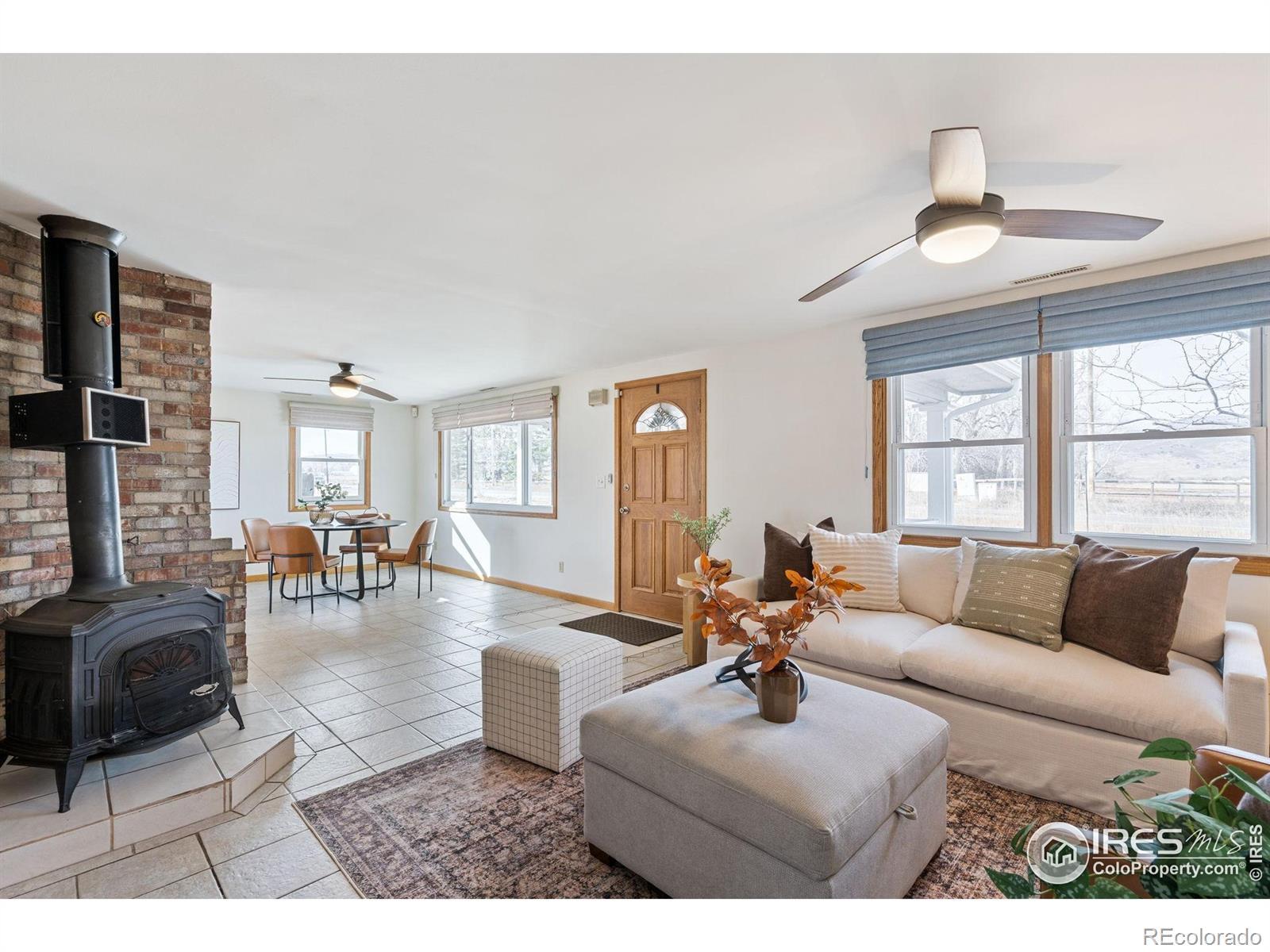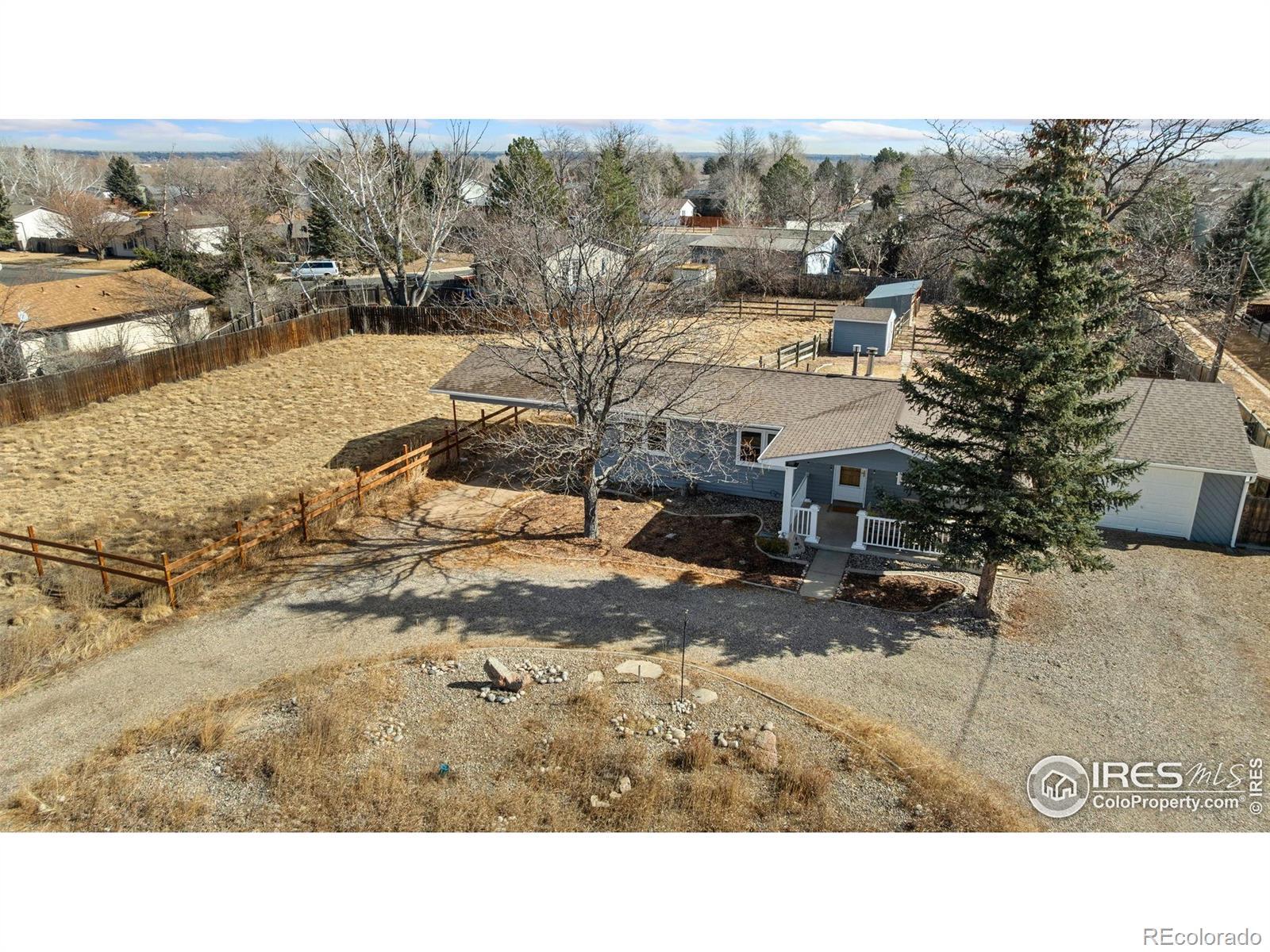 HARD-TO FIND NW Fort Collins small acreage with unobstructed, forever foothill views! This updated 2-bedroom, 1-bath home sits on .62 acres. The property features a fenced pasture with loafing shed, established lawn, separate garden area with irrigated raised beds and chicken coop-ideal for a mini homestead or hobby farm. Mature locust tree provides shade over the expansive back deck & lawn. Chase the sun with an East facing morning deck and West facing evening patio with stunning views. Reservoir Ridge Natural area is across the street, along with a conservation easement that will protect the Western sightline. The circle drive, carport, and detached single-car garage provide ample parking. Inside, the spacious kitchen showcases high-end cabinetry, abundant storage, granite countertops, stainless steel appliances, and new hardwood flooring. A bright dining area connects seamlessly to the cozy living room with wood-burning stove. Bedrooms feature new hardwood floors and the interior has been freshly painted throughout. The bathroom offers matching high-end cabinetry and a new tub and tile surround. Major updates include a newer water heater and newer roof for added peace of mind. Architectural drawings by Tomlinson Designs-valued at $10,000 and ready for permitting-are included, providing the opportunity to enclose the carport and add a primary suite. Best of both worlds with a rural foothill setting, while only 10 min to Old town and 3 minutes to the town of Laporte (Swing Station & Me Oh My Pie). Reservoir Ridge with trails winding along the foothills and up to Horsetooth is across the street, Lions Open Space & the Poudre River Trail access is 2min away, and Bingham Hill road is also just beyond the Overland bend. This location is ideal for those seeking outdoor adventure and room to breathe-without sacrificing proximity to town. Zoned for one horse.