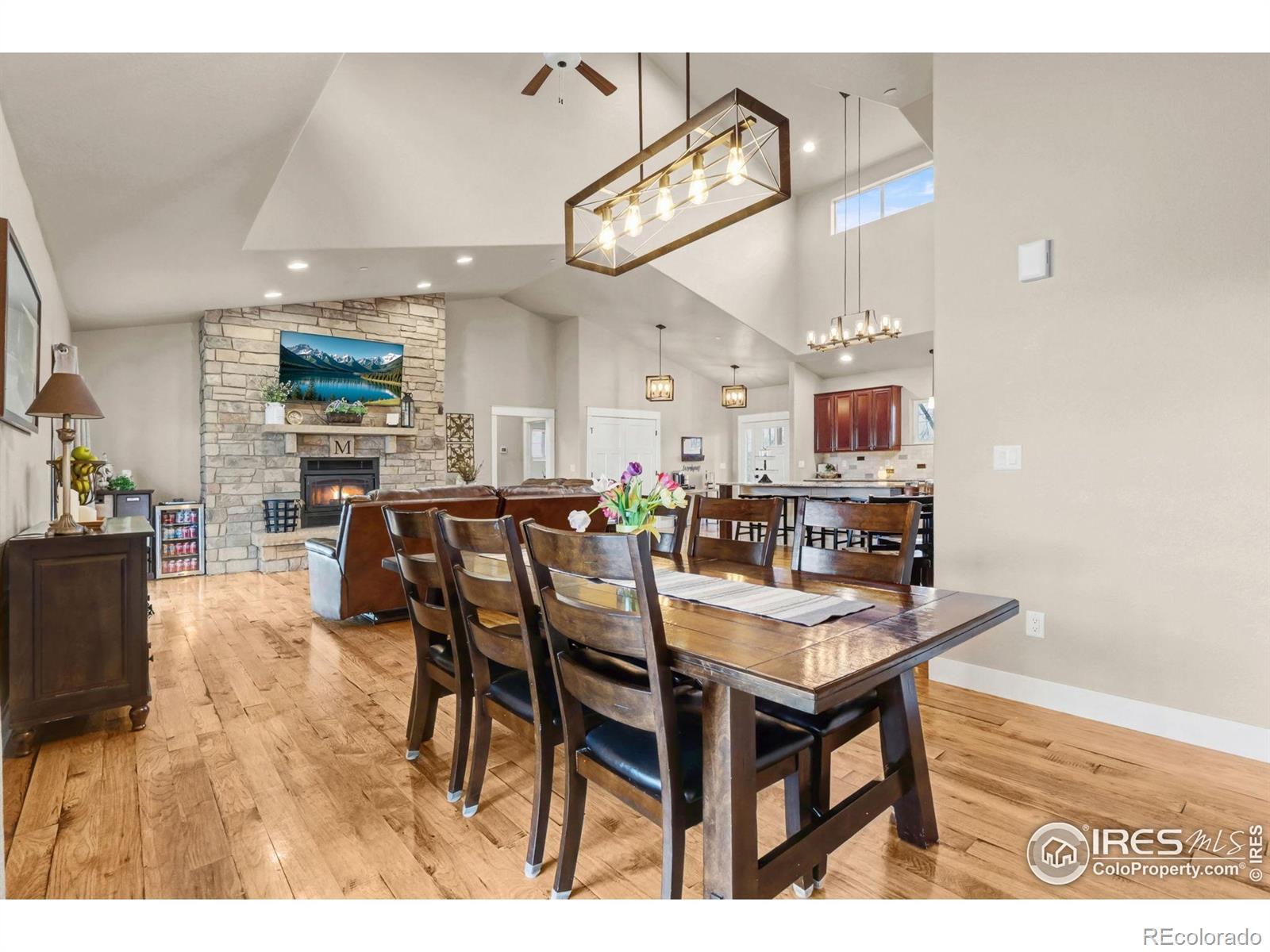 Welcome to 939 W County Road 74 in Wellington - a semi-custom home situated on 3.36 acres with expansive mountain views and a peaceful rural setting, conveniently located approximately 15 minutes from Wellington and about 20 minutes from downtown Fort Collins. The covered front porch provides a welcoming entrance into a home filled with natural light and thoughtful design. The main level features a wide-open floor plan with soaring ceilings throughout the kitchen, dining area, and family room, creating a bright and spacious atmosphere. The kitchen is well-appointed with a large island, stainless steel appliances, and a gas range, offering generous space for meal preparation and gathering. The dining area flows seamlessly from the kitchen, and the family room centers around a beautiful gas fireplace. A barn door off the kitchen leads to a combined mudroom and laundry room, which also offers a separate entrance from the covered front porch for added convenience. The primary bedroom is located on the main level and includes sliding glass doors that open to the covered back patio. The en-suite bathroom features a soaking tub, a large walk-in shower with built-in seating, and a spacious walk-in closet. Two additional bedrooms and a full bathroom complete the main floor. Upstairs, two additional bedrooms are connected by a Jack-and-Jill bathroom, providing flexible living arrangements. The backyard includes a large patio, partially covered, with an amazing built-in kitchen and gas fire pit. The outdoor spaces are positioned to take advantage of the surrounding mountain views and open landscape. An oversized three-car garage offers ample room for vehicles and storage. This home combines modern features, open space, and convenient access to nearby amenities in a desirable Northern Colorado location.