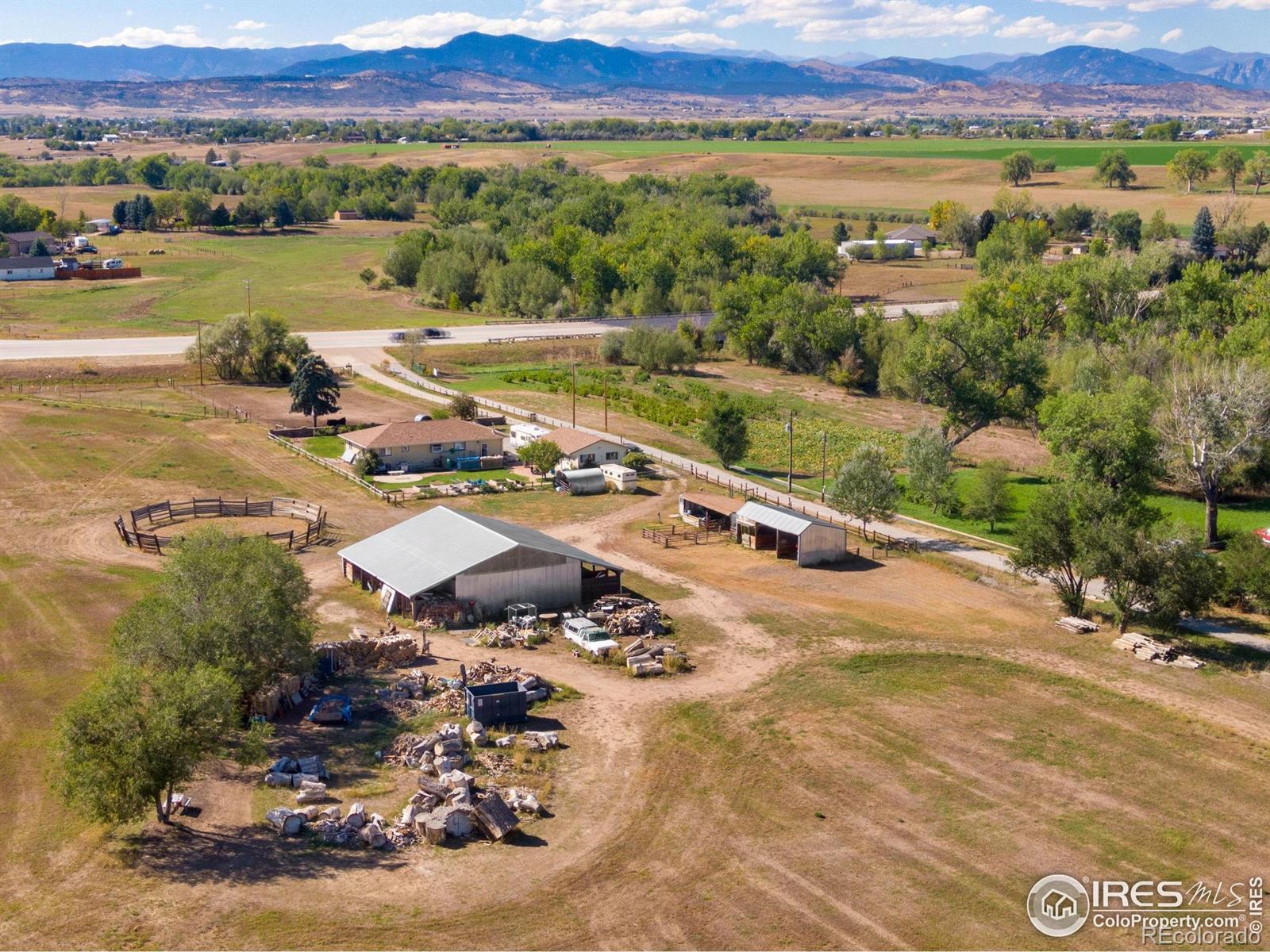 This 18+ acre property is a developer's dream, offering unparalleled visibility along the bustling Highway 287 corridor and located just outside the rapidly expanding town of Berthoud. With flat, easily accessible terrain, multiple access points and outside of floodplains, the possibilities for development are endless, whether you envision commercial, residential, or mixed-use potential. The property includes 5 shares of Old Ish Ditch water for valuable water rights, a 3-bedroom, 2-bathroom home with an oversized 2-car garage, a spacious 2,000+ square foot barn perfect for storage or additional development, and multiple loafing sheds. Take advantage of the fantastic mountain views, strategic location, and the booming growth in the area. This property offers a unique opportunity for developers, builders, or investors to create something truly special in a prime location with exceptional visibility. Don't miss out on this rare chance to own a large parcel with so much potential!