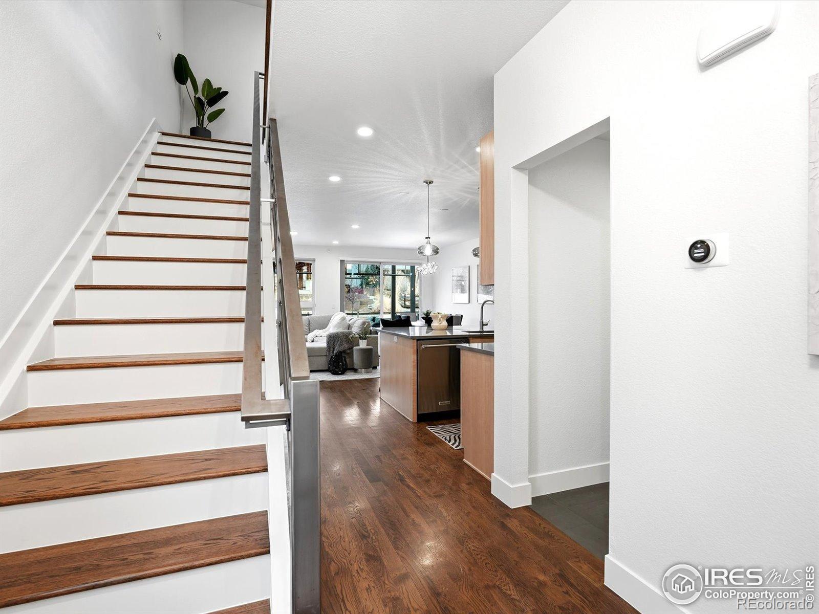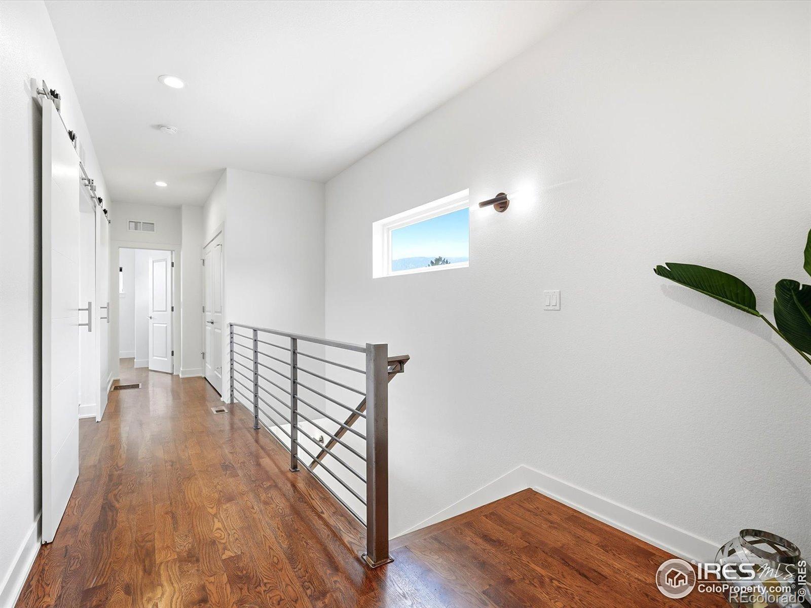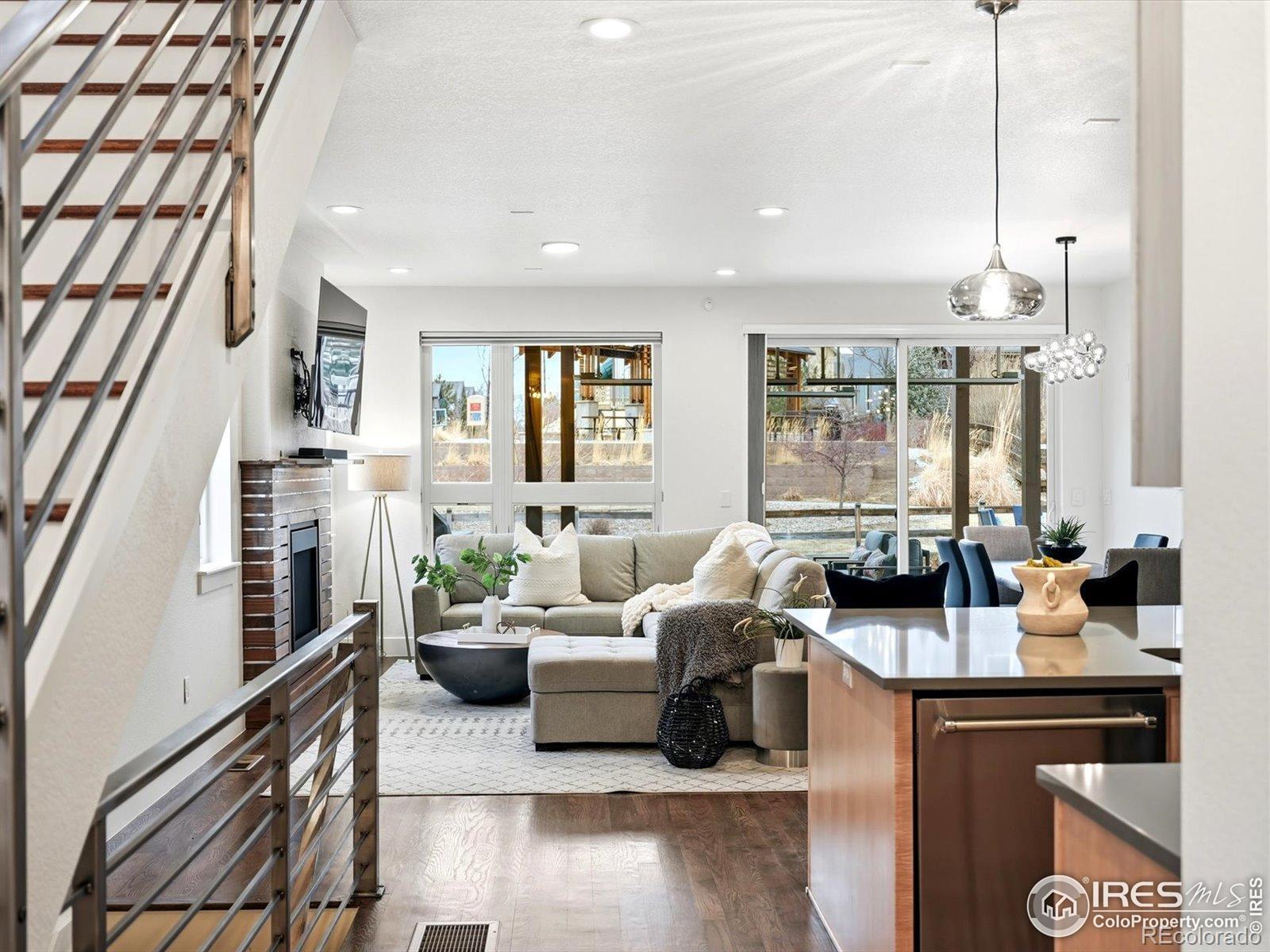 Welcome to 835 Yellow Pine, nestled into the sought-after Trailcrossing community in the heart of North Boulder. South-facing front & views stretching from the iconic Flatirons & foothills to the eastern plains, this home captures NoBo living at its finest. The expansive rooftop deck is a true showstopper, a private oasis complete w/ hot tub & privacy surround, perfect for sunrise coffee or sunset gatherings. Outdoor living continues w/ a covered back patio featuring heat lamps for year-round enjoyment, plus an addnl. backyard deck w/ firepit - all surrounded by a large grassy yard w/ clean landscaping & backing to the private neighborhood park. Inside, this chic modern space features a custom metal railing, brand-new interior & exterior paint, designer lighting, & wood floors, creating a warm aesthetic. The bright, open main level offers dining, kitchen, & living areas that flow seamlessly to the covered patio, blending indoor/outdoor living w/ ease & fabulous natural light, anchored by a custom wood & metal fireplace wall that adds character. The main floor offers exceptional functionality w/ a private office that doubles as a bedroom, complete w/ custom Murphy bed & ensuite bath. Upstairs, the primary suite is a peaceful retreat featuring a luxurious 5-piece ensuite, walk-in closet, & private rooftop access - ideal for entertaining or relaxing. Two addnl. rooms share a Jack-and-Jill bath, including one w/ dual barn doors - perfect as office, guest suite, or flex space. The finished lower level expands your options w/ an oversized family room, bar, sink, & refrigerator, plus addnl. bedroom & bath - ideal for guests, multi-gen living, or recreation. Steps from Wonderland Lake, trails, & NoBo favorites like Bellota, Moxie Bread, Dagabi, & Lucky's Market, this home delivers the ultimate NOBO lifestyle. Experience 835 Yellow Pine, where views, design, & location come together beautifully.