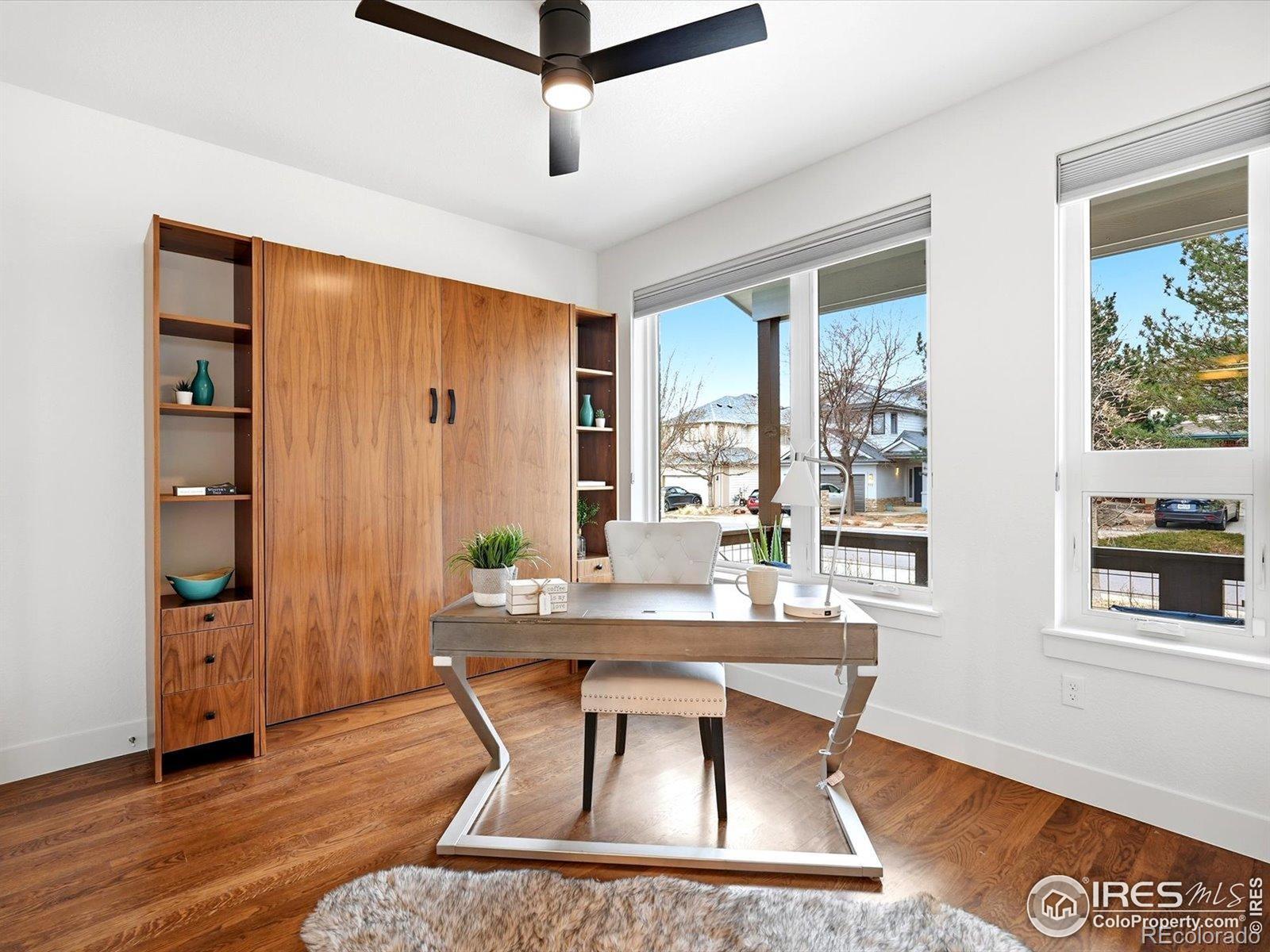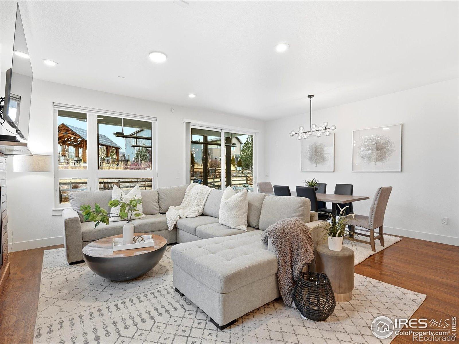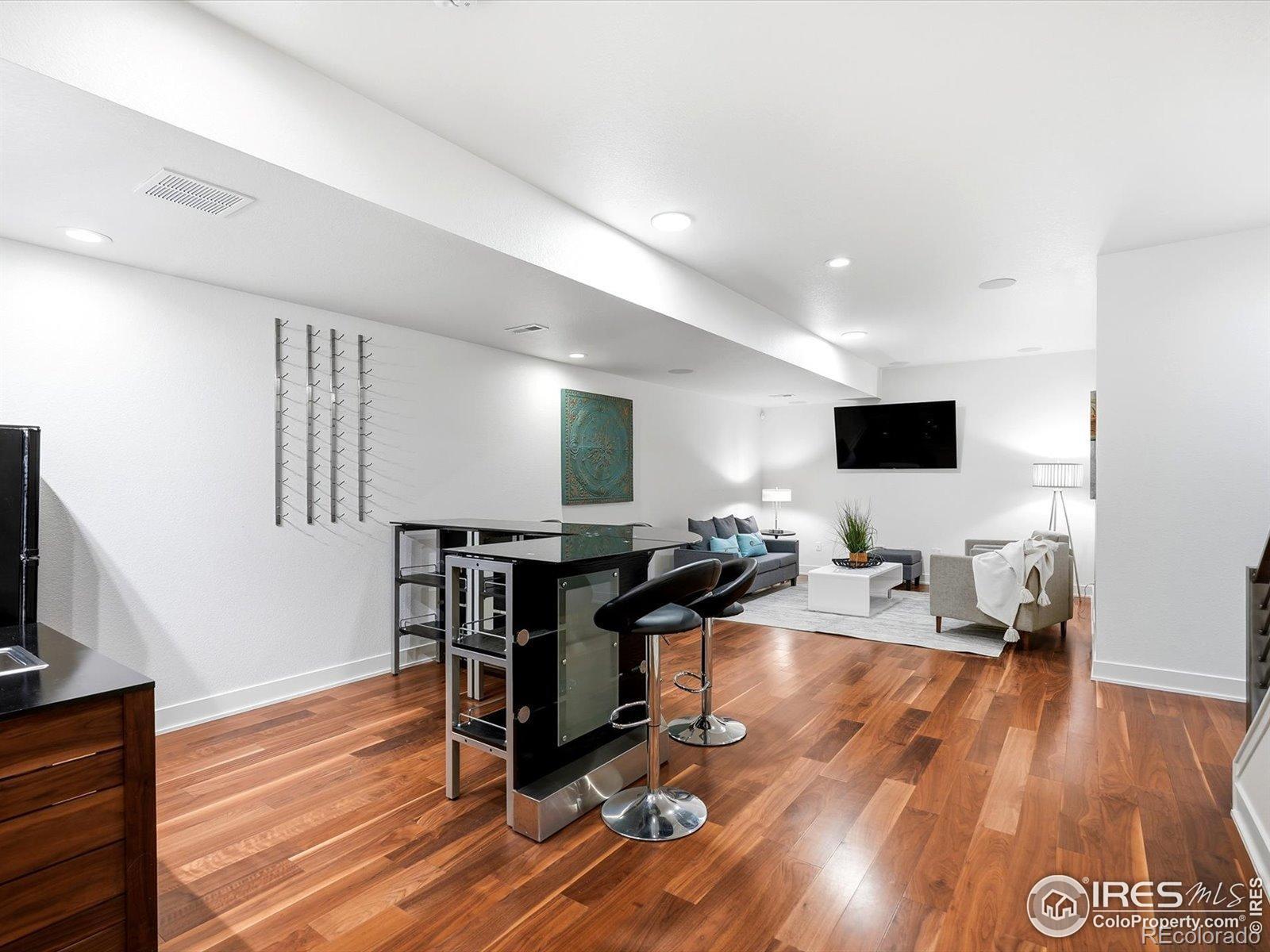 Welcome to 835 Yellow Pine, nestled into the sought-after Trailcrossing community in the heart of North Boulder. South-facing front & views stretching from the iconic Flatirons & foothills to the eastern plains, this home captures NoBo living at its finest. The expansive rooftop deck is a true showstopper, a private oasis complete w/ hot tub & privacy surround, perfect for sunrise coffee or sunset gatherings. Outdoor living continues w/ a covered back patio featuring heat lamps for year-round enjoyment, plus an addnl. backyard deck w/ firepit - all surrounded by a large grassy yard w/ clean landscaping & backing to the private neighborhood park. Inside, this chic modern space features a custom metal railing, brand-new interior & exterior paint, designer lighting, & wood floors, creating a warm aesthetic. The bright, open main level offers dining, kitchen, & living areas that flow seamlessly to the covered patio, blending indoor/outdoor living w/ ease & fabulous natural light, anchored by a custom wood & metal fireplace wall that adds character. The main floor offers exceptional functionality w/ a private office that doubles as a bedroom, complete w/ custom Murphy bed & ensuite bath. Upstairs, the primary suite is a peaceful retreat featuring a luxurious 5-piece ensuite, walk-in closet, & private rooftop access - ideal for entertaining or relaxing. Two addnl. rooms share a Jack-and-Jill bath, including one w/ dual barn doors - perfect as office, guest suite, or flex space. The finished lower level expands your options w/ an oversized family room, bar, sink, & refrigerator, plus addnl. bedroom & bath - ideal for guests, multi-gen living, or recreation. Steps from Wonderland Lake, trails, & NoBo favorites like Bellota, Moxie Bread, Dagabi, & Lucky's Market, this home delivers the ultimate NOBO lifestyle. Experience 835 Yellow Pine, where views, design, & location come together beautifully.