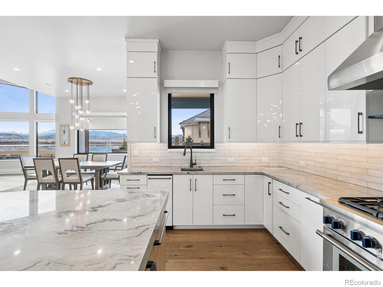 Rare opportunity for the best views in the prestigious Heron Lakes community. Experience the pinnacle of Colorado living in this modern masterpiece nestled on the 10th fairway of TPC Colorado Golf Club, overlooking Lone Tree Reservoir, offering water activities and sweeping mountain views including Longs Peak. There are homes that are built... and there are homes that are composed. Once featured in Architectural Digest, this extraordinary residence is a true work of art-where every line, texture, and finish was selected not just for beauty, but for how it makes you feel.From the moment you enter, a sense of calm sophistication surrounds you. Natural light pours through thoughtfully placed windows, illuminating curated spaces designed for both quiet mornings and unforgettable evenings. The heart of the home-a chef's kitchen appointed with top-of-the-line appliances and exquisite finishes-invites gathering, connection, and celebration.With four serene bedrooms, a private office designed for focus and inspiration, and five elegantly designed bathrooms, every space offers both comfort and intention. Multiple indoor and outdoor living areas create a seamless rhythm between the warmth of the interior and the freedom of open air-perfect for hosting under the stars or enjoying Colorado's most beautiful seasons in complete privacy.The finished, extended double garages -featuring a separate private entrance from one bay to the basement-offers flexibility for collectors, creators, or those who simply value thoughtful design in every detail.This is more than a home. It is a residence of distinction-recognized, admired, and impossible to replicate. A place where architecture becomes experience, and where every day is lived with quiet luxury.