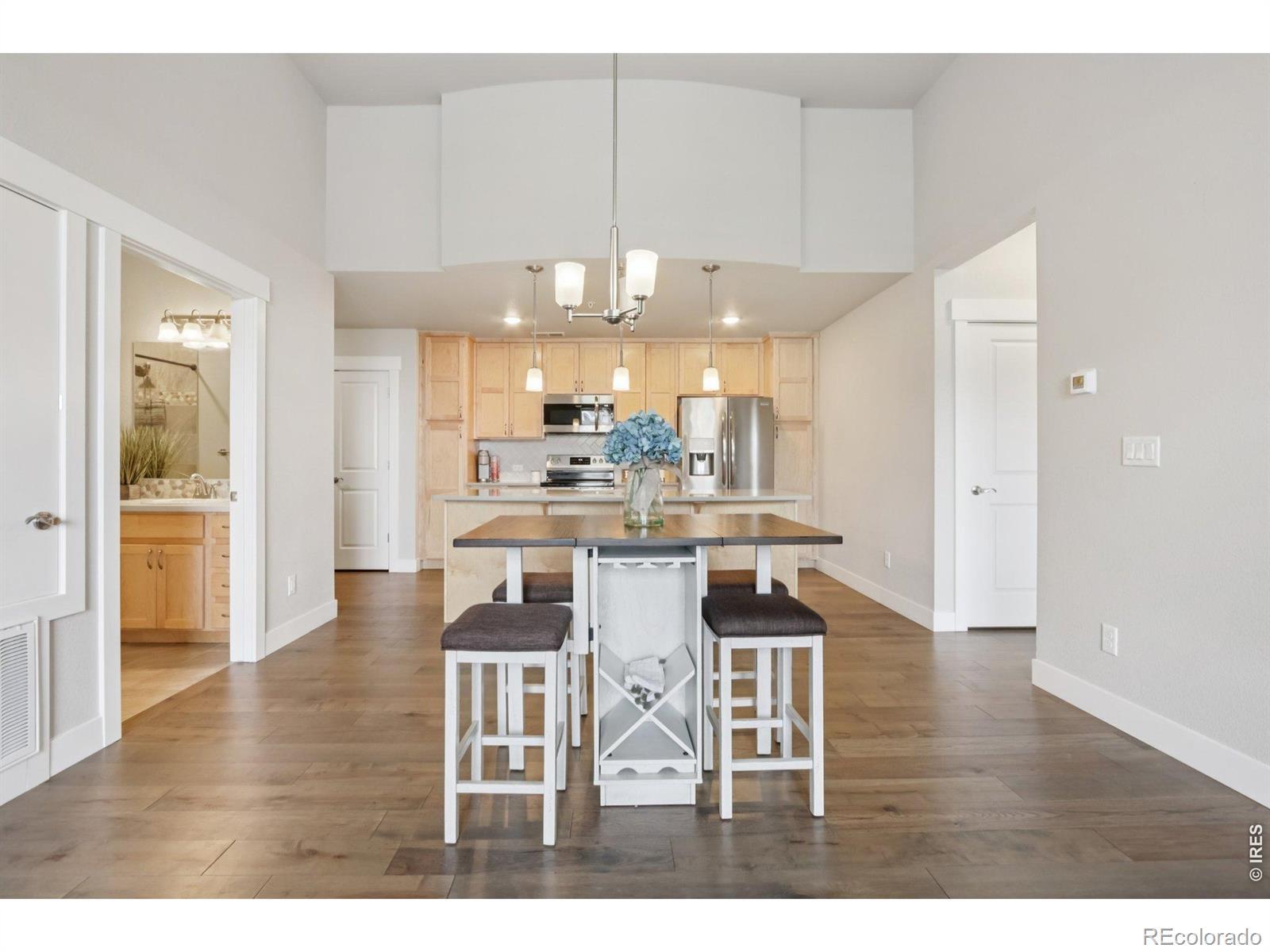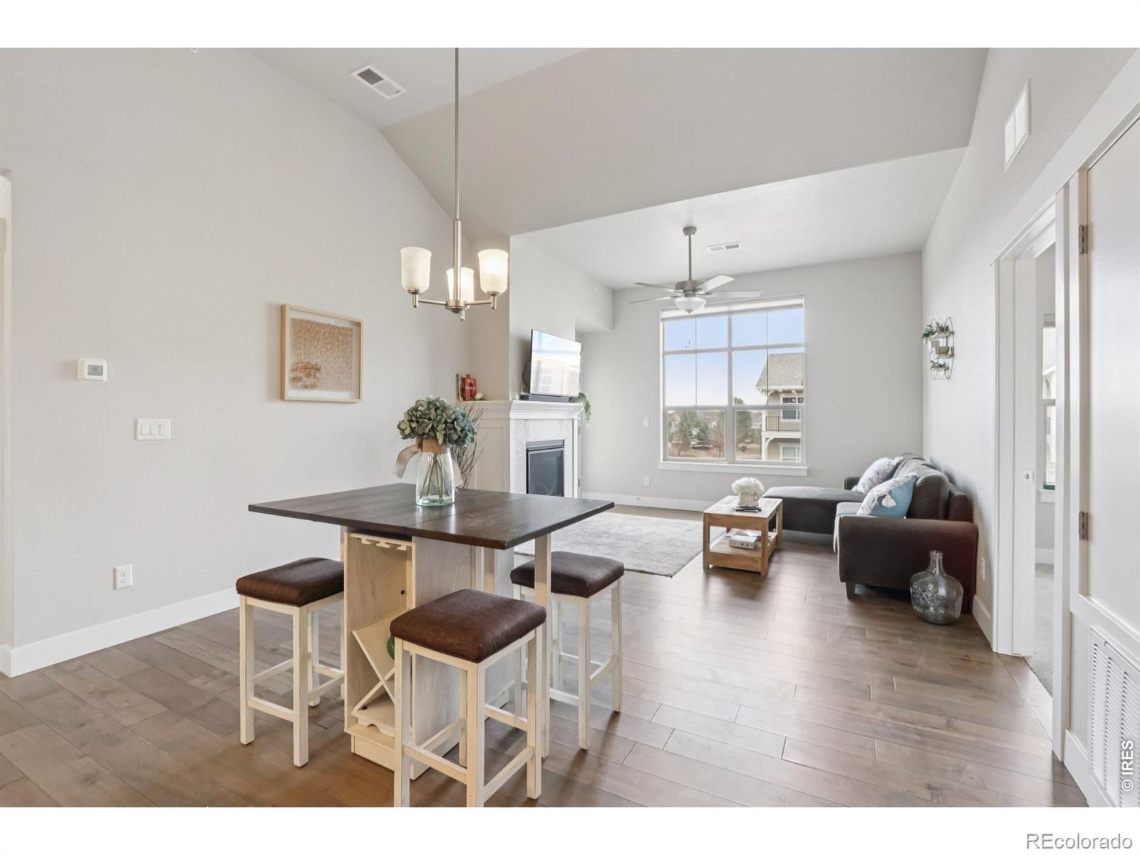 Enjoy low-maintenance living in this third-floor end-unit condo with beautiful mountain views and no neighbors above for added peace and quiet. With elevator access, handicap accessibility, and an attached garage, this home offers true convenience and easy main-floor living. Inside, you will find vaulted ceilings, wood flooring throughout the main living area, and a bright open layout. The kitchen features quartz countertops, stainless steel appliances, and upgraded cabinetry; all appliances are included. Step outside to your private balcony and take in the views. Previously operated as a successful EXECUTIVE/FURNISHED SHORT TERM RENTAL with low vacancies, this home has proven to have strong appeal for traveling nurses and professionals seeking an easy commute. Ideally located near the 25 and 34 exchange, commuting is simple and convenient. You are just minutes from restaurants, shopping, and MCR Hospital, making everyday errands and dining out effortless. The clubhouse next door adds even more value, offering a full kitchen, rec room, and gym. The HOA provides exceptional coverage, including trash, cable, snow removal, hazard insurance, lawn care, exterior maintenance, water, and sewer.