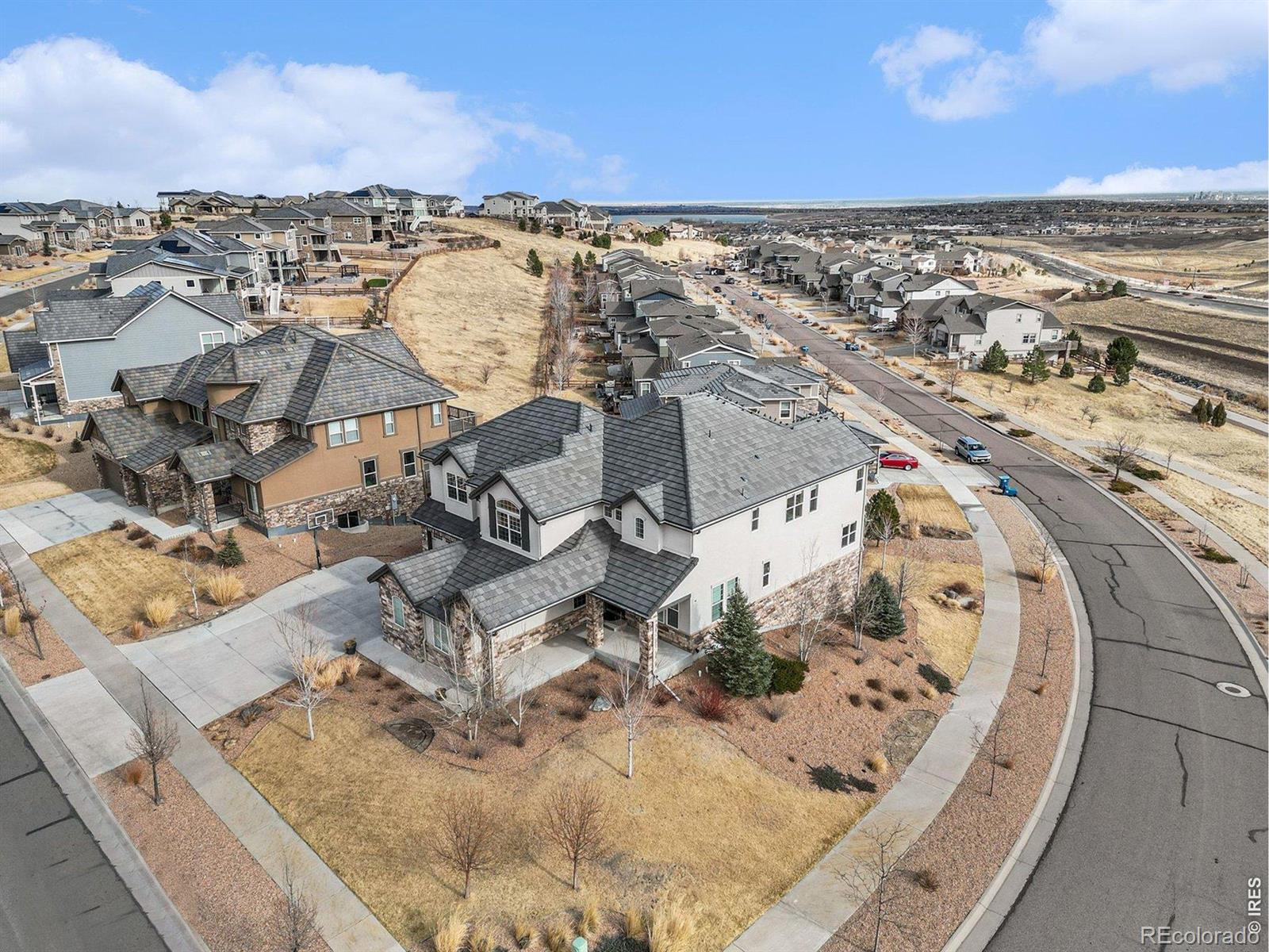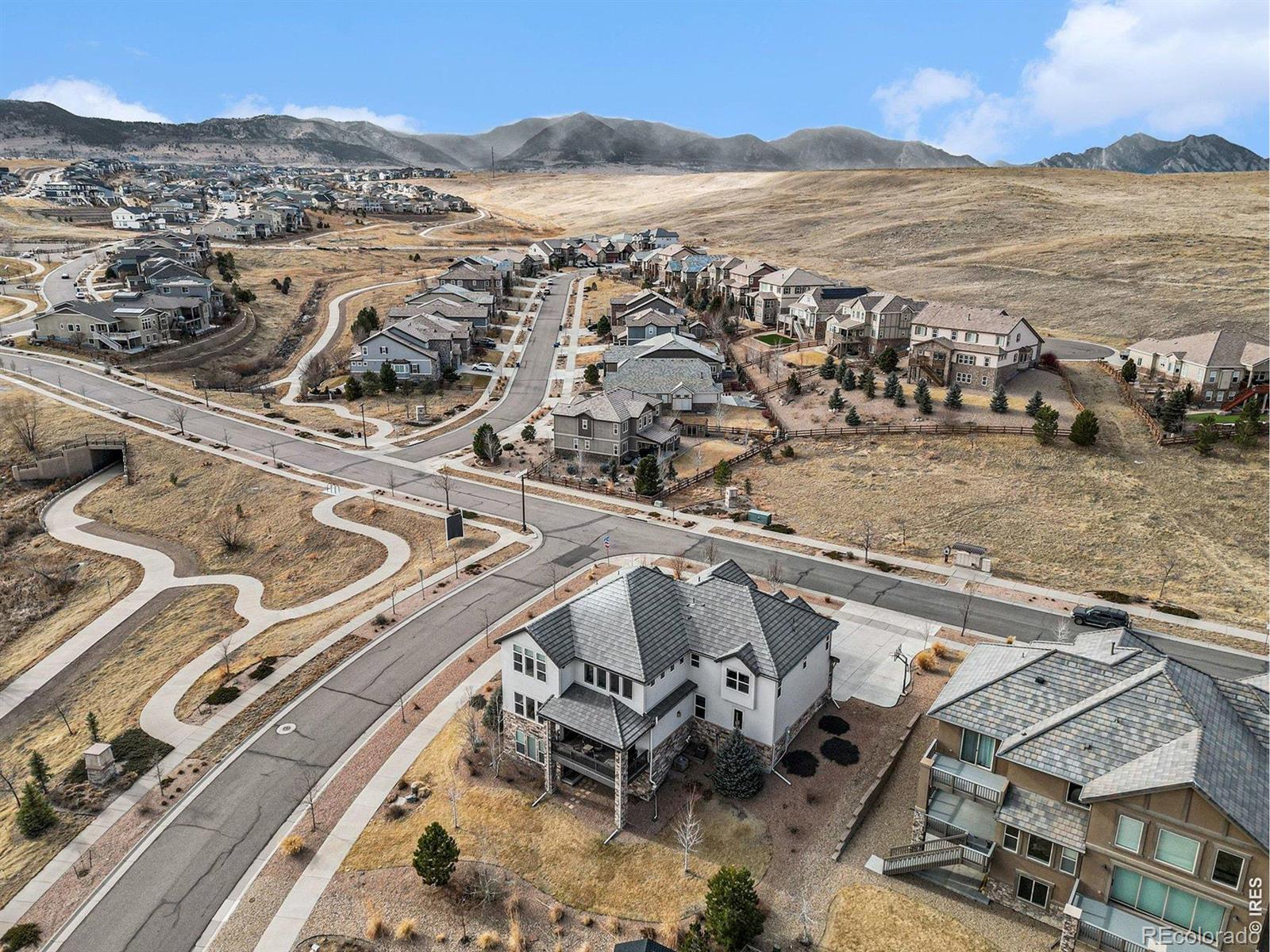 This exceptional residence in Skyview at Candelas delivers elevated Colorado luxury at every turn. Ultra-rare 5-car tandem garage. Panoramic mountain & city views. Former Remington model with extensive designer upgrades. Rich hardwood floors, custom built-ins, & expansive windows frame sweeping views across the main level. At the heart of the home, the chef's kitchen is designed for both daily living & upscale entertaining, featuring full-extension dovetail Tharp cabinetry, quartz countertops, stainless steel appliances, 5-burner gas range, instant hot water, statement backsplash, & generous walk-in pantry. The main level features a vaulted family room with fireplace flowing seamlessly into formal & casual dining spaces with views, complemented by a main-level office or guest suite, powder bath, mudroom, & expansive custom storage. A 15' x 8' infinity sliding door opens to the covered deck, creating true indoor-outdoor living. Upstairs, 4 bedrooms include a luxurious primary retreat positioned to capture panoramic views, complete with a spa-inspired 5-piece bath & oversized walk-in closet. Secondary bedrooms feature attached baths & walk-in closets, while an expansive laundry room adds convenience. The finished walk-out basement is built for entertaining, anchored by an 8-seat custom wet bar with bronze sink, leathered granite, built-in ice maker, dishwasher, & a striking steampunk liquor display. A guest suite with en-suite bath, spacious living area with custom shelving & fireplace, & covered patio complete the space. Additional highlights include: custom window coverings, custom and mature landscaping, additional unfinished space for workout room or storage, expanded driveway, and located within window view of local K-8 school bus stop. Generous corner lot that sides and fronts to open space plus access to trails and top commuter routes, this home offers a rare combination of panoramic views, model home level enhancements, and luxury finishes in Northwest Arvada.