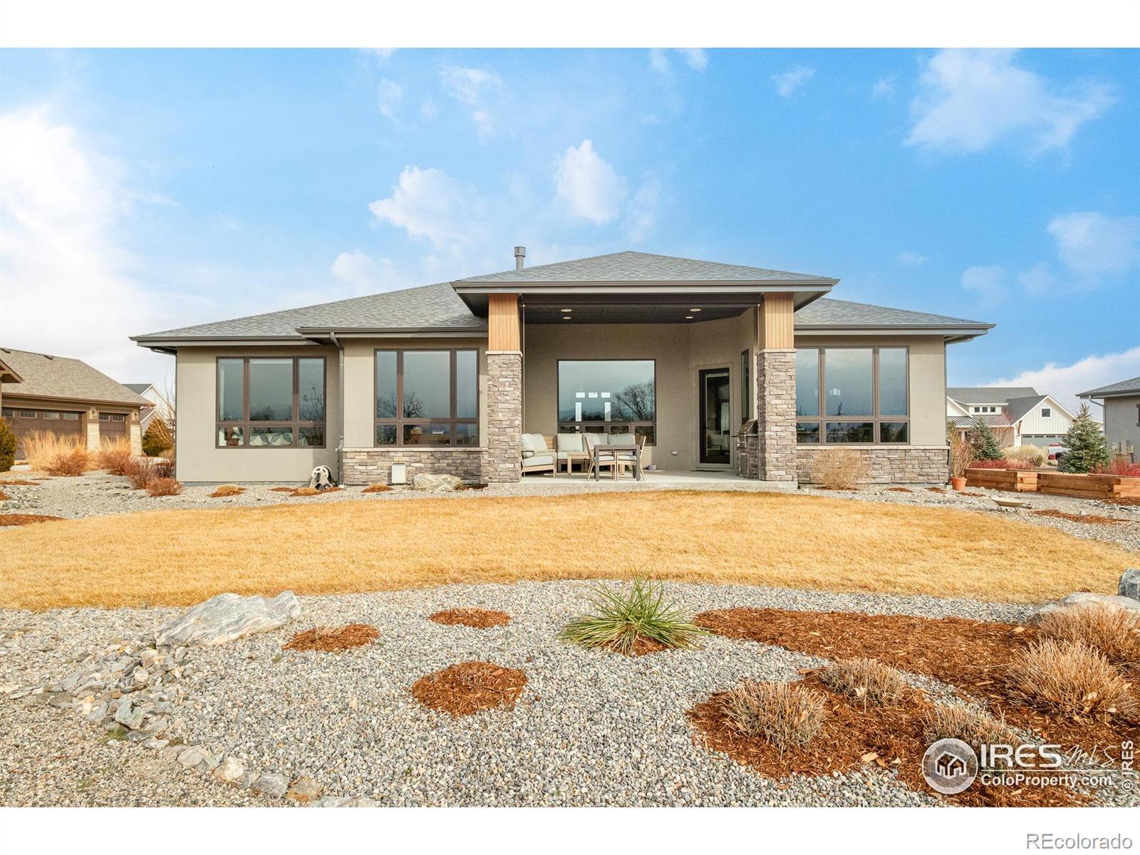 Unparalleled views and exceptional craftsmanship define this custom residence in much sought after, Longs Peak Farm. Built in 2022 by Sopris Homes, this impressive home blends energy-efficient construction with refined design and modern comfort. Expansive, energy-efficient windows, particularly the massive rear wall of glass, frame unobstructed views across the protected open space, of the Front Range, & Longs Peak beyond. The backyard borders a 35-acre conservation easement, ensuring permanent open space and frequent wildlife sightings, plus an active eagle's nest. The floor plan accommodates both formal and casual living with the dining room, separated from the beautifully appointed chef's kitchen with a breakfast nook and an oversized island. Retreat to the primary suite, boasting a large walk-in closet and a serene bathroom with a enormous shower. The finished basement offers a dedicated entertainment area, wet bar and 700-bottle wine rack, plus additional bedrooms and storage. A built-in grill anchors the back patio, showcasing the vast, picturesque views.