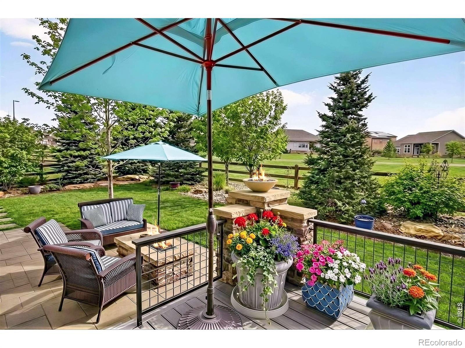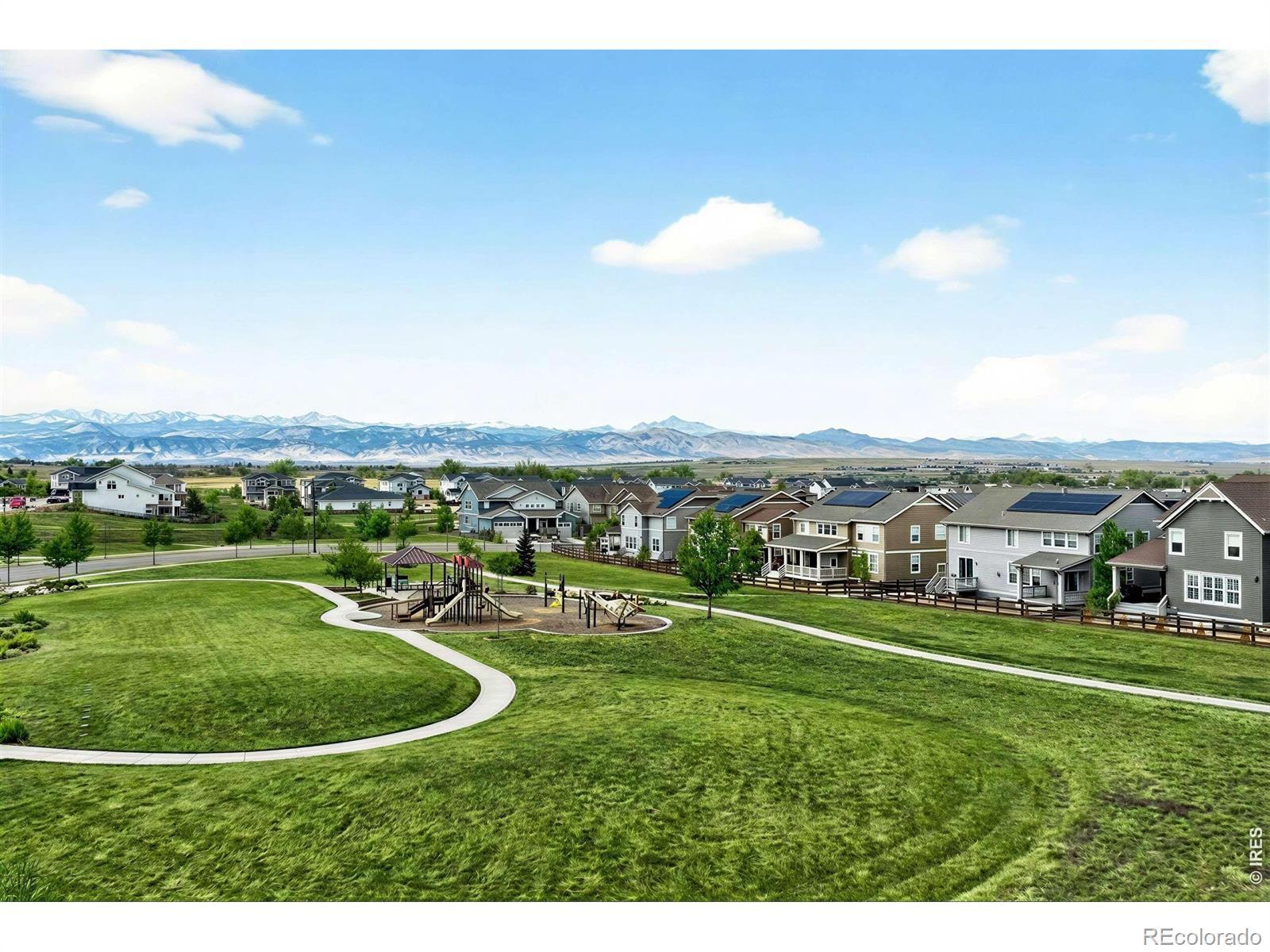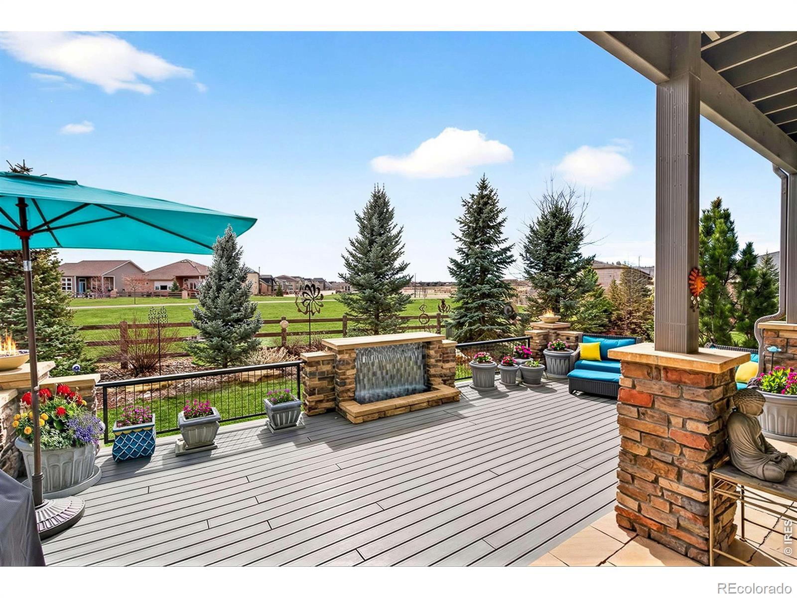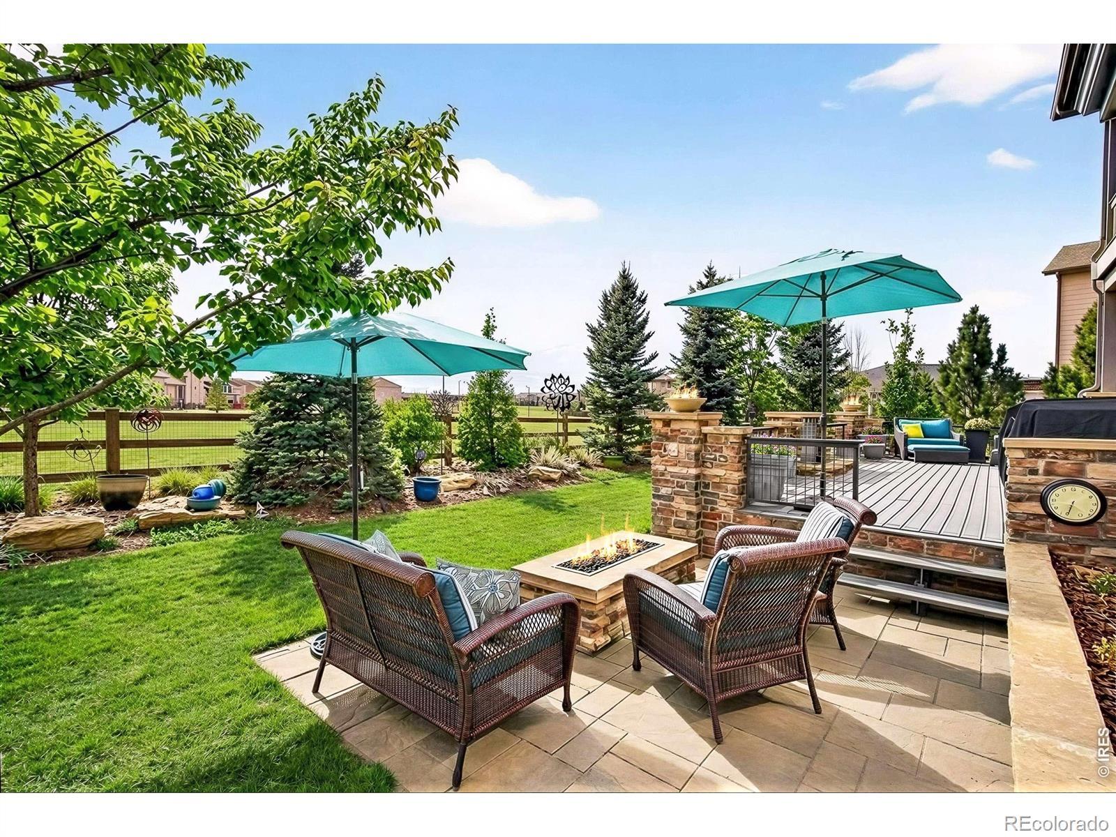 The Parkside Vista Retreat. Perfectly positioned in Flatiron Meadows, this exceptional Toll Brothers Ralson model residence enjoys rare privacy, & mountain views, with no neighbors in front or behind. A charming pocket park anchors the front approach, while serene open space unfolds beyond the backyard, creating a setting that feels expansive & intimate. Meticulously maintained by the original owners, the home reveals thoughtful design at every turn, beginning with a striking knotty alder front door & elegant French doors opening to a home office. Entertain with ease in the formal dining room & the dramatic two-story great room, where a modern gas fireplace, custom hammered metal staircase railing, & a wall of multi-panel telescoping glass doors blur the line between indoors & out. Wide-plank oak hardwood flooring, upgraded interior carpentry, & refined lighting elevate the experience throughout. The chef's kitchen is impressive, featuring a premium appliance package with dual ovens & gas range, an oversized island with bar seating, a walk-in pantry, & a well-appointed butler's pantry. Outdoor living is elevated with a tranquil deck with water feature, gas fire table, dual fire bowls, & a side patio with pergola & garden boxes-an incredibly private, resort-like setting ideal for entertaining. The main level offers a guest suite with walk-in closet, ensuite bath, & direct outdoor access. The finished lower level is designed for gathering, with a spacious rec room, wet bar with beverage fridge, & exceptional storage. Upstairs, a light-filled loft captures unobstructed views, while the primary suite is a true retreat, featuring a large covered private deck, dual walk-in closets, & an expansive spa-style shower. Two additional bedrooms each offer walk-in closets & share a Jack-and-Jill bath. Just blocks from Meadowlark PK-8, surrounded by trails & open space, & close to Boulder, this is a refined yet relaxed lifestyle in one of Erie's most desirable neighborhoods.