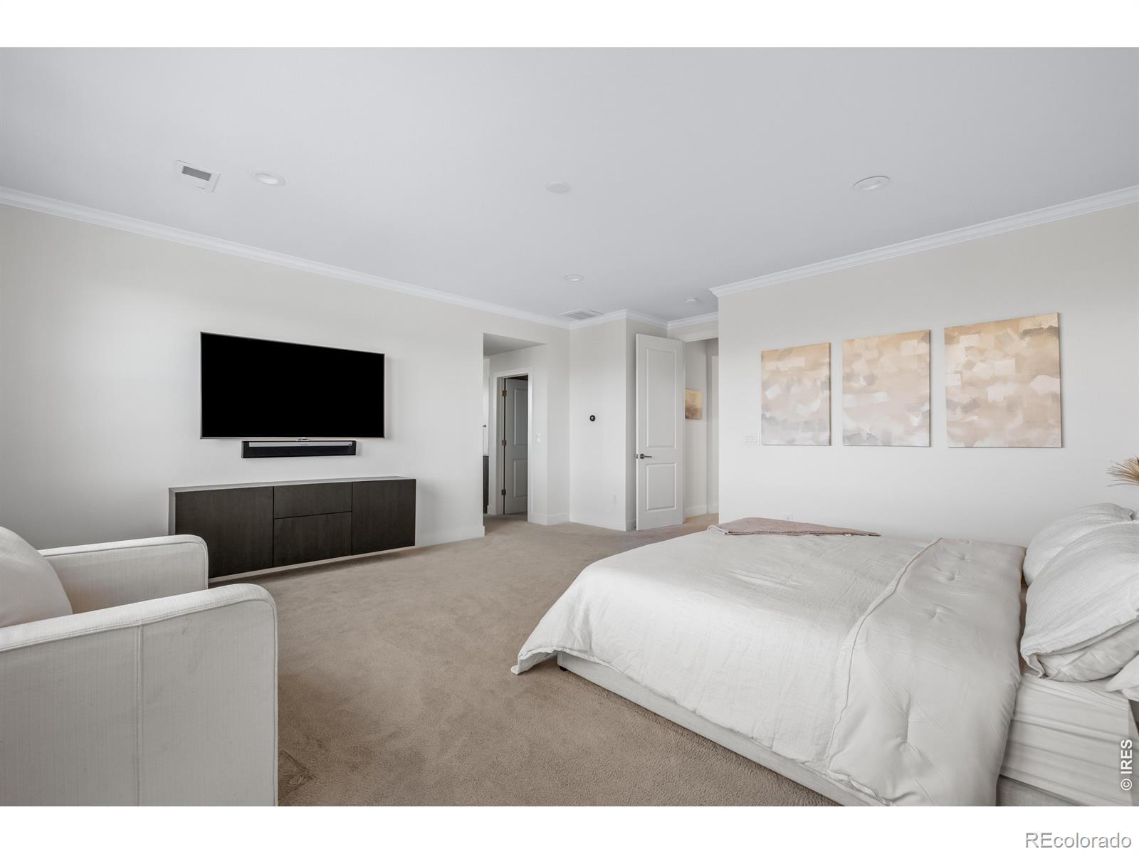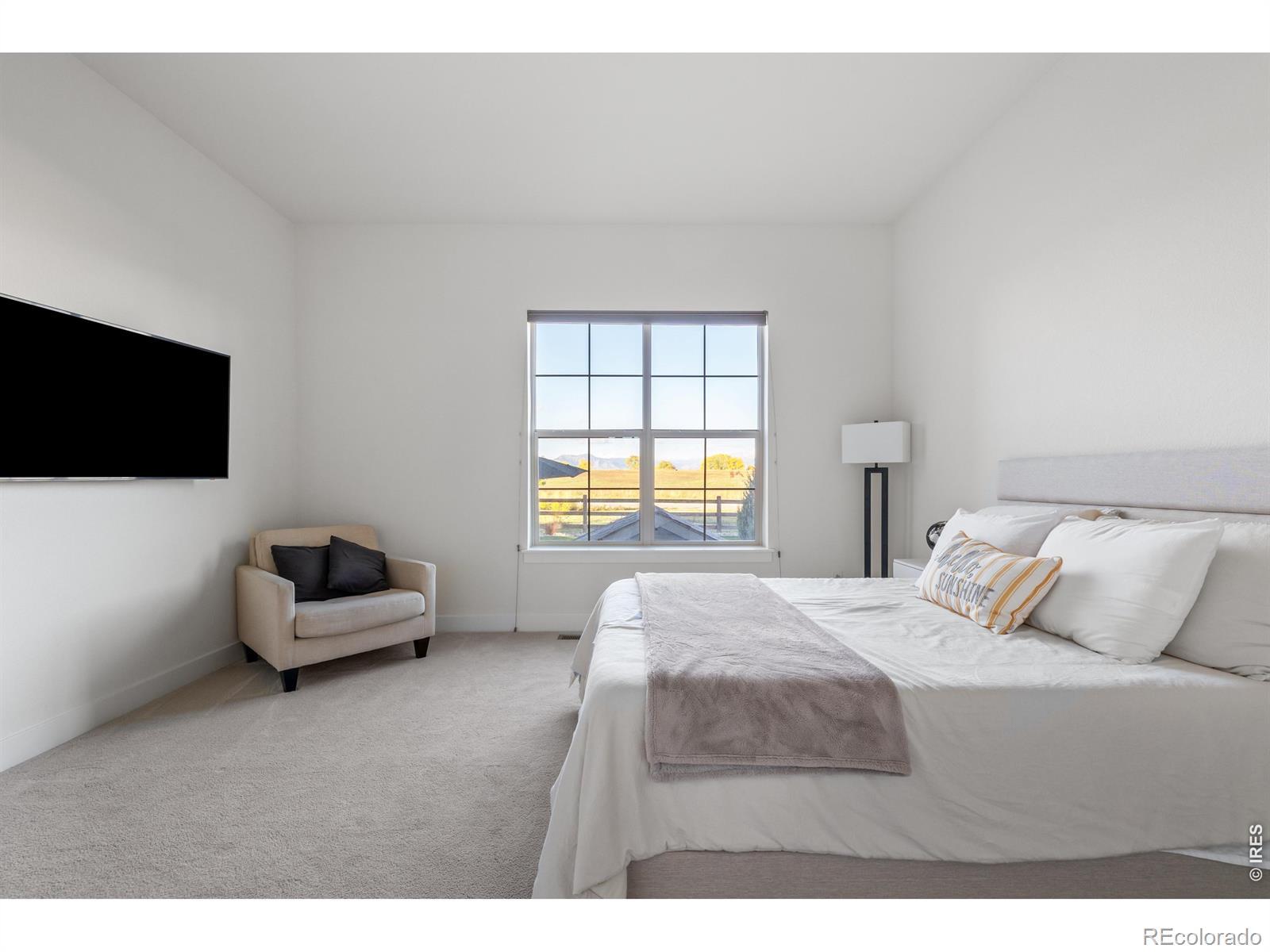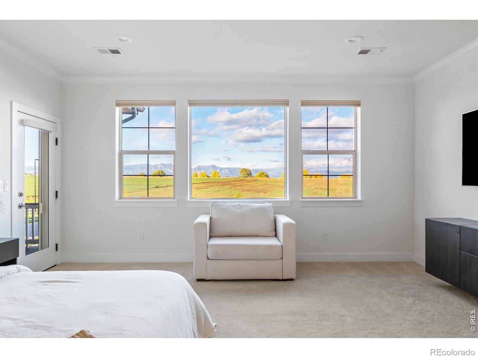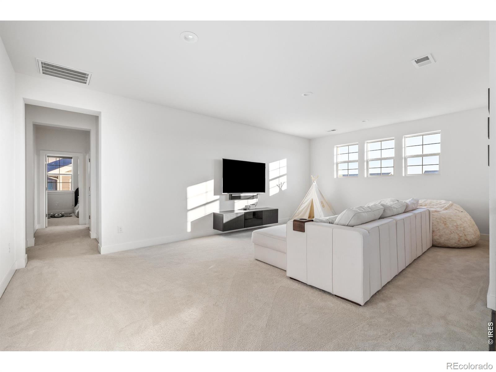 Turnkey luxury living awaits in this sun-drenched, newer-construction Erie 4BD/3.5BA featuring expansive, upgraded interiors and poolside outdoor space. Inside this 3,954SF home, soaring ceilings and oversized windows create a bright and airy ambiance, while crisp white walls, wide-plank flooring and a soaring staircase bordered by metal-and-wire handrails underscore the contemporary aesthetic. The double-height living room features a gas fireplace, floating built-ins and double exposures. Chefs will love the gourmet open kitchen's top-of-the-line KitchenAid appliance suite, custom cabinetry, breakfast nook, and island dining counter, topped by Restoration Hardware pendants. A walk-in pantry adds storage, while a butler's pantry with a wine refrigerator leads to the formal dining room. Off the kitchen, a secondary suite is perfect for guests. A home office, powder room and mudroom complete the well-planned main level. From the living room, oversized sliders tempt you outdoors. Enjoy barbecues on the covered patio flanked by a summer kitchen, or warm yourself near the built-in gas fire pit. Ahead, the heated saltwater pool is surrounded by a sun deck, manicured landscaping and unimpeded mountain views. Head to the upper level to discover a large family room with views over the living room. The stunning primary suite boasts a king-size bedroom, private deck, two extra-large custom closets and an en suite spa bathroom. Two spacious secondary bedrooms share a Jack-and-Jill bathroom, while a large utility room with a GE washer-dryer makes laundry day a breeze. A 2,070SF unfinished lower level provides room to grow, and an oversized four-car garage adds plenty of off-street parking. Located in Flatiron Meadows, a peaceful enclave featuring foothills views, walking/biking paths, parks and easy access to Erie and Louisville amenities and BVSD schools, including nearby Meadowlark School. Discover serene country living just 20 minutes from Boulder and 40 minutes from Denver.