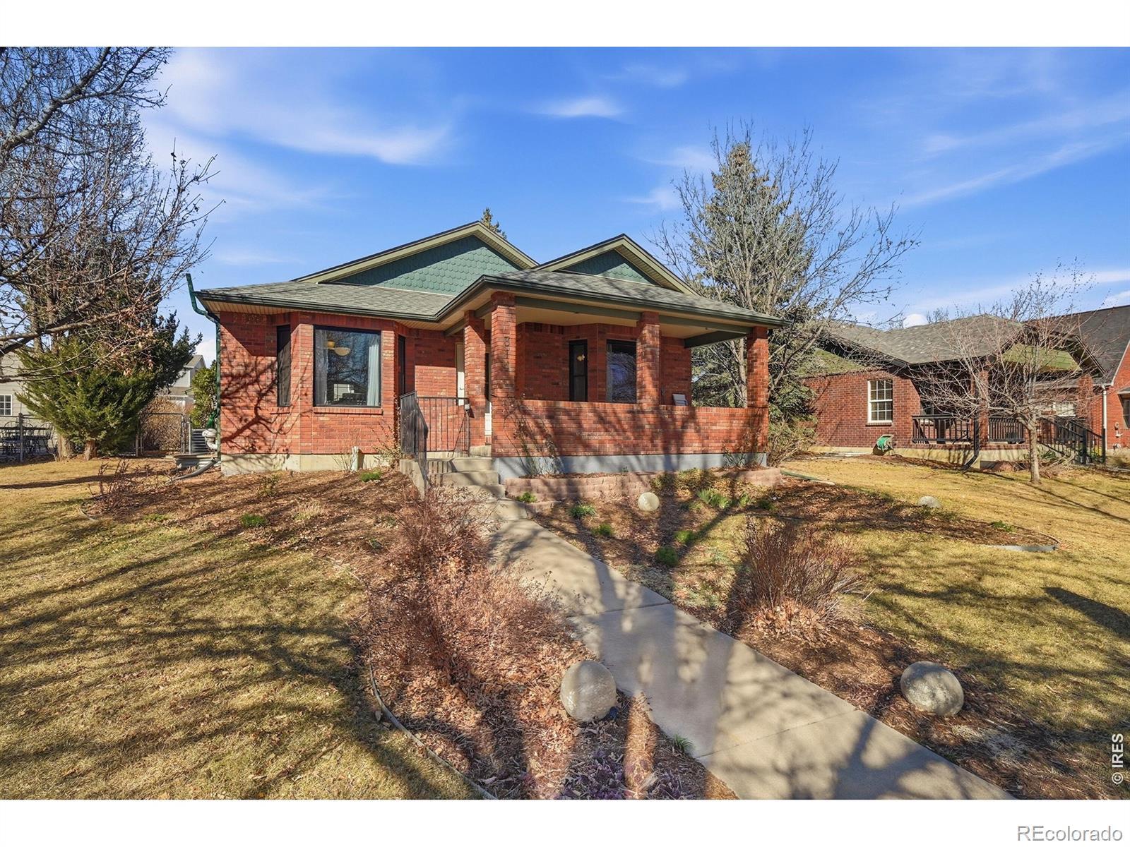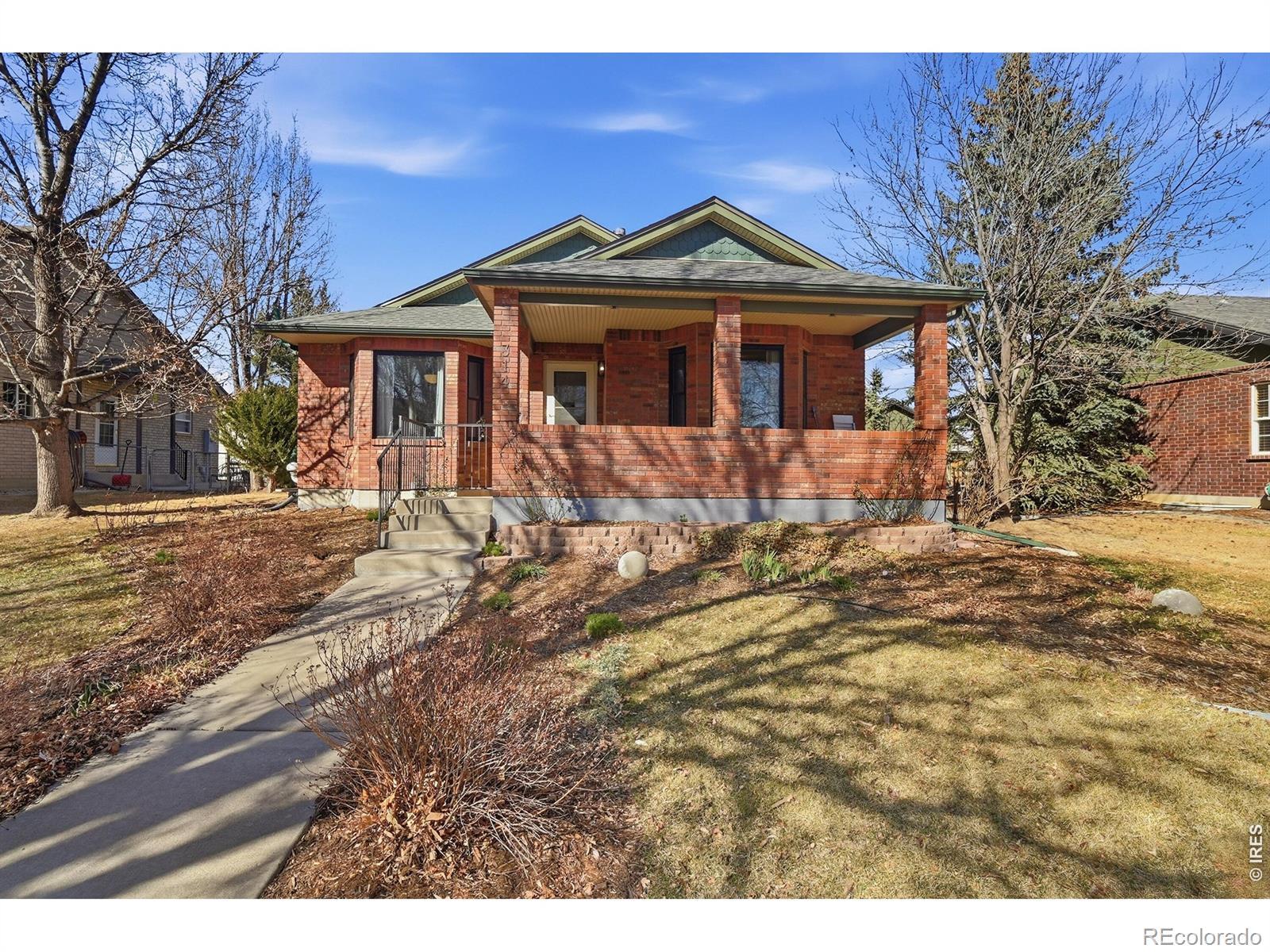 Welcome to this beautiful all brick home in the highly sought after May's Farm neighborhood. With 4 bedrooms, 3 bathrooms, and a detached 2 car garage with alley access, this home blends charm, functionality, and location perfectly. You will love the welcoming front porch and the stunning tree lined street that creates a peaceful canopy overhead. Inside, the main floor features gorgeous wood floors throughout and a bright, inviting layout. The kitchen with its rich blue cabinetry, granite countertops, and a dramatic waterfall edge. Convenient main floor laundry adds ease to your routine. Downstairs, the spacious basement living area offers incredible flexibility and includes a refrigerator and cooktop, making it ideal for guests, extended living, or a private retreat. Major updates bring peace of mind with a new furnace, new AC, and a new water heater. Even better, there is no HOA and no metro district. And the location? Pioneer Park is less than a block away, giving you easy access to green space, trails, and outdoor fun.