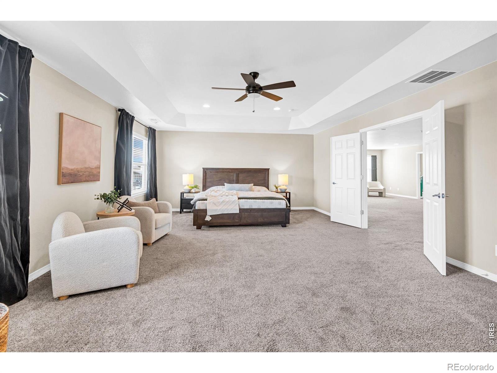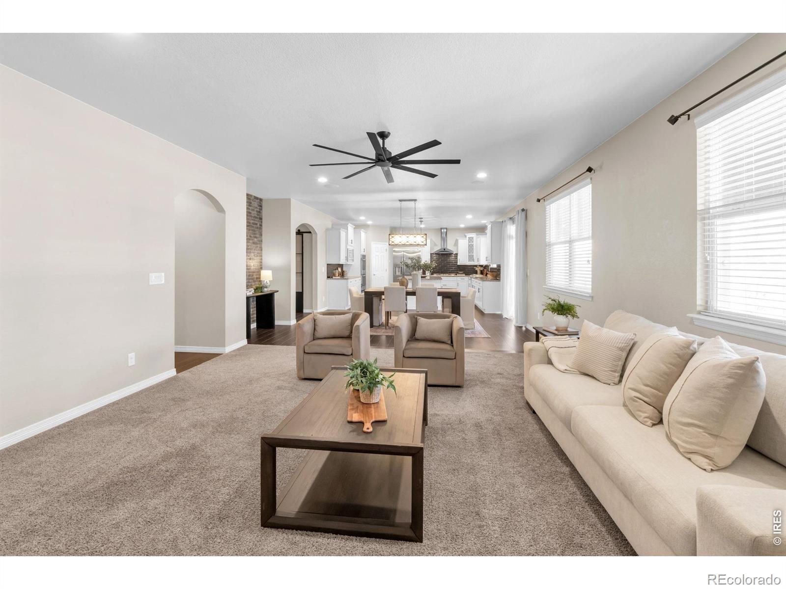 A true standout in the Timnath - Summerfield Estates community, offering the kind of space, layout, and quality rarely seen. With 7 bedrooms, 6 bathrooms, and over 6,200 square feet, this home was designed to live with ample space/ privacy, entertain when desired, and accommodate a wide range of needs without compromise. Set in one of Timnath's most desirable communities, with multiple parks, open spaces, and a fantastic neighborhood water park & gym, the location is every bit as impressive as the home itself. Inside, the floor plan is exceptionally executed. The formal living room makes an immediate impression with soaring vaulted ceilings, expansive windows, and dramatic floor-to-ceiling curtains that bring scale, light, and impact. The kitchen is well equipped with a custom built-in GE refrigerator, high-end appliances, and the level of finish and functionality often seen only in custom homes. A main floor guest suite provides functionality for extended stays, or multi-generational living. Upstairs, the massive loft/flex space creates a rare second living area with endless options for use, whether as a media room, playroom, office, or additional lounge space. Multiple en-suite bedrooms provide privacy and comfort throughout, a feature that is increasingly hard to find. The primary suite is exactly what buyers are looking for, with expansive square footage, tons of windows, fireplace, a 5-piece bath, and a high dollar custom-built closet. The home theater cannot be overlooked, complete with 3 rows of comfort including power recliners, an acoustically transparent screen, and an extensive sound system that delivers a true theater experience all from the comfort of your home. A rare combination of size, quality, and versatility in a prime Timnath setting. Thoughtfully designed, exceptionally well suited for everyday living and entertaining, and loaded with custom features rarely seen at this price point.