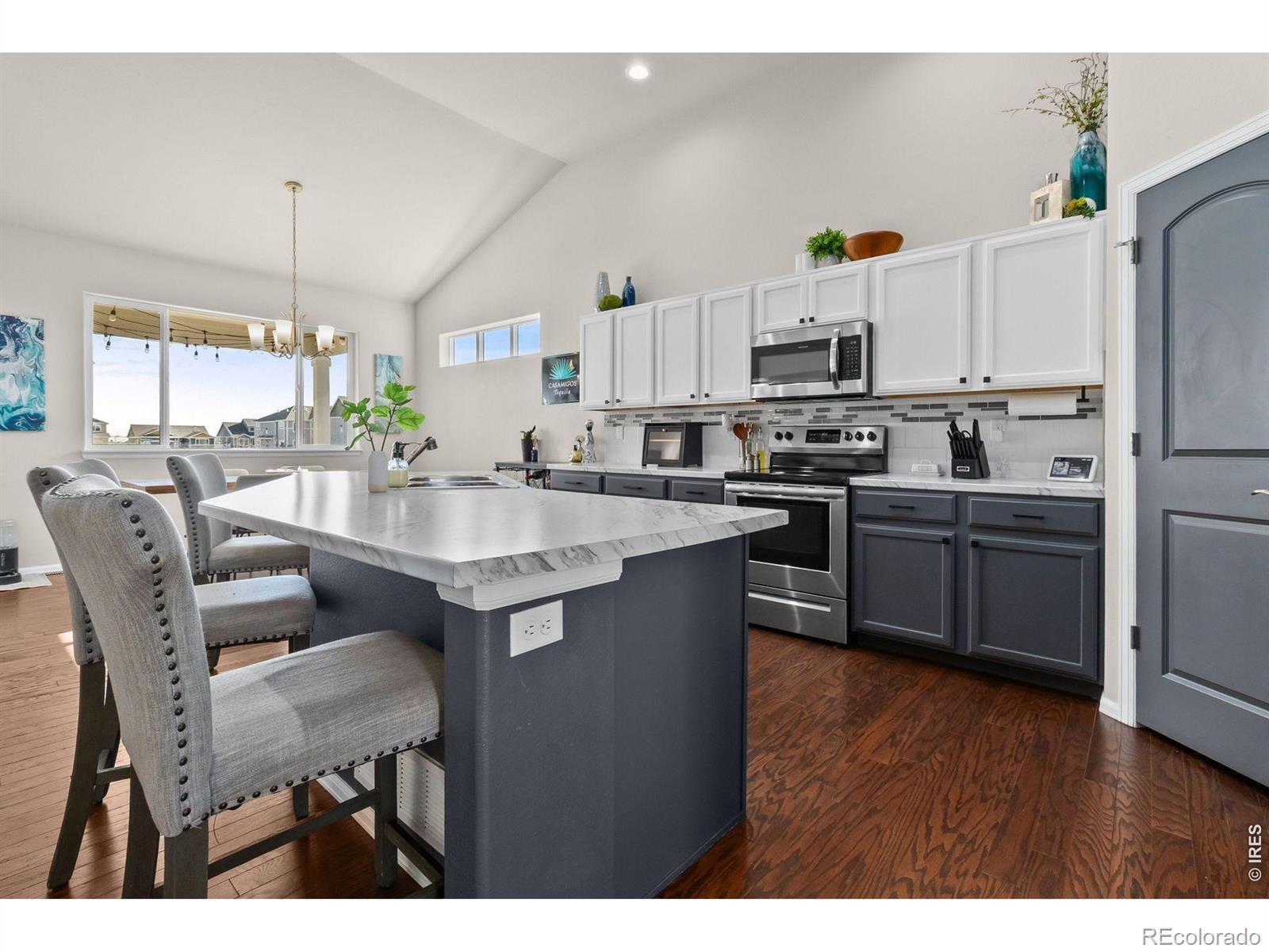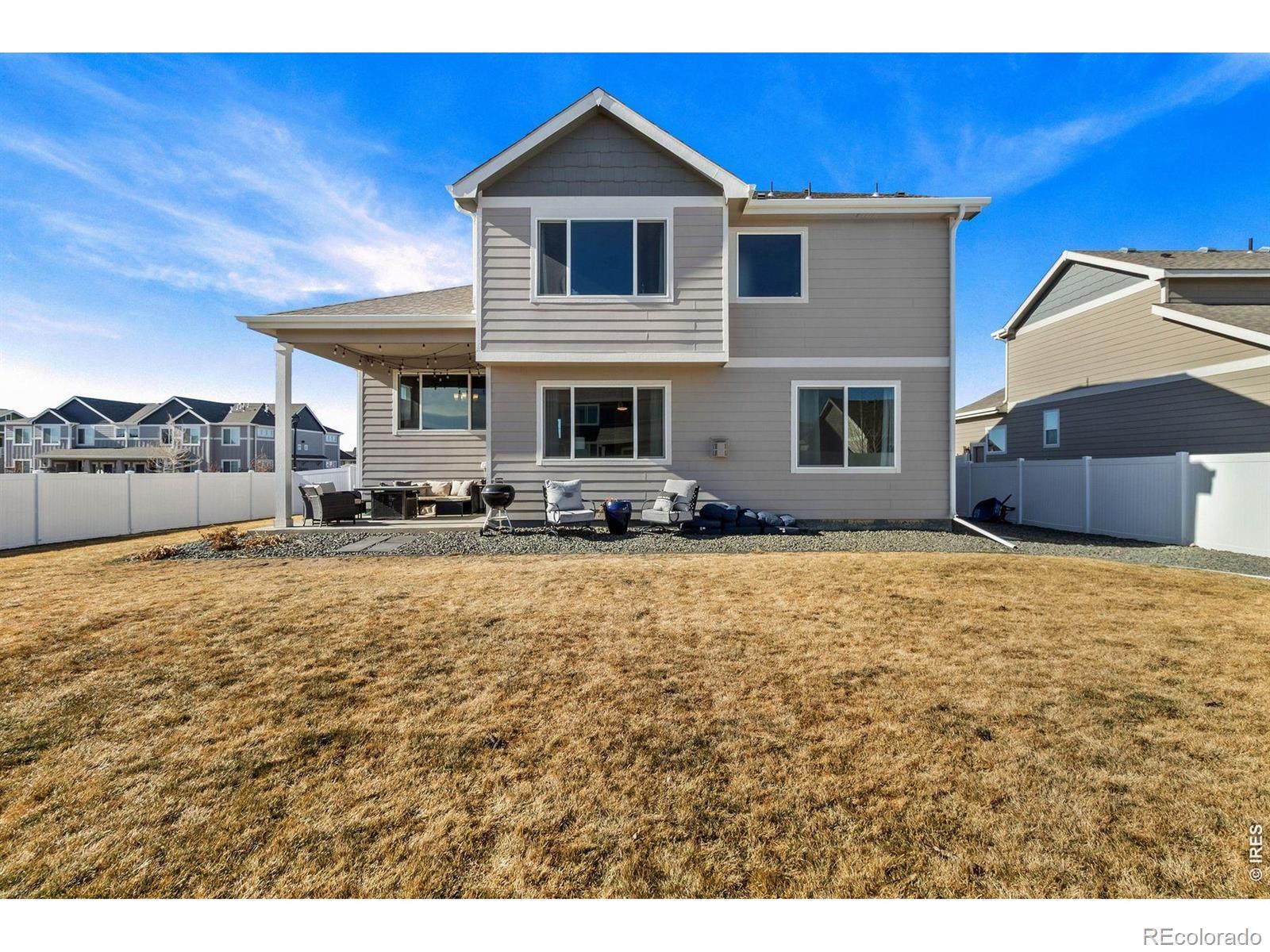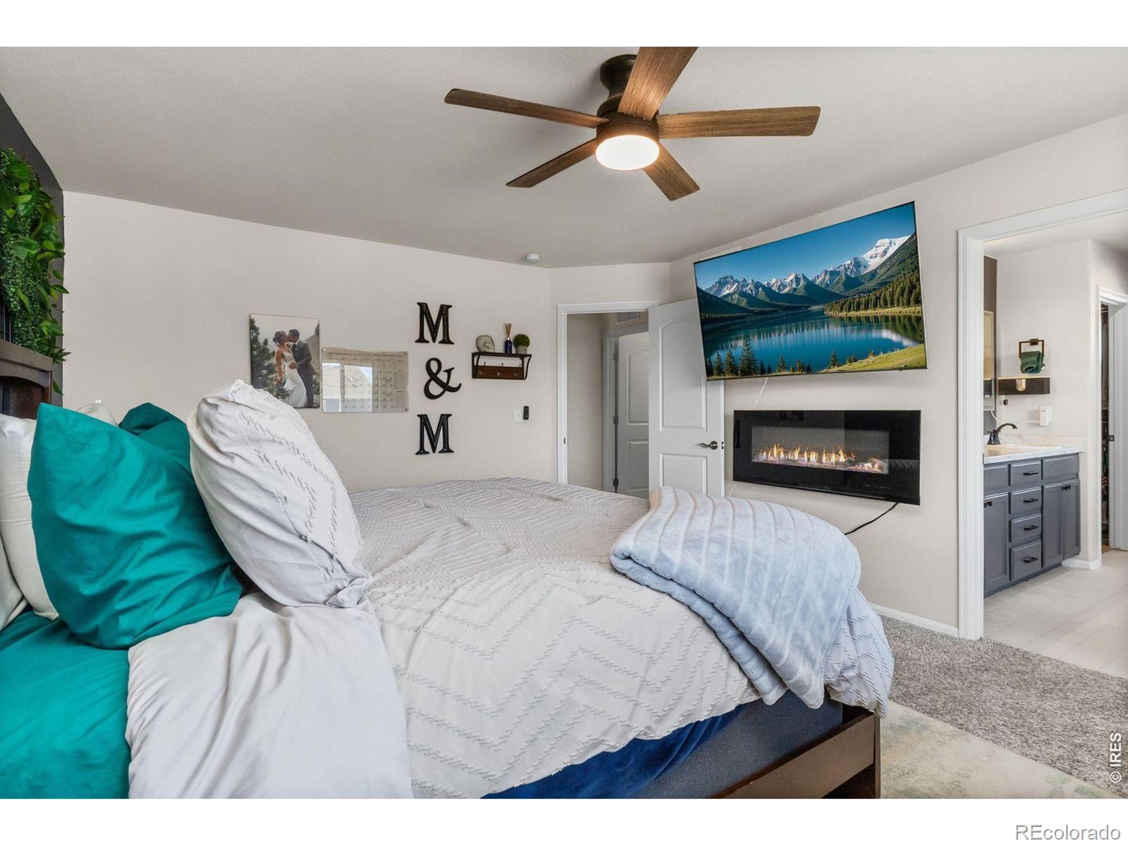Welcome to Village East - where modern design meets everyday functionality in the heart of Windsor.Built in 2023, this beautifully designed multi-level home offers 4 bedrooms, 3 baths, and 2,222 finished square feet, plus an unfinished basement ready for your future expansion. From the moment you step inside, you'll love the engineered hardwood flooring, vaulted ceilings, and light-filled open layout. The kitchen is the true centerpiece - featuring modern laminate countertops, two-tone cabinetry, subway tile backsplash, stainless steel appliances, pantry, and a large center island. Just off the kitchen, a main-floor office provides the flexibility for working from home or managing daily life with ease. The lower level offers a spacious secondary living room with a cozy fireplace. Sliding glass doors lead to a covered rear patio and fully fenced backyard, creating seamless indoor-outdoor living. This level also includes an additional bedroom and full bath, perfect for guests or multigenerational living. Upstairs, you'll find two primary suites designed for comfort and retreat (4th bedroom was converted to a second ensuite closet attached to the main bathroom), convenient upper-level laundry. An attached oversized 2-car garage completes the home, while the unfinished basement offers room to grow. Enjoy living just minutes from some of Windsor's best amenities: Located approximately 0.7 mi to Windsor Lake, 0.8 mi to Windsor Lake Trail, 0.9 mi to Eastman Park, and near downtown Windsor retail, King Soopers, Safeway, CO-257, and Crossroads Blvd for regional access.