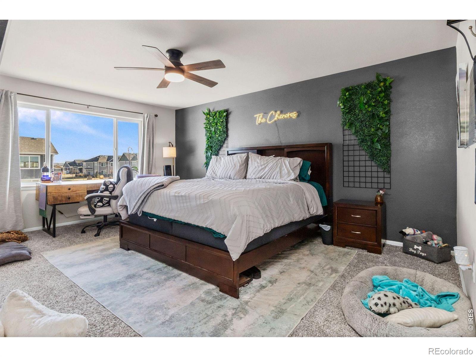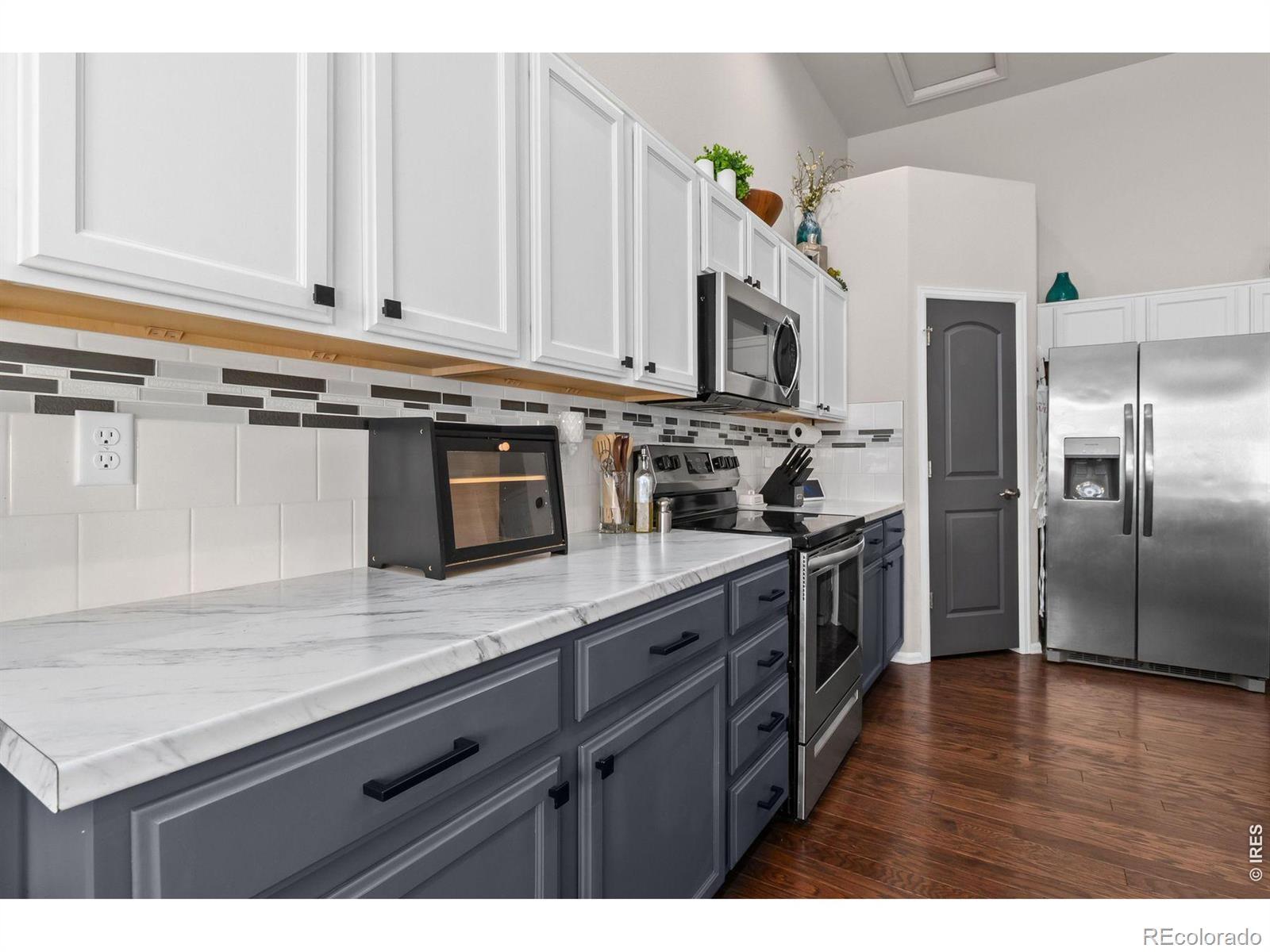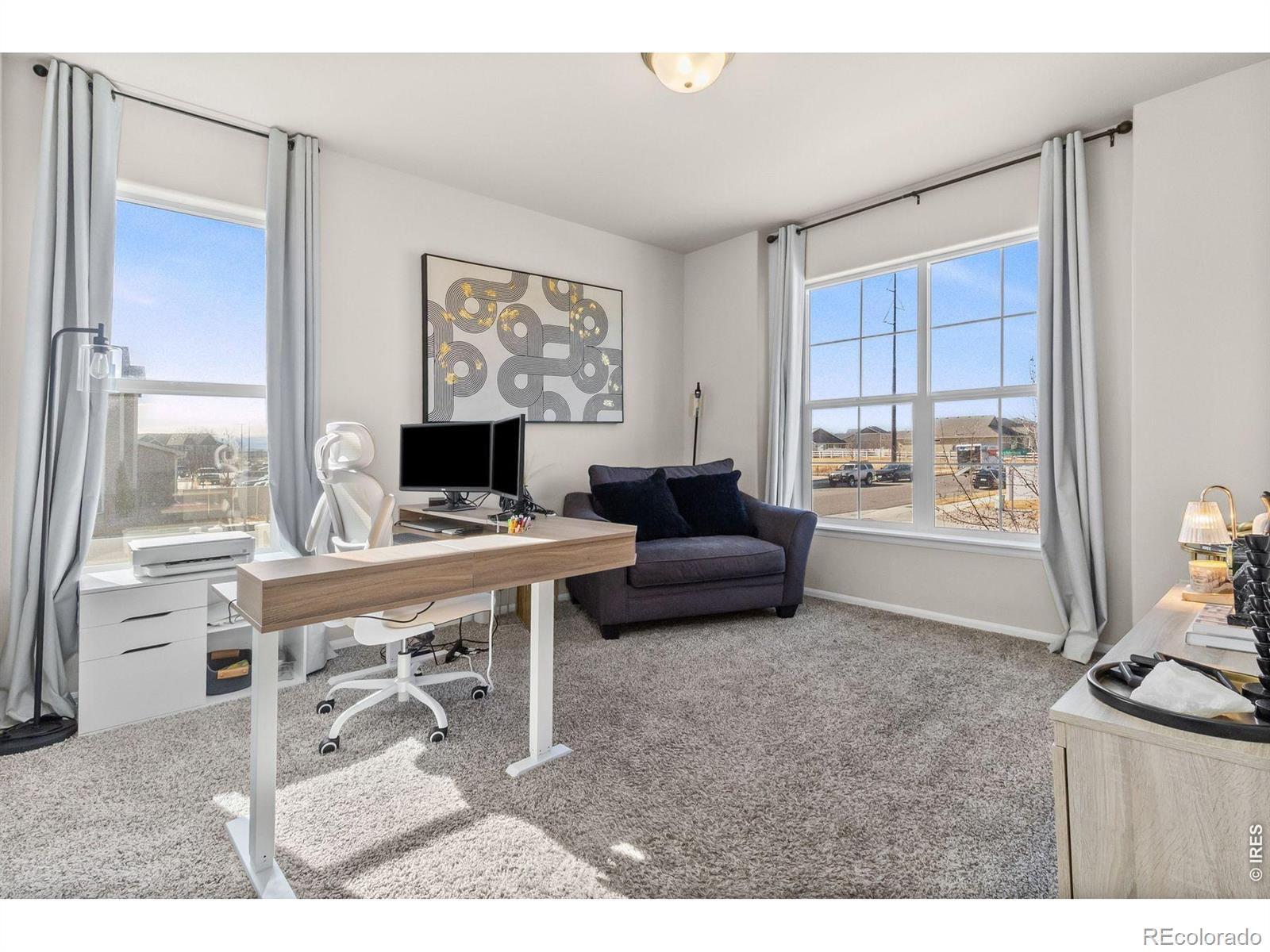 Welcome to Village East - where modern design meets everyday functionality in the heart of Windsor.Built in 2023, this beautifully designed multi-level home offers 4 bedrooms, 3 baths, and 2,222 finished square feet, plus an unfinished basement ready for your future expansion. From the moment you step inside, you'll love the engineered hardwood flooring, vaulted ceilings, and light-filled open layout. The kitchen is the true centerpiece - featuring modern laminate countertops, two-tone cabinetry, subway tile backsplash, stainless steel appliances, pantry, and a large center island. Just off the kitchen, a main-floor office provides the flexibility for working from home or managing daily life with ease. The lower level offers a spacious secondary living room with a cozy fireplace. Sliding glass doors lead to a covered rear patio and fully fenced backyard, creating seamless indoor-outdoor living. This level also includes an additional bedroom and full bath, perfect for guests or multigenerational living. Upstairs, you'll find two primary suites designed for comfort and retreat (4th bedroom was converted to a second ensuite closet attached to the main bathroom), convenient upper-level laundry. An attached oversized 2-car garage completes the home, while the unfinished basement offers room to grow. Enjoy living just minutes from some of Windsor's best amenities: Located approximately 0.7 mi to Windsor Lake, 0.8 mi to Windsor Lake Trail, 0.9 mi to Eastman Park, and near downtown Windsor retail, King Soopers, Safeway, CO-257, and Crossroads Blvd for regional access.