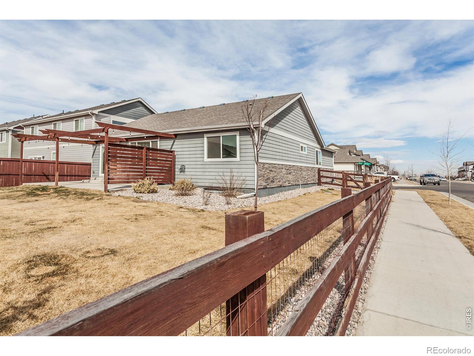 Situated on a desirable corner lot, this home offers added privacy, extra yard space, and great curb appeal. The open-concept layout seamlessly connects the living, dining, and kitchen areas, filled with natural light from expansive windows-perfect for everyday living and entertaining. The spacious primary suite includes a private bath and walk-in closet, while the full unfinished walk-out basement provides excellent potential for future expansion. Enjoy outdoor living and mountain views on the back patio with pergola-ideal for relaxing or hosting gatherings. Conveniently located near community amenities like parks, trails, golf, and dining, and easy access to I25 for commuting!