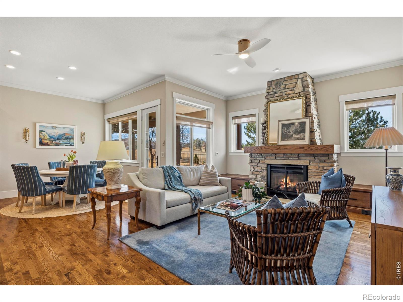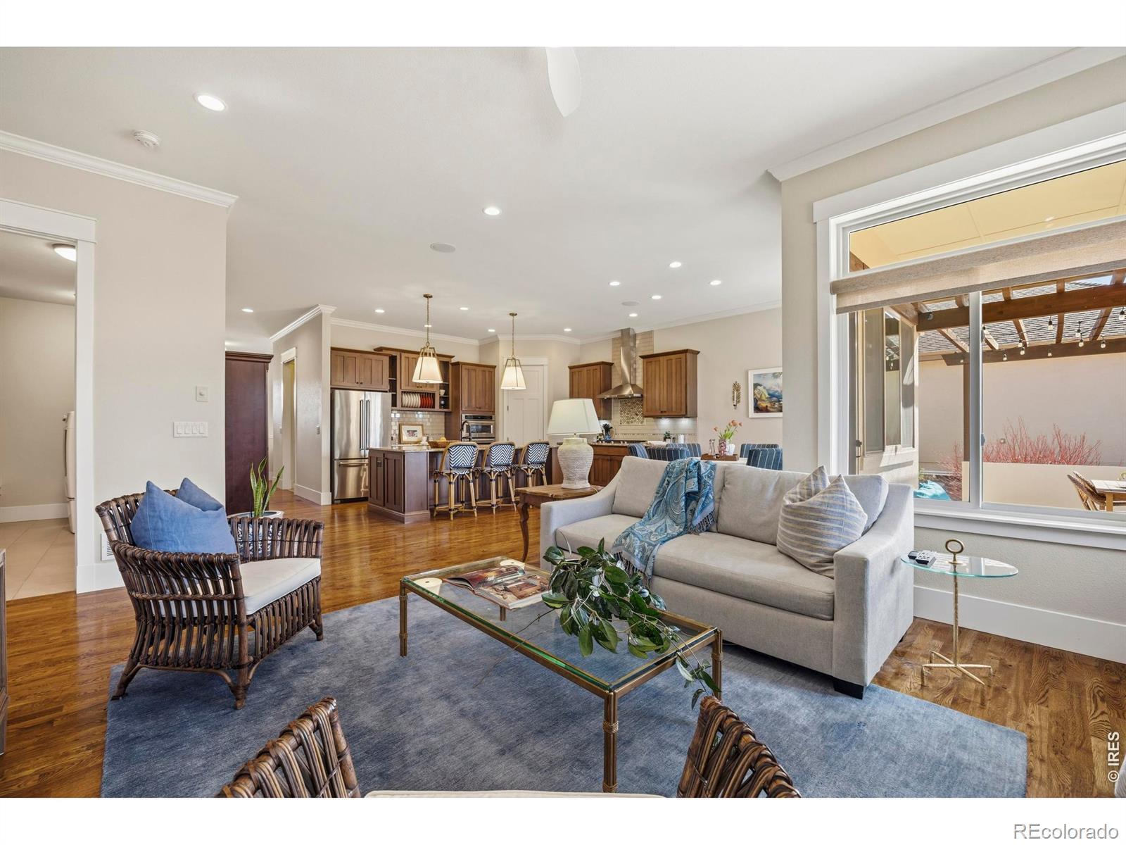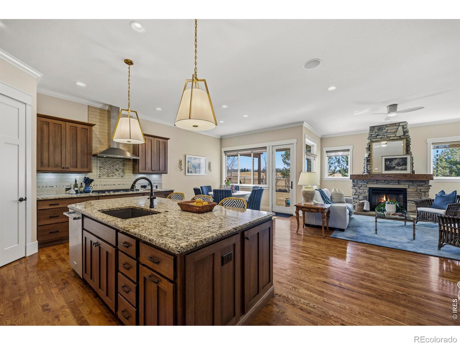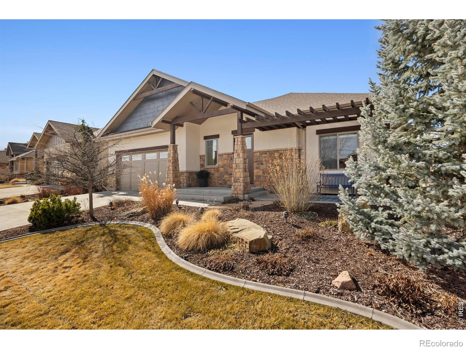 Luxury Living in Murano at Highland Meadows - Exceptional Golf Course Community Home. Welcome to this stunning, lower maintenance residence in the Murano enclave built by Classic Custom Builders. Perfectly positioned to offer both luxury and comfort, this 4-bedroom, 3-bathroom home features over 3,500 square feet of impeccably designed living space. Step inside to discover a bright, open-concept, floor plan characterized by beautiful finishes like rich oak flooring, 8' craftsman style doors, beautiful cabinetry, and thoughtful finishes throughout. The heart of the home is the chef's kitchen, which boasts an expansive island with plentiful storage on two sides, quality KitchenAid appliances, beautiful granite countertops, and timeless features making it an entertainer's dream. The living room is anchored by a cozy fireplace and flows seamlessly into the dining area, perfect for hosting intimate dinners or large gatherings. The main level includes a tranquil primary suite featuring a classically designed bathroom and a massive walk-in closet. The main level also features a generously sized laundry room, second bedroom or office, full bathroom, and convenient mud room. The fully finished basement adds incredible versatility, offering large recreation room, two more bedrooms, a separate laundry room, a home gym and plenty of additional storage. Oversized 3-car tandem garage with several thoughtful inclusions. Outside, enjoy the peaceful Colorado lifestyle in your professionally landscaped yard. Whether you're relaxing on the covered patio or under the pergola or taking in the morning views from the front porch, the outdoor space is a chef's kiss of Colorado living. Enjoy resort-style living with access to the community's top-tier amenities, including the clubhouse, pool, and tennis courts. Located just minutes from premier golf, shopping, and dining, this home offers the perfect balance of convenience and serenity.