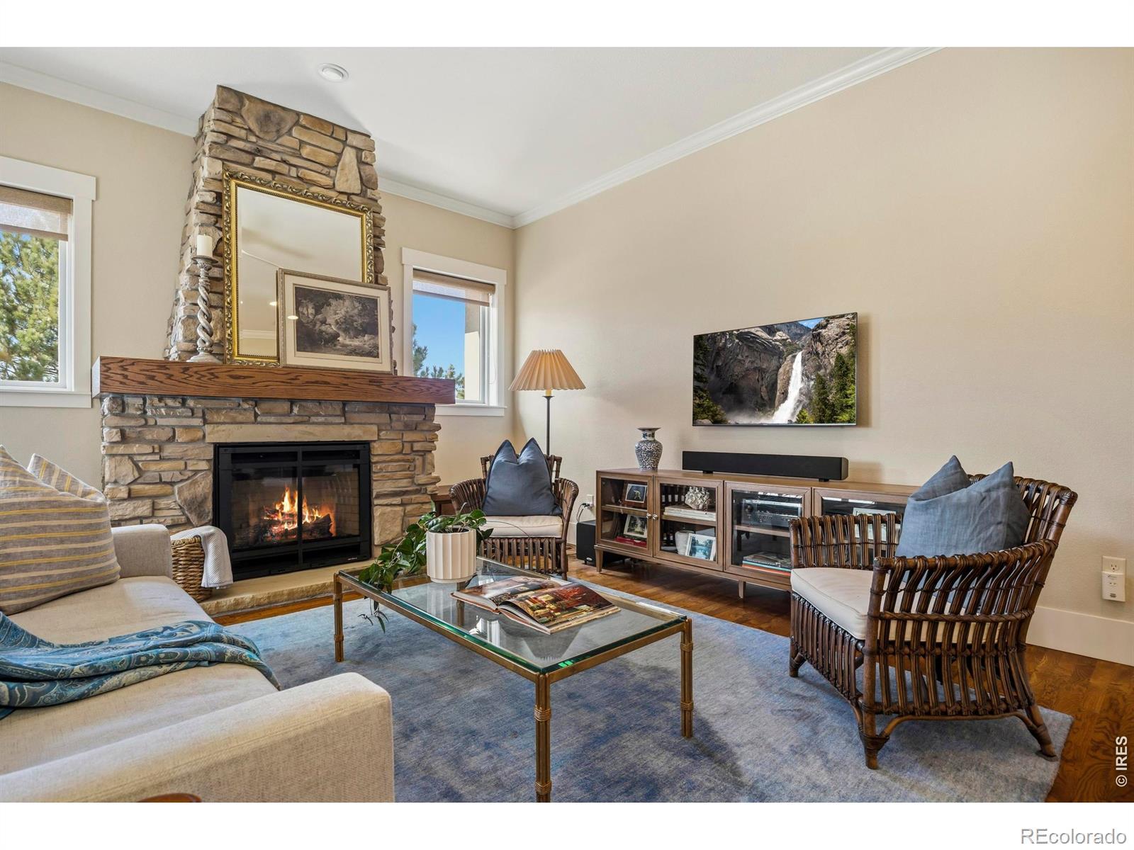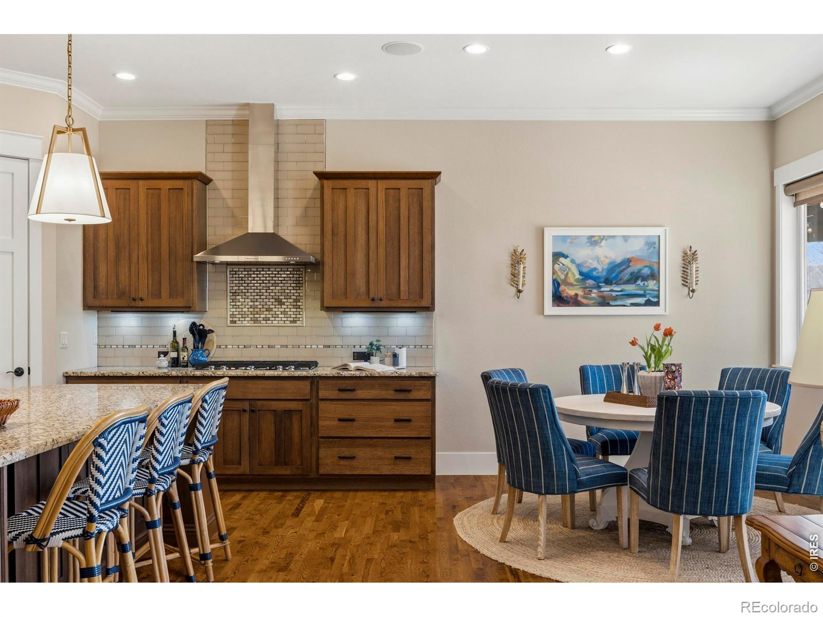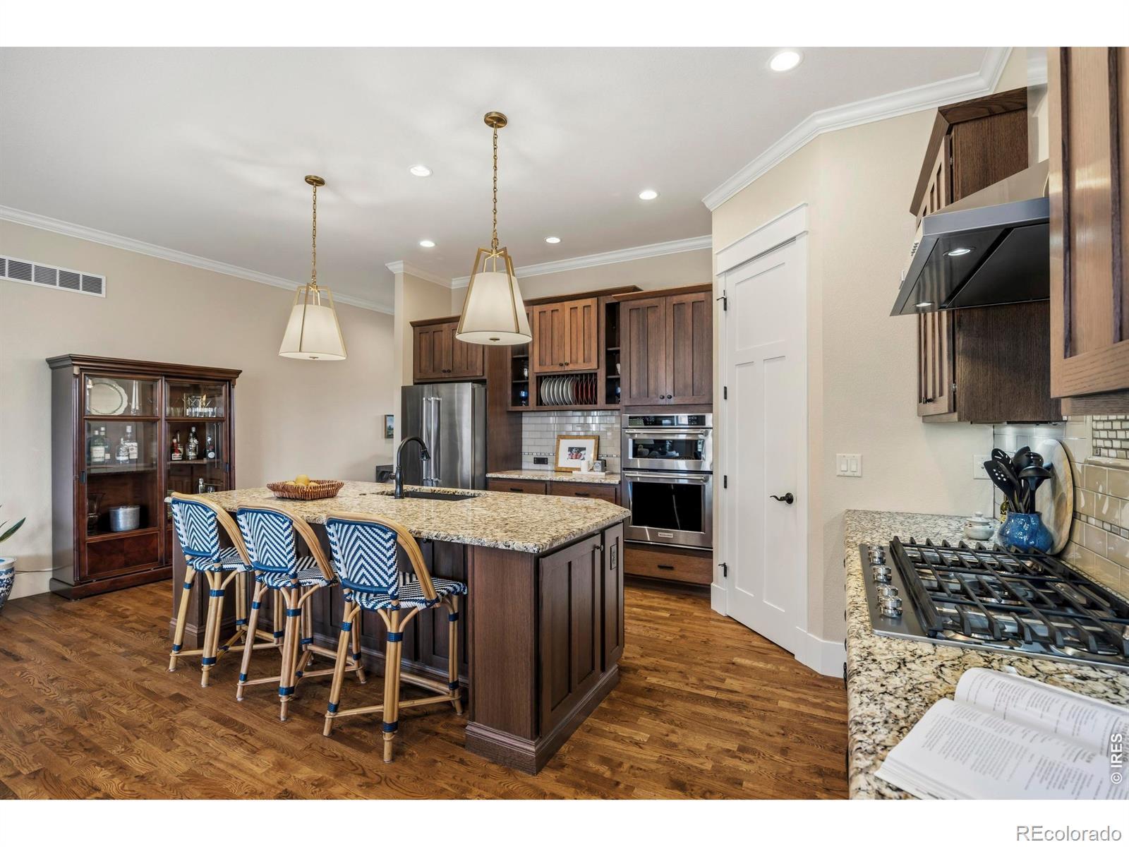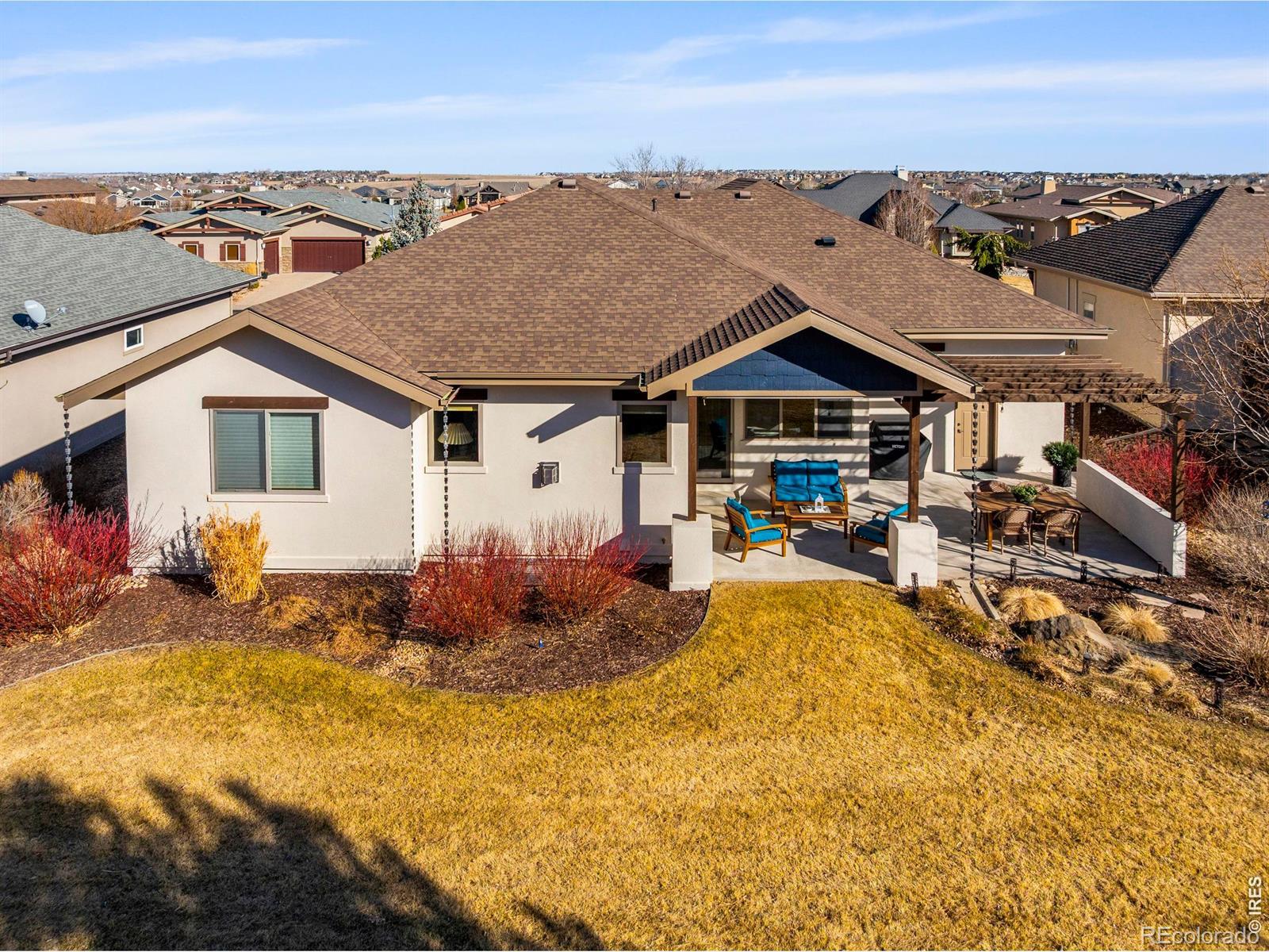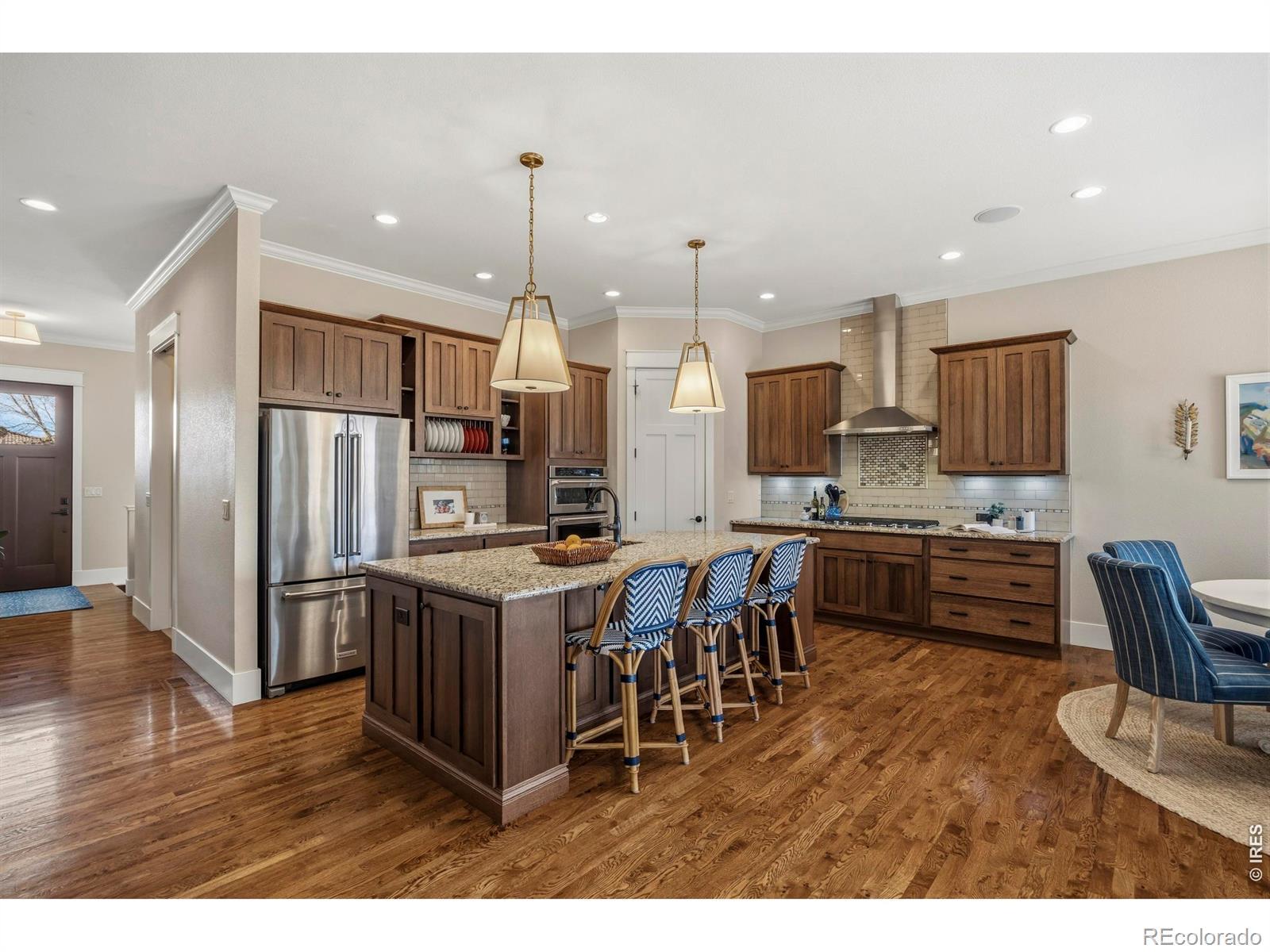 Luxury Living in Murano at Highland Meadows - Exceptional Golf Course Community Home. Welcome to this stunning, lower maintenance residence in the Murano enclave built by Classic Custom Builders. Perfectly positioned to offer both luxury and comfort, this 4-bedroom, 3-bathroom home features over 3,500 square feet of impeccably designed living space. Step inside to discover a bright, open-concept, floor plan characterized by beautiful finishes like rich oak flooring, 8' craftsman style doors, beautiful cabinetry, and thoughtful finishes throughout. The heart of the home is the chef's kitchen, which boasts an expansive island with plentiful storage on two sides, quality KitchenAid appliances, beautiful granite countertops, and timeless features making it an entertainer's dream. The living room is anchored by a cozy fireplace and flows seamlessly into the dining area, perfect for hosting intimate dinners or large gatherings. The main level includes a tranquil primary suite featuring a classically designed bathroom and a massive walk-in closet. The main level also features a generously sized laundry room, second bedroom or office, full bathroom, and convenient mud room. The fully finished basement adds incredible versatility, offering large recreation room, two more bedrooms, a separate laundry room, a home gym and plenty of additional storage. Oversized 3-car tandem garage with several thoughtful inclusions. Outside, enjoy the peaceful Colorado lifestyle in your professionally landscaped yard. Whether you're relaxing on the covered patio or under the pergola or taking in the morning views from the front porch, the outdoor space is a chef's kiss of Colorado living. Enjoy resort-style living with access to the community's top-tier amenities, including the clubhouse, pool, and tennis courts. Located just minutes from premier golf, shopping, and dining, this home offers the perfect balance of convenience and serenity.