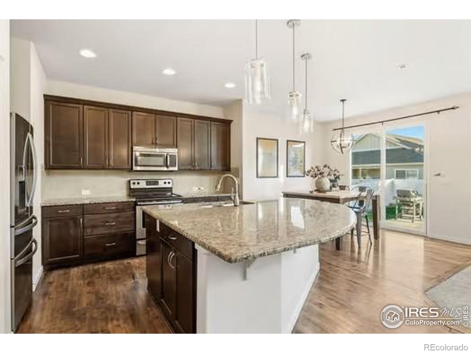 Discover the perfect home base for your Colorado lifestyle in this Gateway Park property with easy access to all your favorite Front Range destinations with NO METRO TAX! Ideally located just down the street from the Berthoud Rec Center and bike park, this home is ready for its next chapter! This spacious floor plan offers over 3,300 square feet of finished living space, providing all the room you need to spread out. A brand new roof (installed November 2025) offers immediate peace of mind, while the interior layout is designed for real life. The heart of the home is the expansive kitchen, anchored by a massive granite island that's perfect for casual meals or a morning coffee station. The main level is open and airy, featuring maple wood flooring and a floor plan that flows naturally from room to room. You'll love the soaring ceilings and large windows in the great room as well as a main floor office. Upstairs, you'll find the primary suite complete with a five piece bath and walk-in closet. Three additional bedrooms and a convenient laundry room complete the upstairs. The finished basement adds a fifth bedroom and a versatile rec room, already set up with a projector and screen for cozy movie nights. Your outside space is set up for entertaining where you can enjoy Berthoud's 4th of July fireworks right from your own backyard. Low HOA and no metro district, welcome home!
