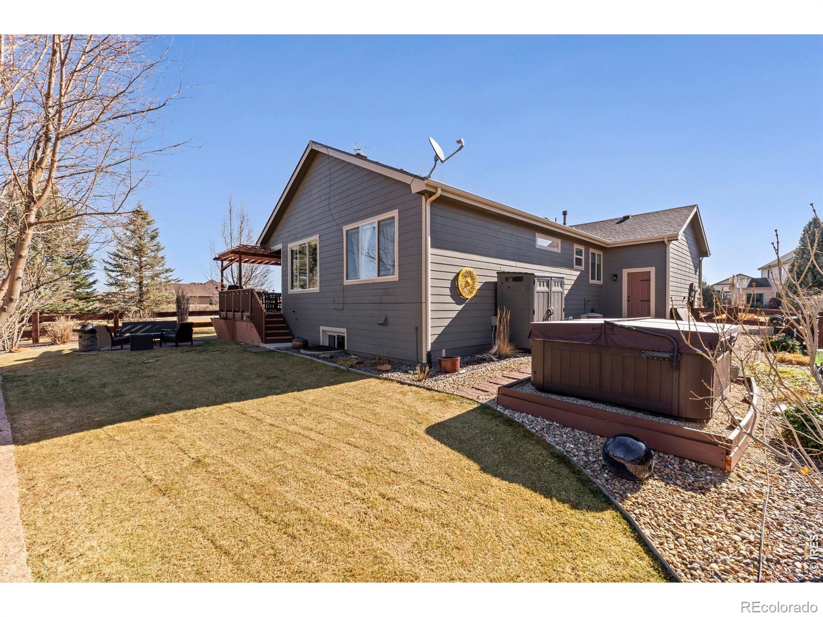 Welcome to this beautifully maintained ranch-style home located in the desirable Water Valley South. Offering a thoughtfully designed layout, this home features 3 bedrooms and 3 bathrooms with comfortable living spaces on both the main level and the fully finished garden-level basement.The main floor includes two bedrooms, including a spacious primary suite with double sinks, a large walk-in closet, and an oversized shower. A full guest bathroom serves the second main-level bedroom and visitors. The kitchen is designed for both functionality and entertaining, featuring a gas range and two pantry spaces for abundant storage.Just off the kitchen, a dedicated dining room provides the perfect space for gatherings, while also offering flexibility as a home office or additional flex space to fit your lifestyle.The garden-level basement is bright and welcoming, with a third bedroom, a large bathroom with an oversized shower, and a spacious living area. The basement is fully finished with the exception of a dedicated storage area, giving you ample room for organization.Outdoorsman and hobbyists will appreciate the oversized garage, complete with a 1/2 car bump-out that provides exceptional additional space for storage, a golf cart, workshop area, or recreational gear.Step outside to a beautifully landscaped backyard designed for relaxing and entertaining. Enjoy warm Colorado evenings on the large composite deck, gather around the firepit area, or unwind in the included hot tub. Privacy screens enhance the outdoor space, creating a comfortable and secluded setting.This well-appointed home combines thoughtful design, generous storage, and inviting outdoor living in one of Windsor's most sought-after communities.