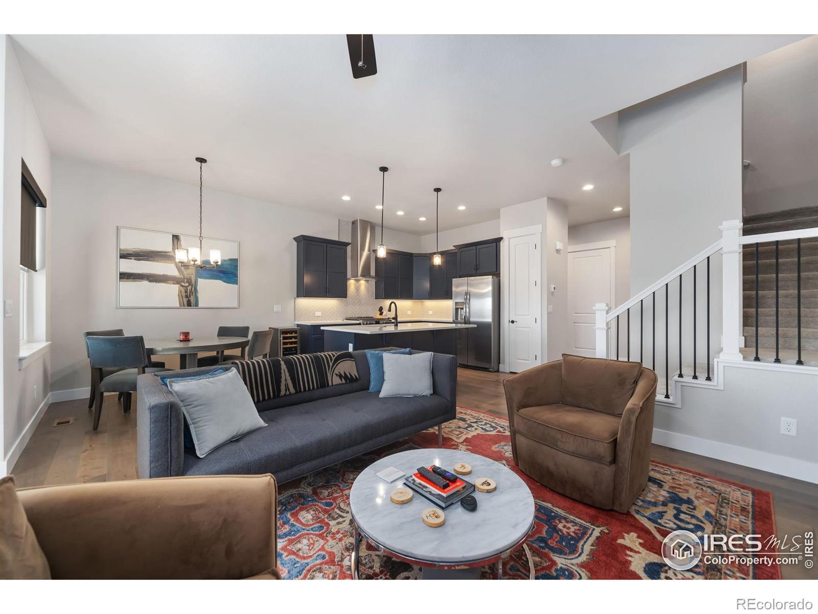 Luxury lock-and-leave living in the gated TPC golf course community of Heron Lakes. This 3 bedroom, 4 bathroom townhome offers elevated finishes and true low maintenance convenience. The HOA provides exceptional value, covering trash, snow removal, cable TV, water and sewer, exterior maintenance, hazard insurance, and access to the clubhouse fitness center, pool, pickleball courts, and community amenities. The main level is fully devoted to living and entertaining spaces, with all three bedrooms located on the upper and lower levels for added privacy. The main level features engineered hardwood flooring, 8' doors, Hunter Douglas motorized shades, and upgraded lighting with dimmers throughout. The chef's kitchen showcases soft-close cabinetry, black hardware, a Blanco composite sink, upgraded quartz countertops, and a designer tile backsplash. Upstairs, engineered hardwood flooring continues throughout, leading to the vaulted primary suite with heated bathroom floors, a walk-in shower, dual vanities, and an expansive walk-in closet. A secondary bedroom with its own en suite bath, loft, and laundry complete the upper level. The finished basement includes a third bedroom, full bath, and stylish wet bar, ideal for guests or extended stays. The pristine garage is prewired for EV charging. Enjoy resort-style living with access to TPC clubhouse dining, Lonetree Reservoir, nature trails, fishing, pickleball, and more, all within one of Northern Colorado's most sought-after communities.