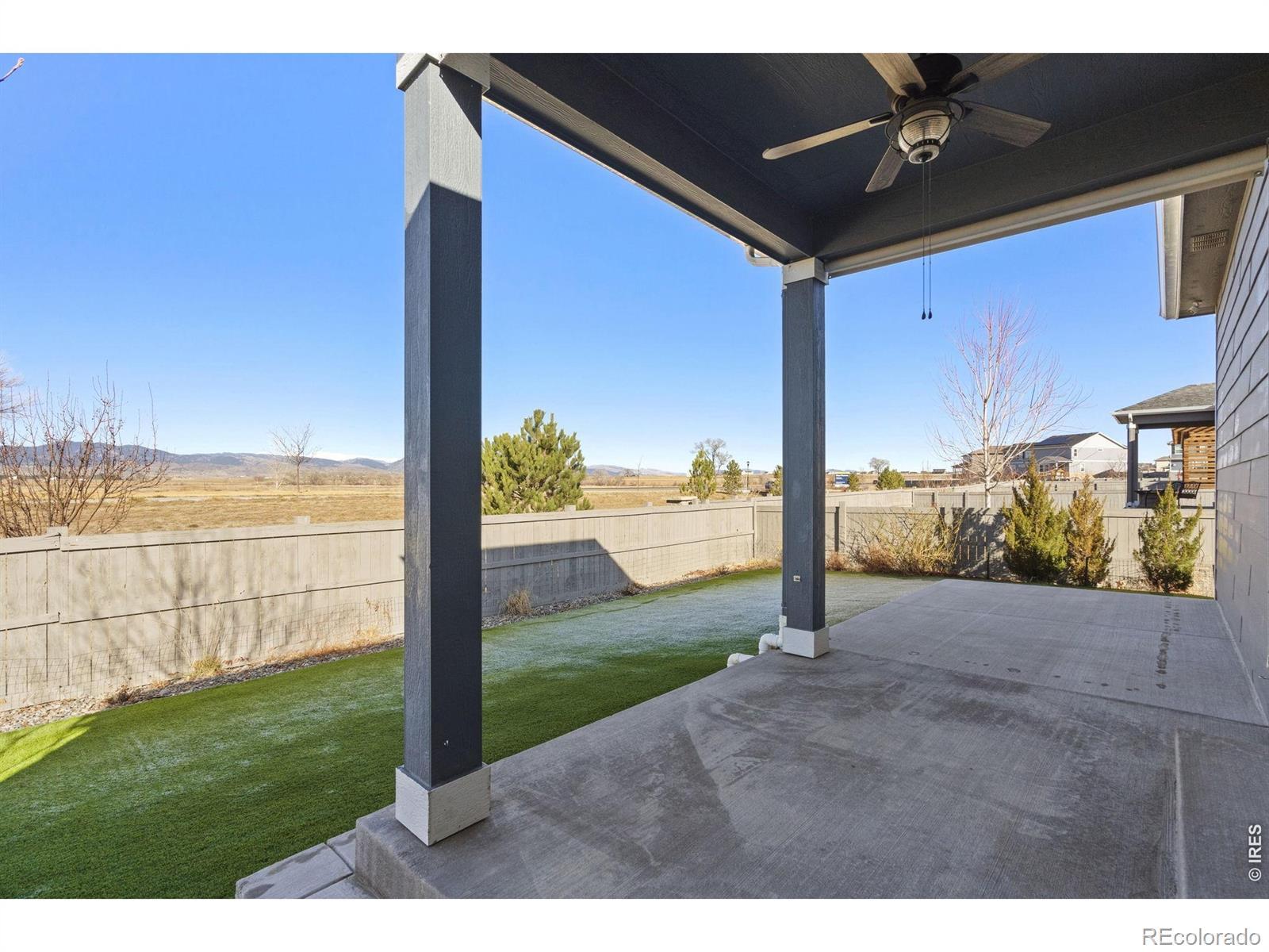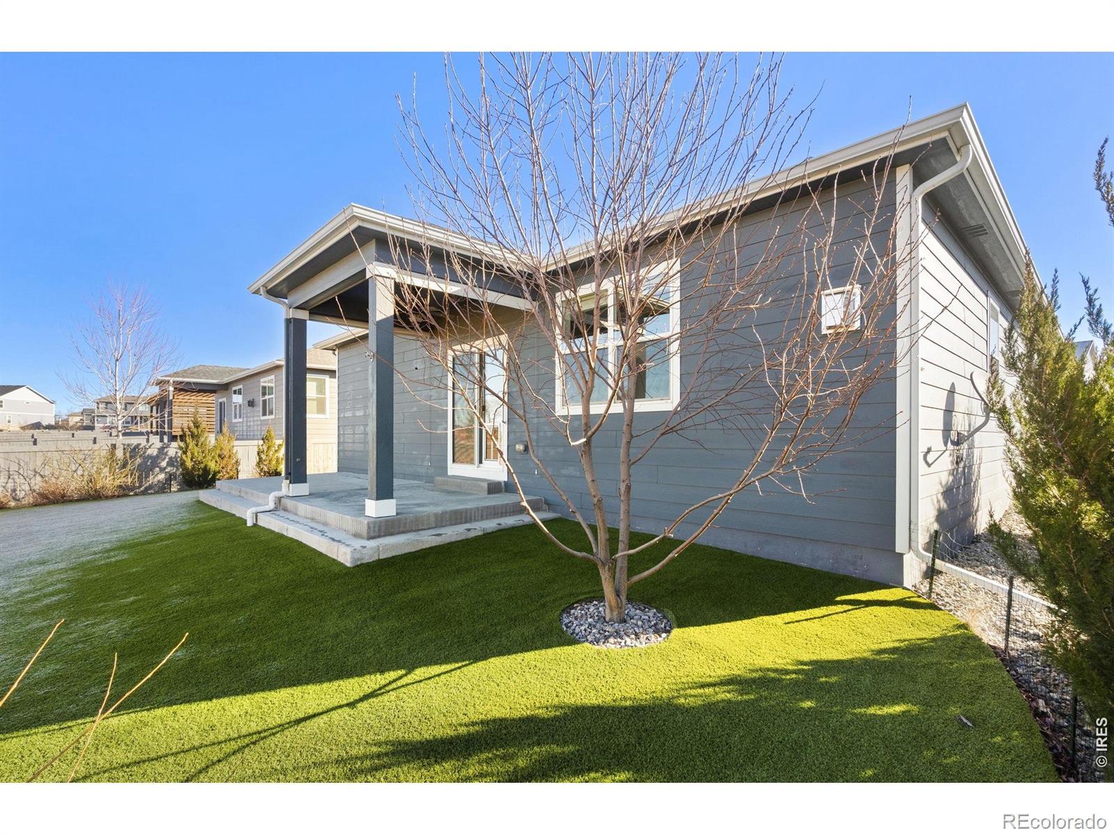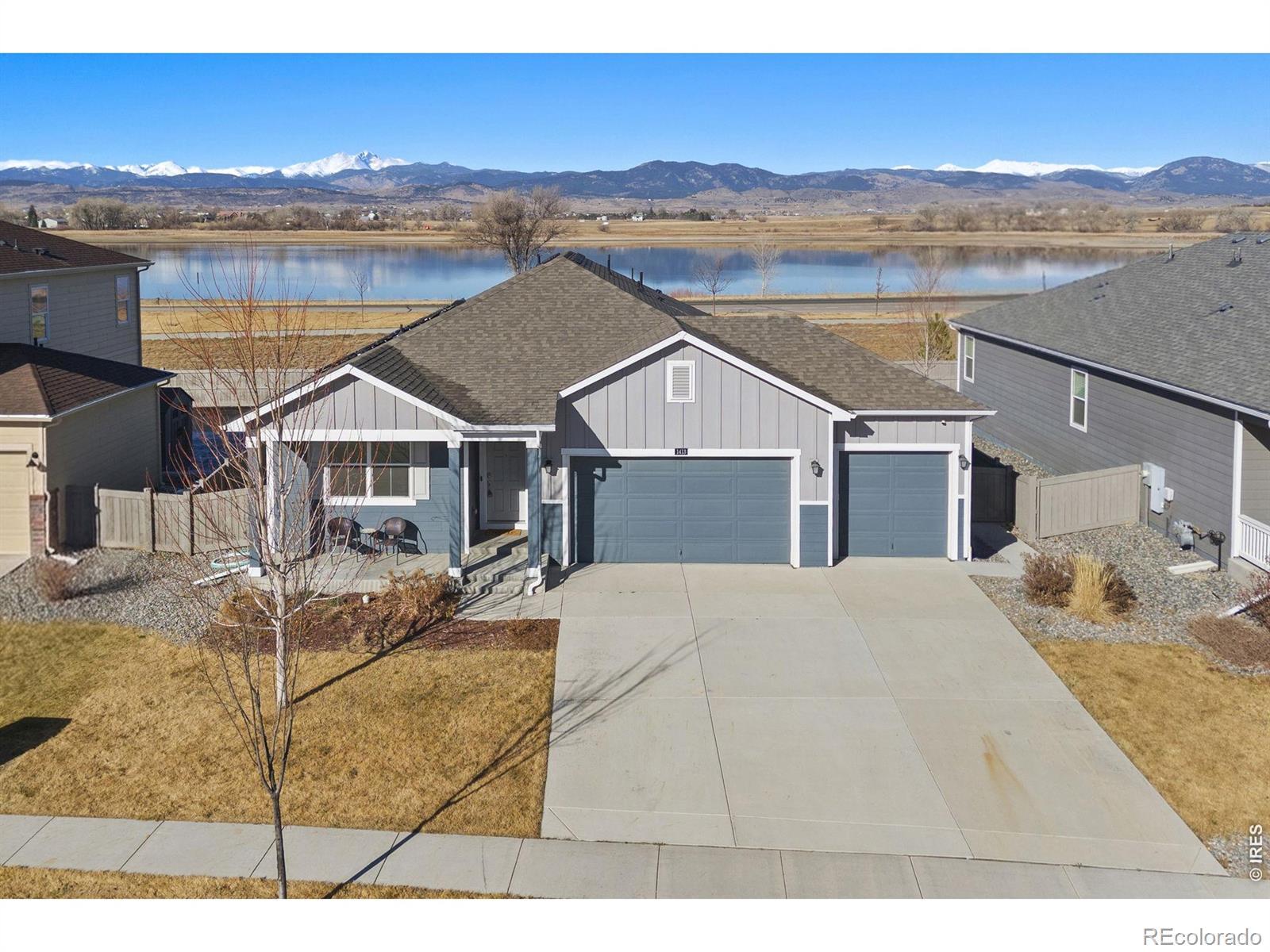 Wake up to phenomenal, unobstructed water and mountain views in this sprawling 4-bedroom ranch, located in the highly desirable Vantage neighborhood. Better than new with freshly installed STAINMASTER Pet Protect carpet, this home features over $60,000 in premium after-sale upgrades and a private, low-maintenance backyard designed to showcase the stunning Colorado landscape. The outdoor oasis includes a covered patio with custom sun shades and an extended walkway, all surrounded by Mile High Synthetic Turf that integrates with the sprinkler system for effortless care.The sophisticated interior boasts an open-concept layout with EVP flooring and a show-stopping floor-to-ceiling custom stacked stone gas fireplace.The chef's kitchen is equipped with high-end granite, stainless appliances, a gas stove, and an oversized pantry centered around a large eat-at island. High-tech efficiency is a standard here, featuring a fully owned solar system installed in 2021, a tankless water heater, and a comprehensive smart home suite including Nest and ADT security.The luxury owner's suite offers a private retreat with a 4-piece bath and walk-in closet, while the 3-car garage provides ample storage. Residents also enjoy TPC Colorado's premier pool and gym amenities, alongside close proximity to the Berthoud Rec Center, Thompson Valley schools, and downtown dining. With easy access to Carter Lake and local trails, this turnkey home offers a rare lifestyle opportunity.