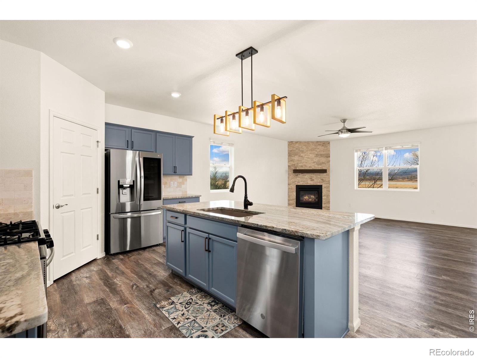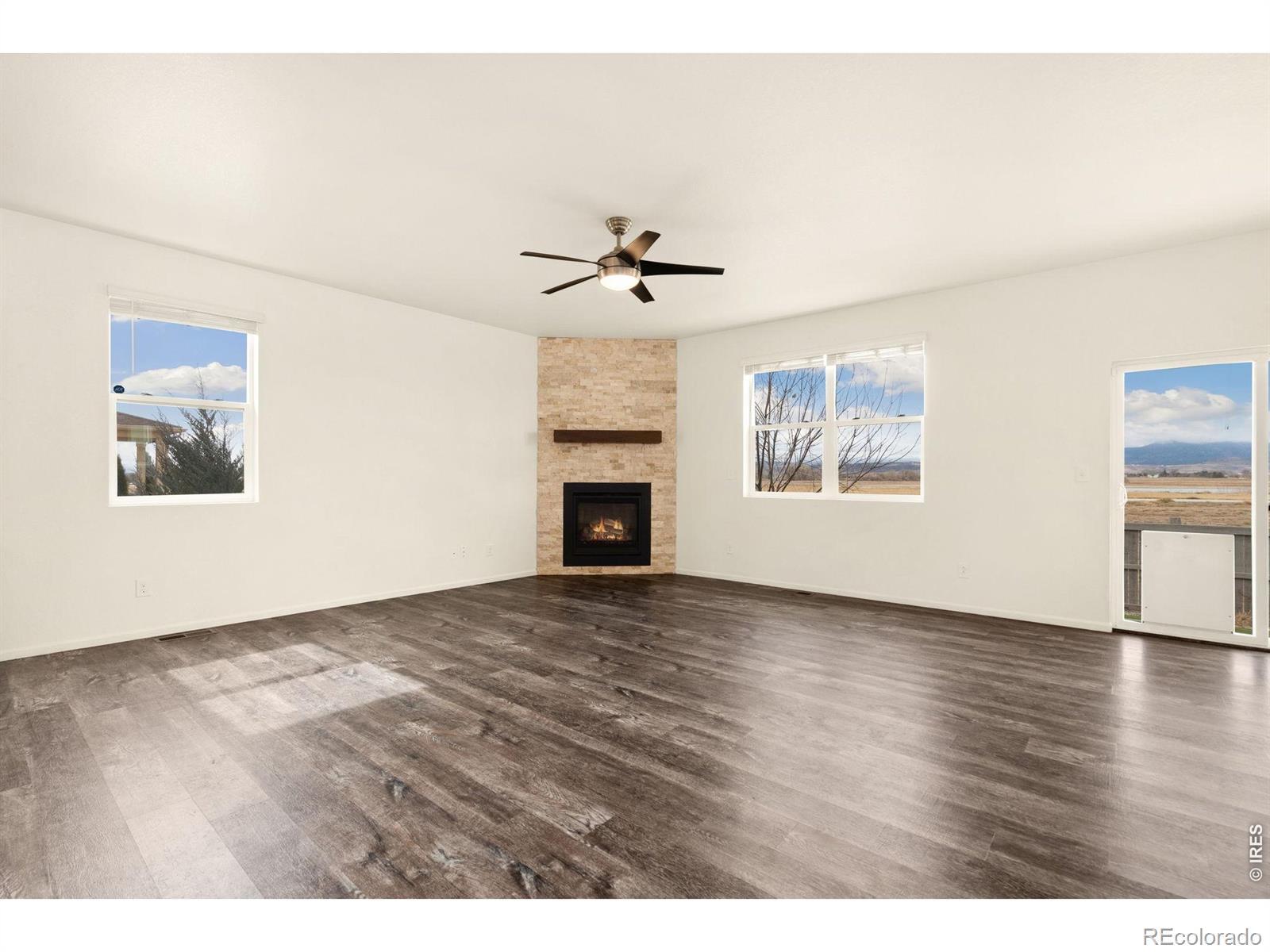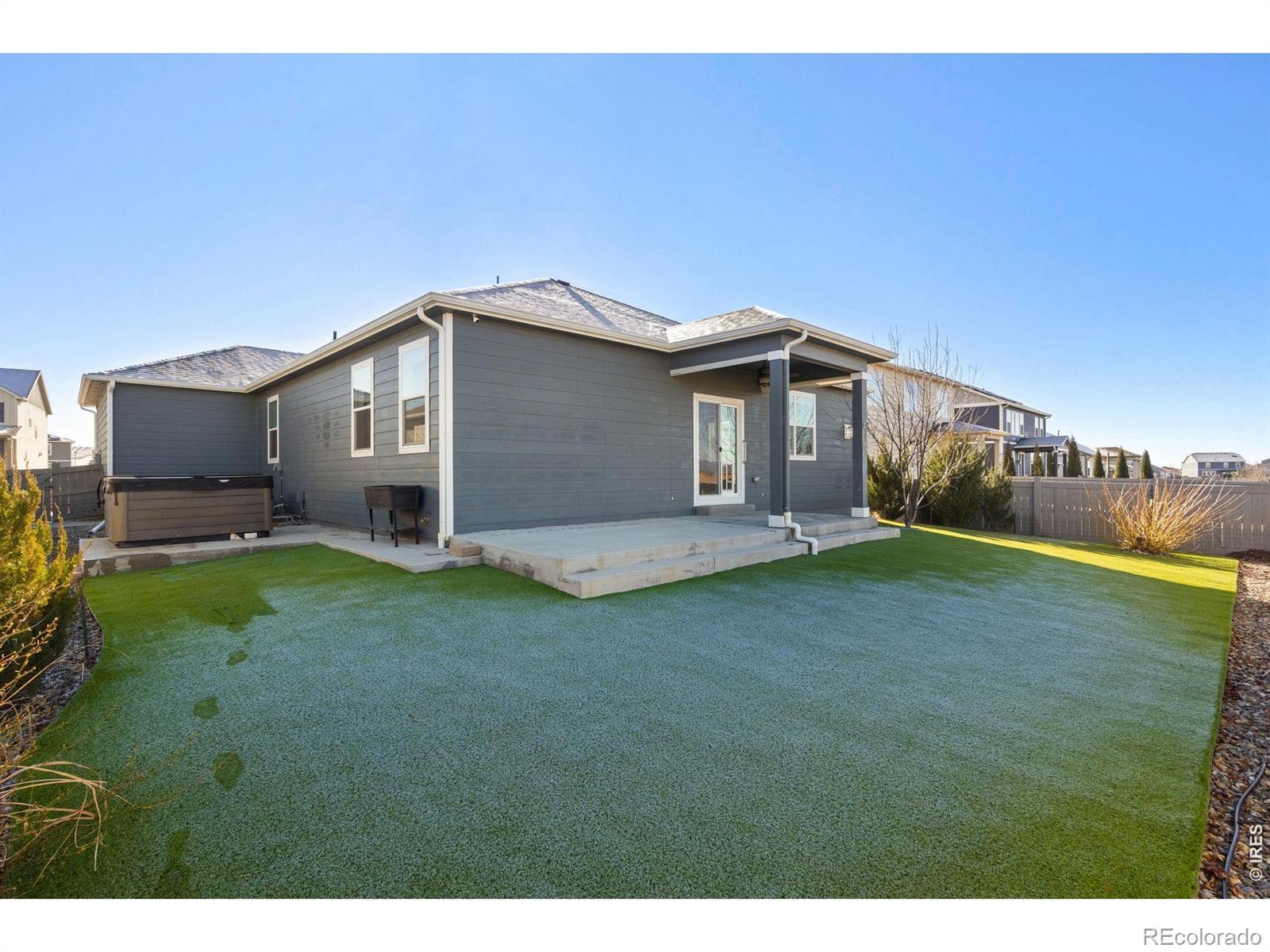Wake up to phenomenal, unobstructed water and mountain views in this sprawling 4-bedroom ranch, located in the highly desirable Vantage neighborhood. Better than new with freshly installed STAINMASTER Pet Protect carpet, this home features over $60,000 in premium after-sale upgrades and a private, low-maintenance backyard designed to showcase the stunning Colorado landscape. The outdoor oasis includes a covered patio with custom sun shades and an extended walkway, all surrounded by Mile High Synthetic Turf that integrates with the sprinkler system for effortless care.The sophisticated interior boasts an open-concept layout with EVP flooring and a show-stopping floor-to-ceiling custom stacked stone gas fireplace.The chef's kitchen is equipped with high-end granite, stainless appliances, a gas stove, and an oversized pantry centered around a large eat-at island. High-tech efficiency is a standard here, featuring a fully owned solar system installed in 2021, a tankless water heater, and a comprehensive smart home suite including Nest and ADT security.The luxury owner's suite offers a private retreat with a 4-piece bath and walk-in closet, while the 3-car garage provides ample storage. Residents also enjoy TPC Colorado's premier pool and gym amenities, alongside close proximity to the Berthoud Rec Center, Thompson Valley schools, and downtown dining. With easy access to Carter Lake and local trails, this turnkey home offers a rare lifestyle opportunity.