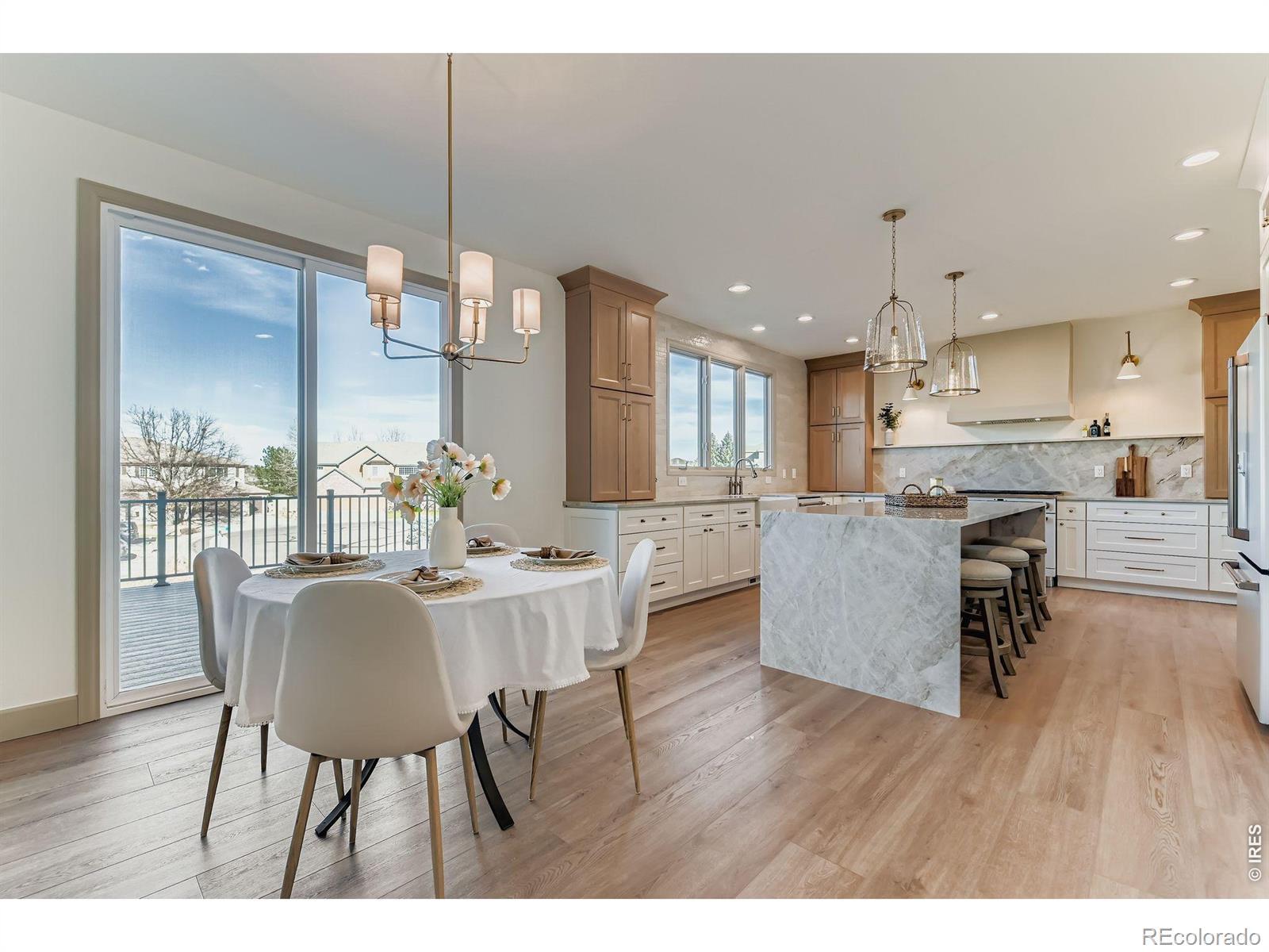 Discover refined luxury in this completely renovated 6-bedroom, 5.5-bath, 6,100 SF masterpiece. Enter through the custom Amish-made Knotty Alder front door, where craftsmanship meets curb appeal. The gourmet kitchen is a showstopper: Taj Mahal quartzite countertops from Brazil flow toward the custom range hood, paired with premium GE Cafe appliances and a 36" dual-fuel range. The walk-in pantry redefines organization with a platter rack and appliance garage-everything in its place, yet beautifully accessible. Gather in the redesigned family room, anchored by a custom mantle and built-in entertainment niche. Need flexibility? The main-level office, den or Bedroom #5 adapts effortlessly. Escape to the Primary Suite-talk about a sweet retreat. Unwind in the wet room shower with soaking tub, then step into the all-new custom closet system-luxury meets logistics. Three additional bedrooms offer privacy and convenience: two share a Jack-and-Jill bath, while the third enjoys its own ensuite. Be sure to check out the all-new basement-a fully realized lower level designed for connection and independence. Multi-generational living shines with a private ensuite bedroom. Host epic Bronco Sundays and movie nights in the dedicated Theatre Room. A flex room awaits your vision-yoga studio, weight room, or home office. The Best Little Playhouse ever sparks imagination, and a second laundry (stackable washer/dryer ready) keeps life running smoothly. Don't miss the brand-new 14'x28' Trex deck-perfect for seamless indoor-outdoor living. Lower level features a new 13'x40' patio with terraced yard and trees for privacy. No detail was spared in this complete renovation-a flawless fusion of modern upgrades, timeless design, and thoughtful functionality. Welcome to your forever home, reimagined.