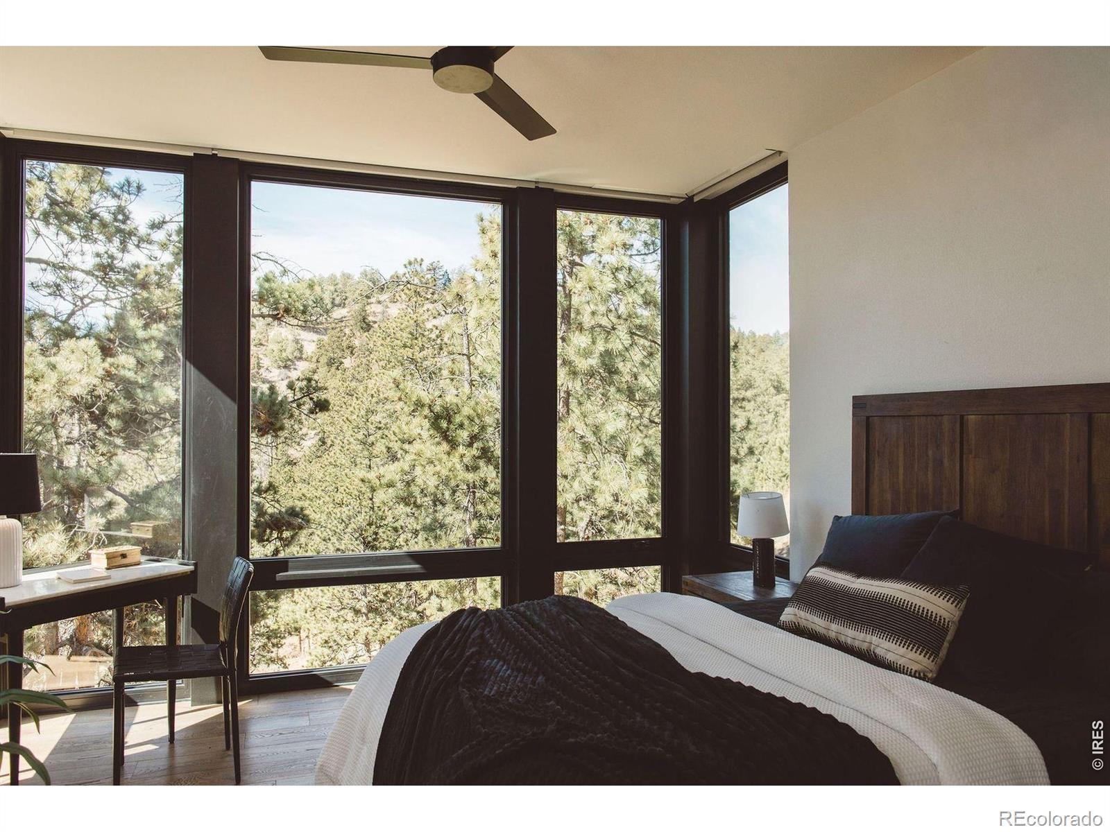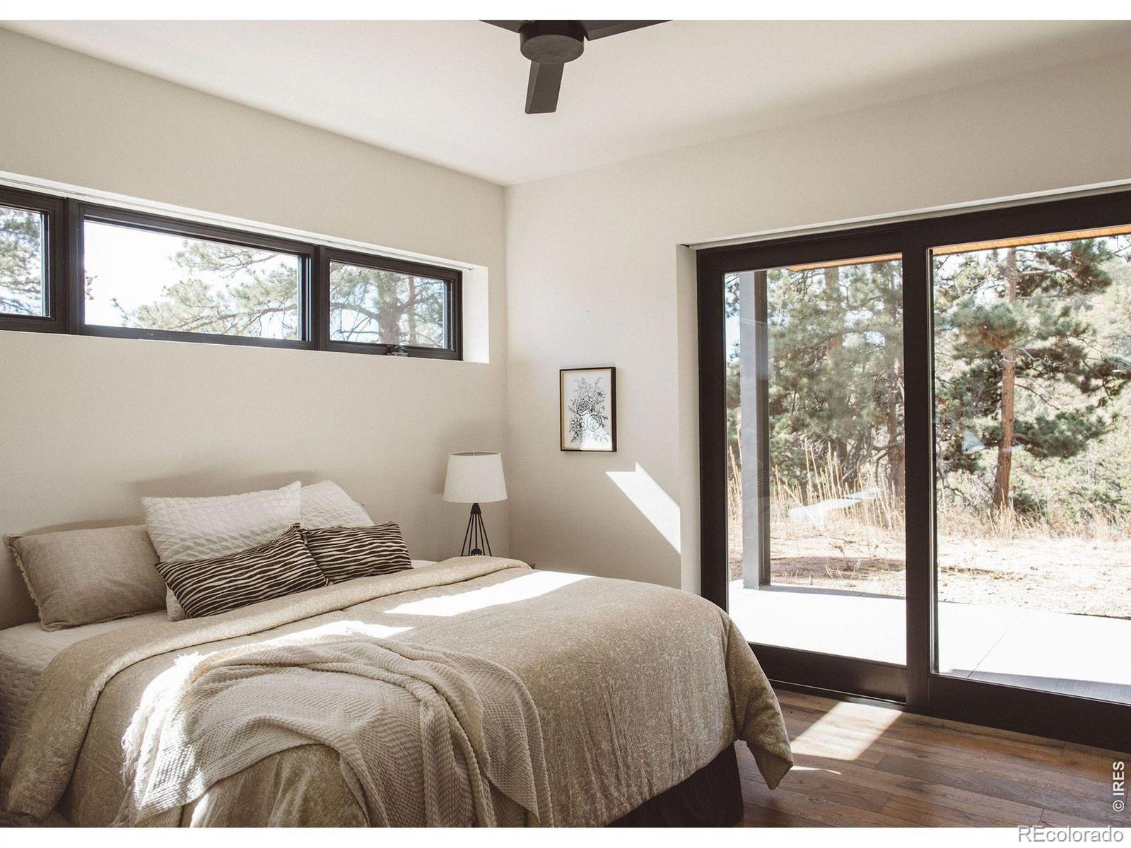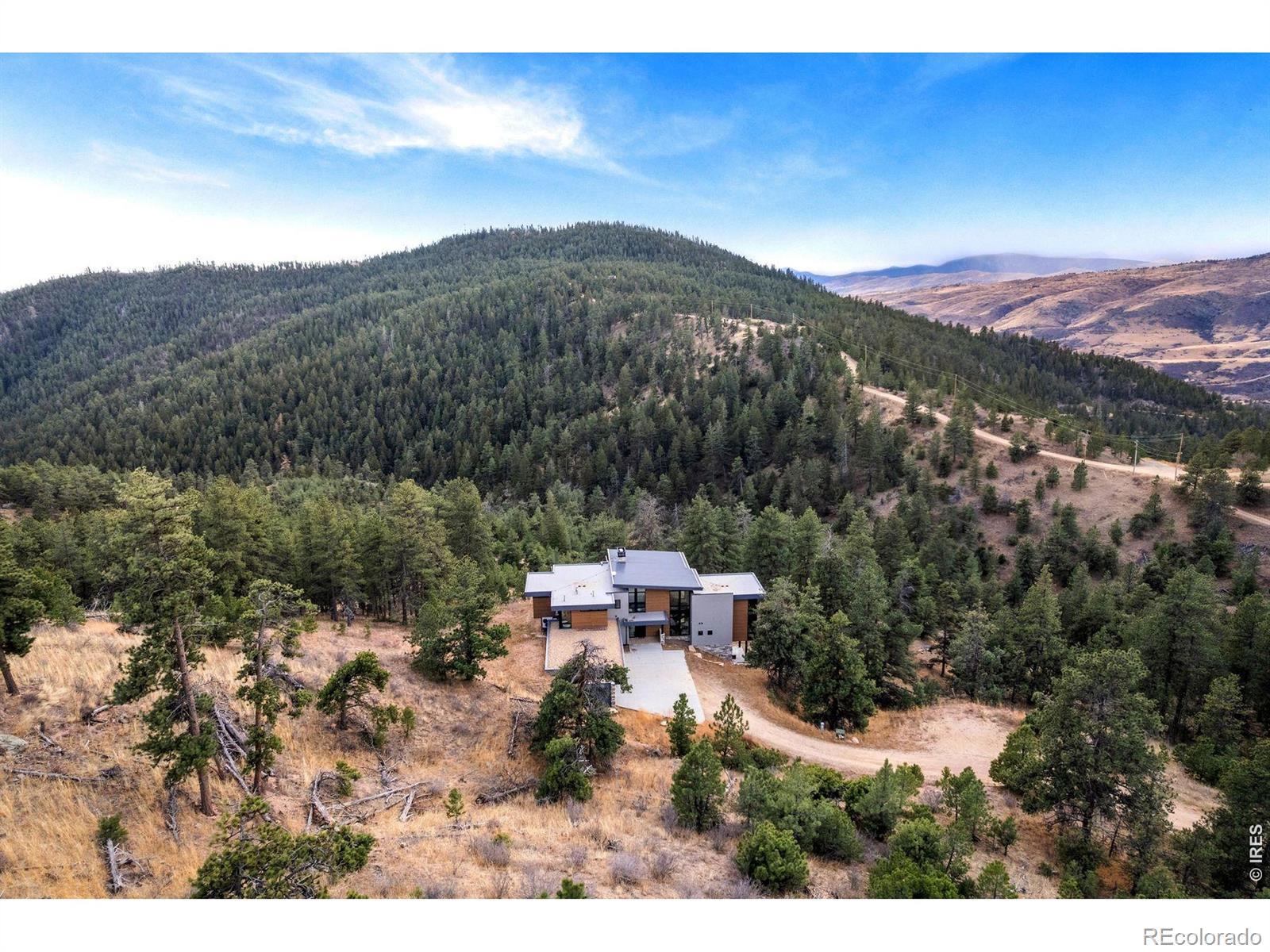 You've earned the right to live differently. Not a retreat you have to prepare for, but a place where extraordinary becomes ordinary. Where the mountain is your backyard, the silence is yours, and the view changes every hour. Forty private acres at 6,700 feet, bordering Lory State Park on two sides with private trail access to Westridge Trail. Fourteen miles from Fort Collins - close enough for schools and dinner out, far enough that none of that touches you here. Designed by award-winning Vertical Arts and built by Hammersmith Structures: steel, stone, and concrete fused with soaring ceilings, floor-to-ceiling windows, and sightlines framing Longs Peak from nearly every room. Fire-retardant exteriors, passive solar design, whole-house in-floor heating and cooling, and a 5,000-gallon cistern mean this home runs as intelligently as it looks. The chef's kitchen delivers double convection ovens, induction cooktop, wall-sized fridge/freezer, and a butler's pantry with plumbed Miele coffee maker and reverse osmosis water. Primary suite features a private balcony, air-bubble soaking tub, and built-in garment care. Lower level adds a full bar, rec room, and custom home theater with 7.2 Dolby Atmos and seven powered recliners. Over $100K in custom AI-powered home automation controls 368 smart lights, 43 in-ceiling speakers, 17 security cameras, and every system via voice or touch. The owner provides full onboarding so day one feels effortless. Two 40A EV chargers, Starlink, mineral rights, and trusted service providers included. Seclusion without sacrifice. Thirty minutes from everything. Move in and never look back.